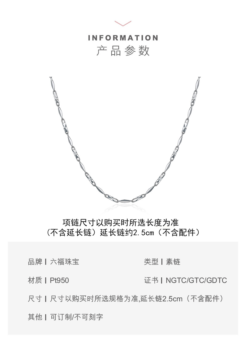 Lukfook Jewelry Platinum 950 square chain platinum plain chain necklace including extension chain Price L04TBPN0009 40cm-5.06g (including labor cost 430 yuan)