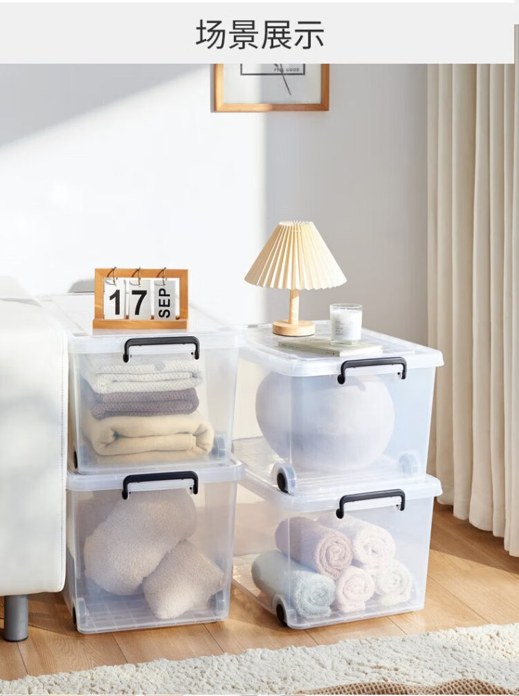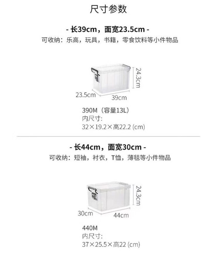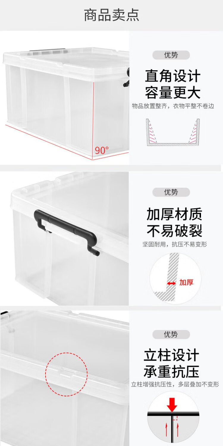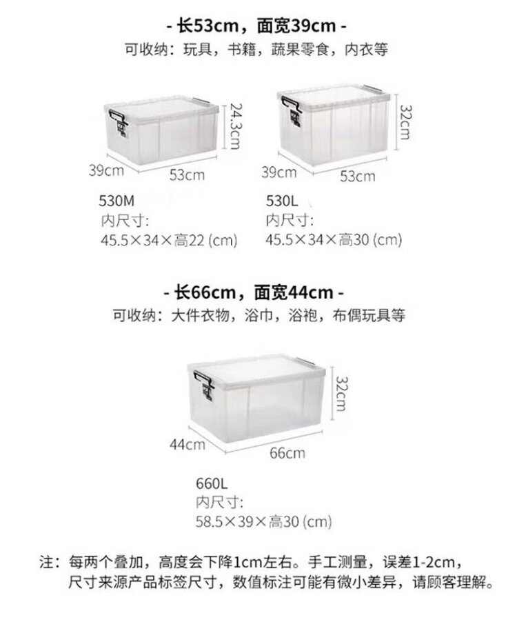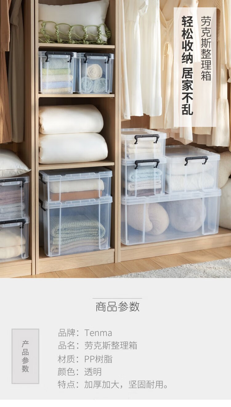 TENMA clothing storage box toy storage box 67 liters transparent with lid single pack