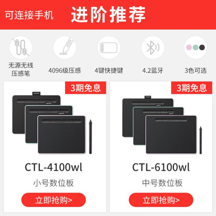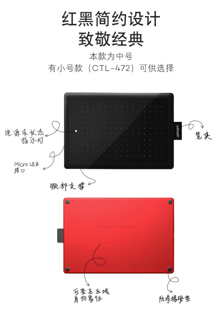 Wacom和冠 数位板 手绘板 手写板连电脑绘画板专业绘画专用平板 电子画板写字板教学网课 CTL-672/K2-F