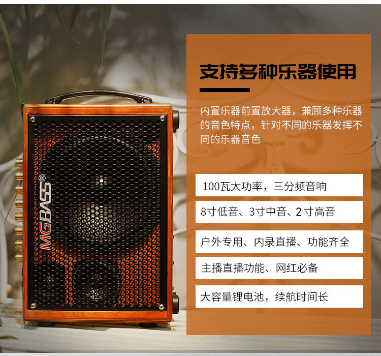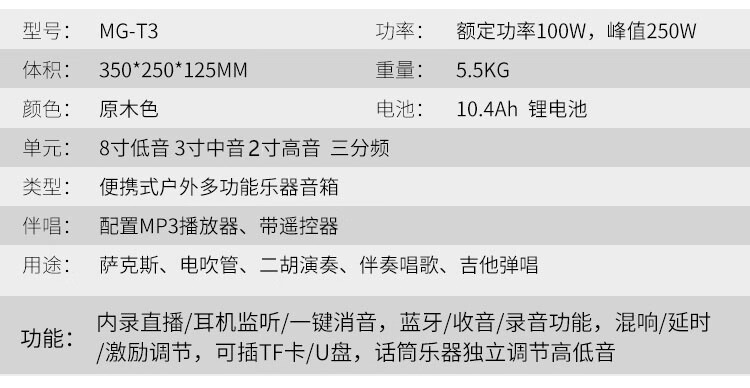 MIGAO MG-T3 outdoor charging erhu saxophone electric wind instrument audio guitar playing and singing internal recording live broadcast speaker package 2 audio + 2 U-segment microphones + bag + stand