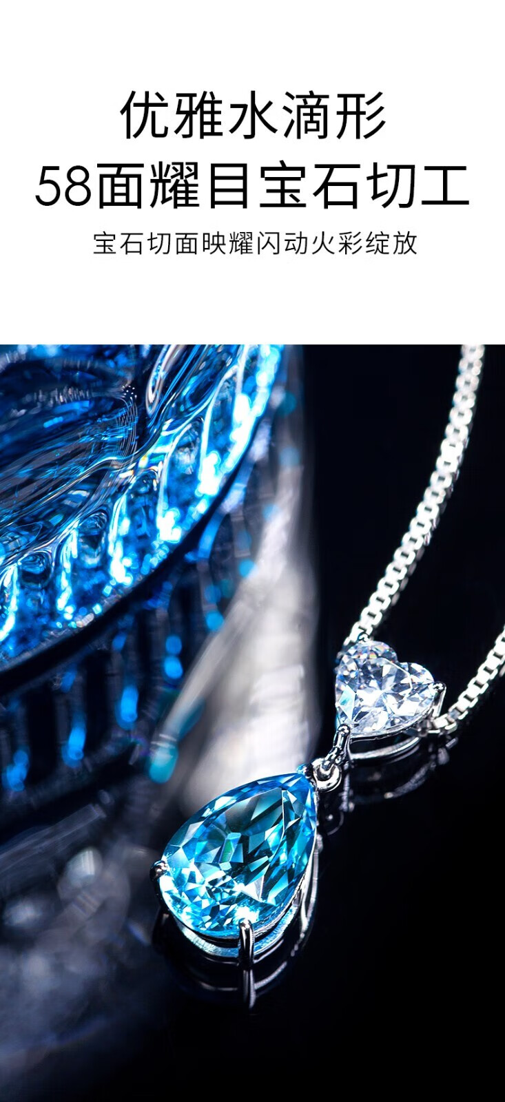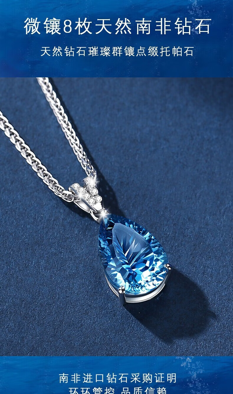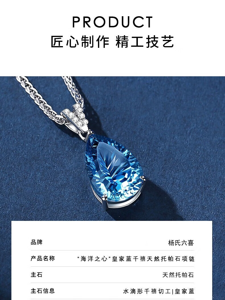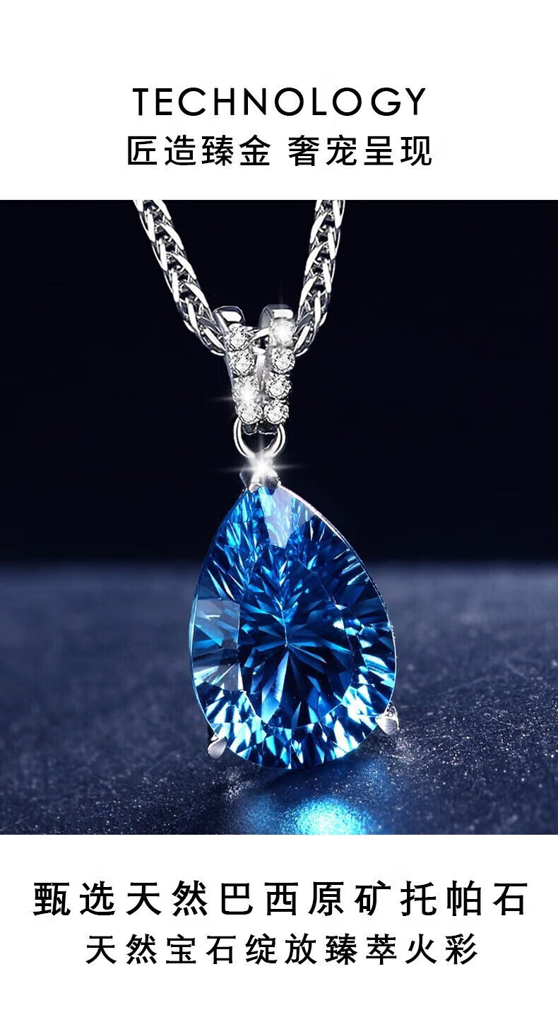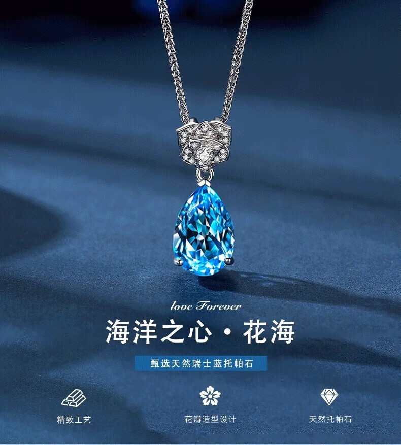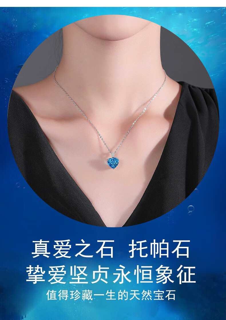 Young's Six Happiness Hong Kong Brand Light Luxury Valentine's Day Birthday Gift for Wife Natural Gem Heart of the Ocean Necklace Fashion 3 Carat Millennium Topaz Necklace - Upgraded Style