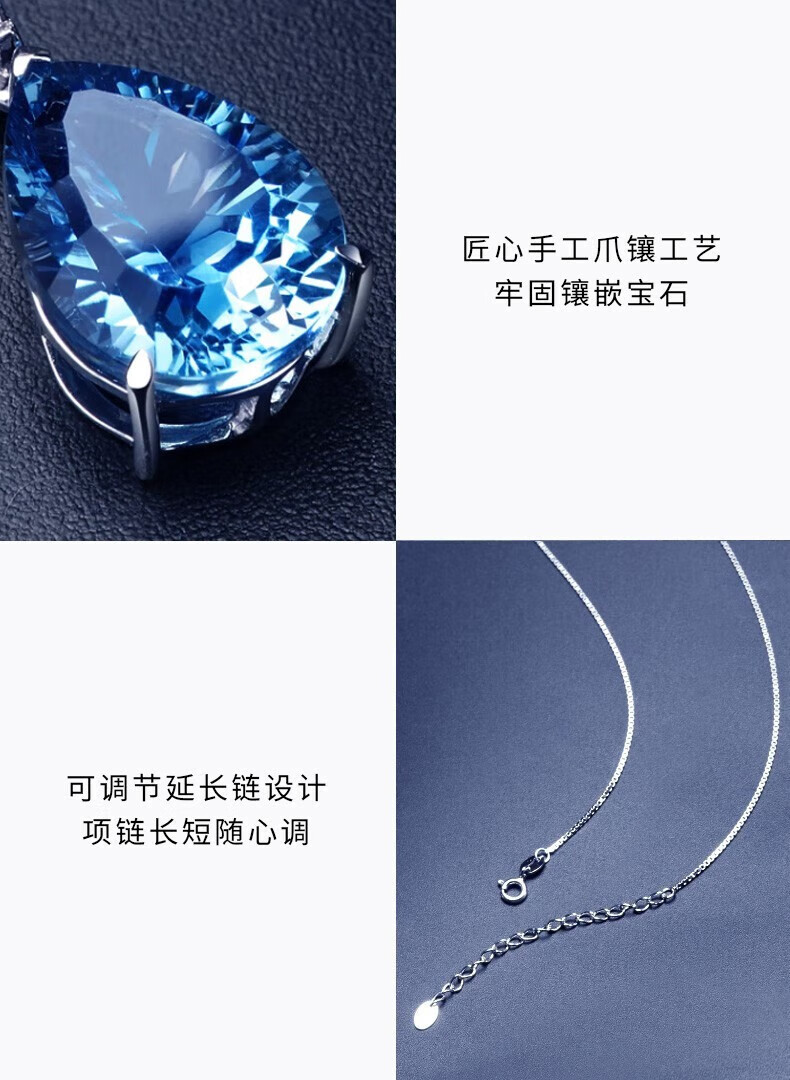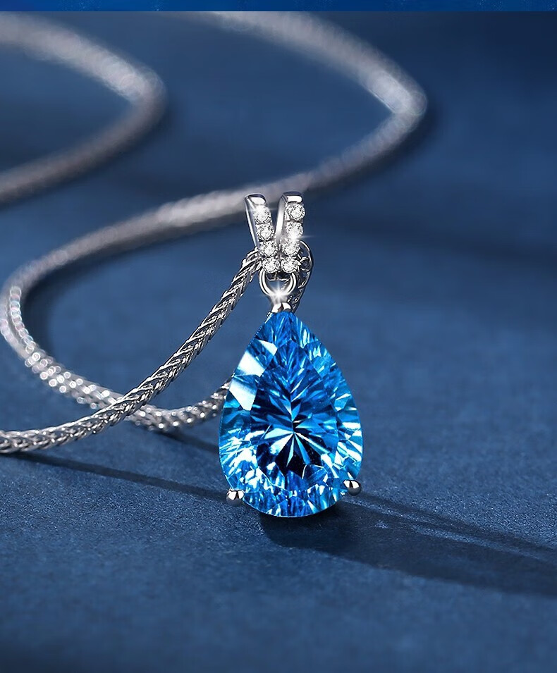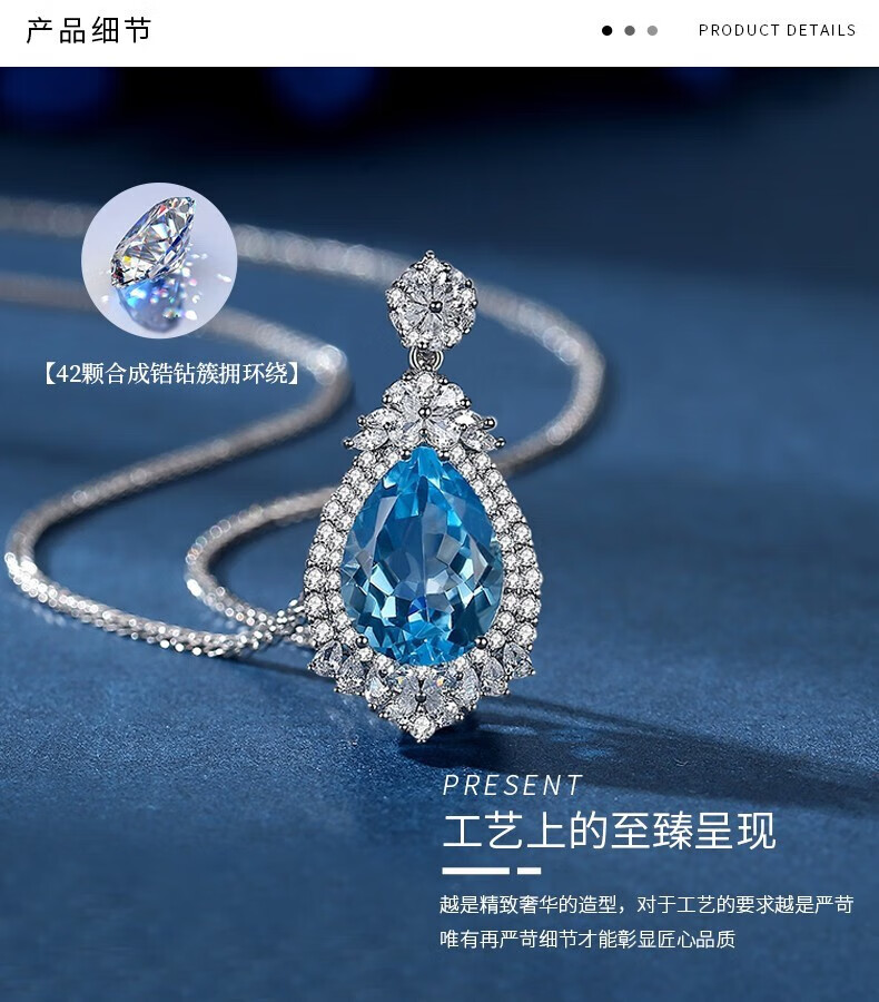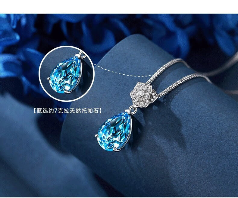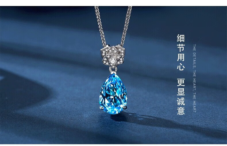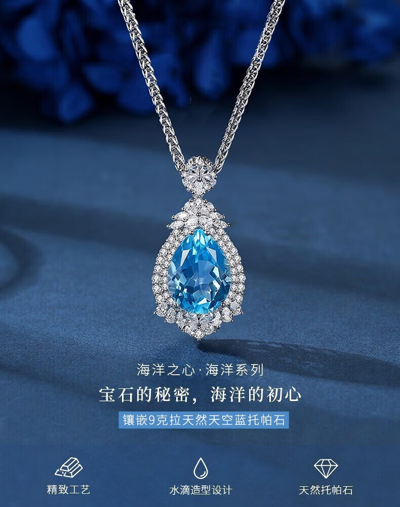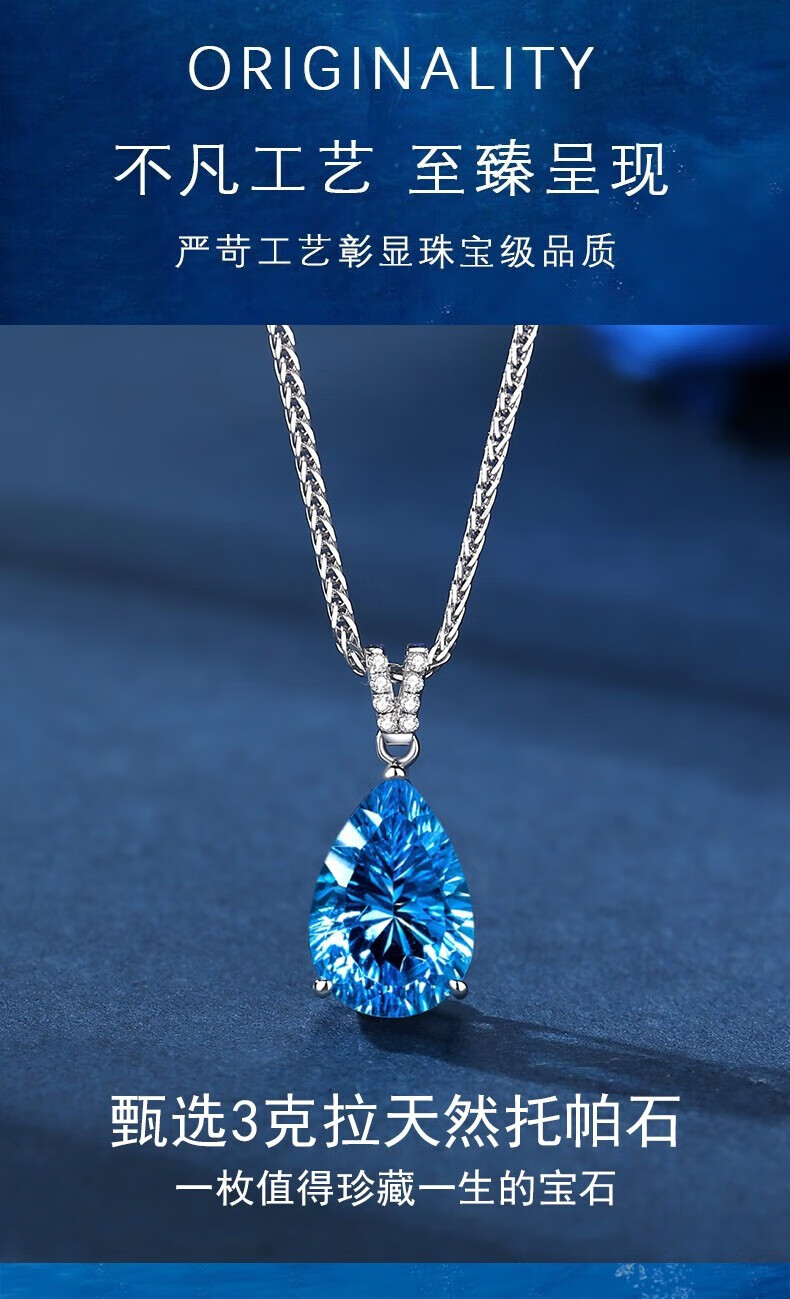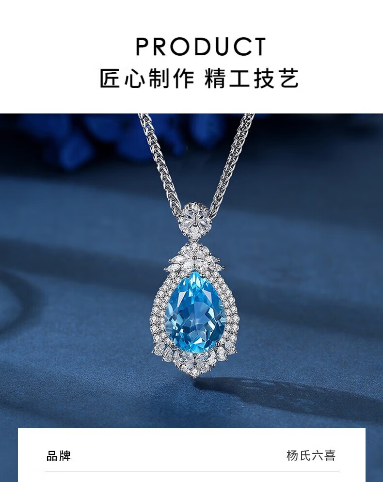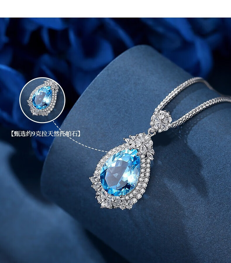 Young's Six Happiness Hong Kong Brand Light Luxury Valentine's Day Birthday Gift for Wife Natural Gem Heart of the Ocean Necklace Fashion 3 Carat Millennium Topaz Necklace - Upgraded Style