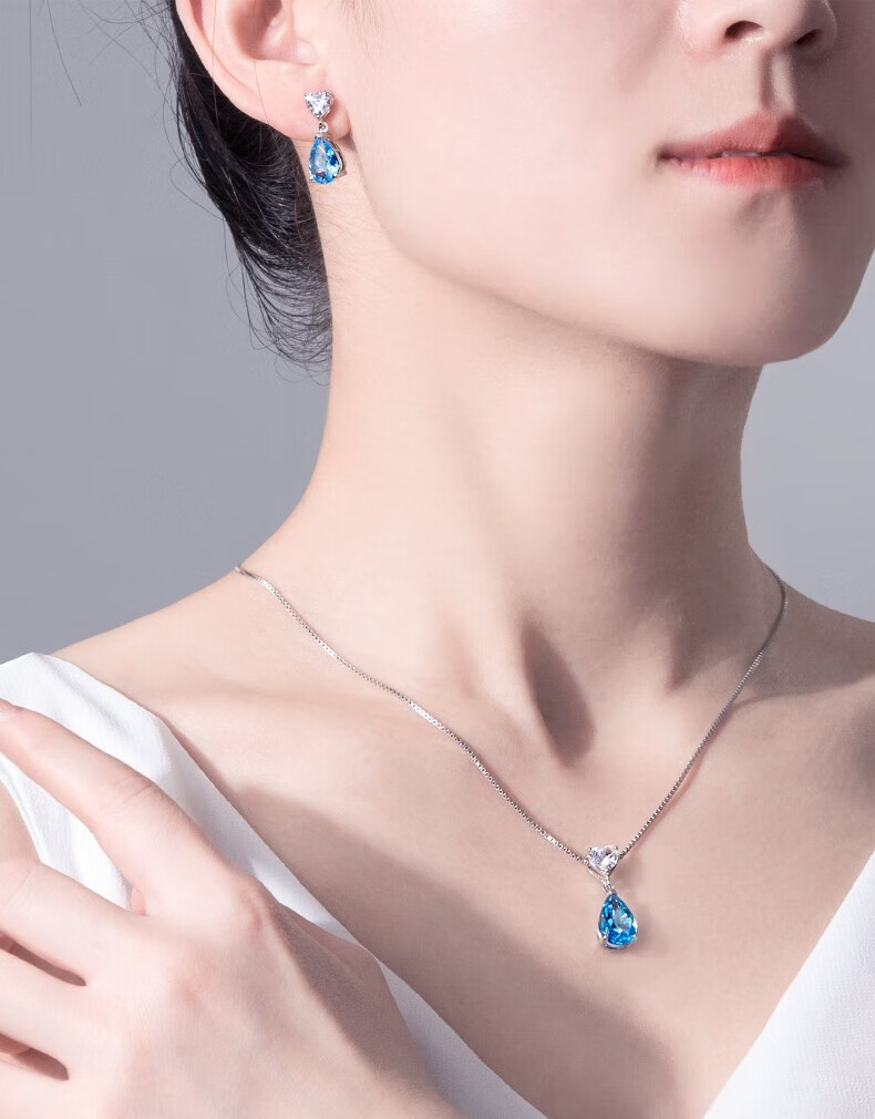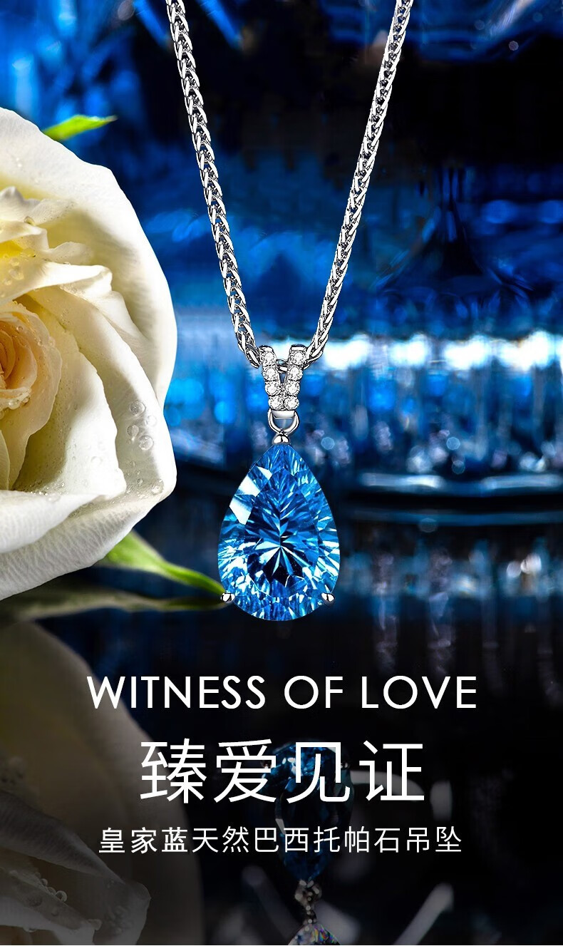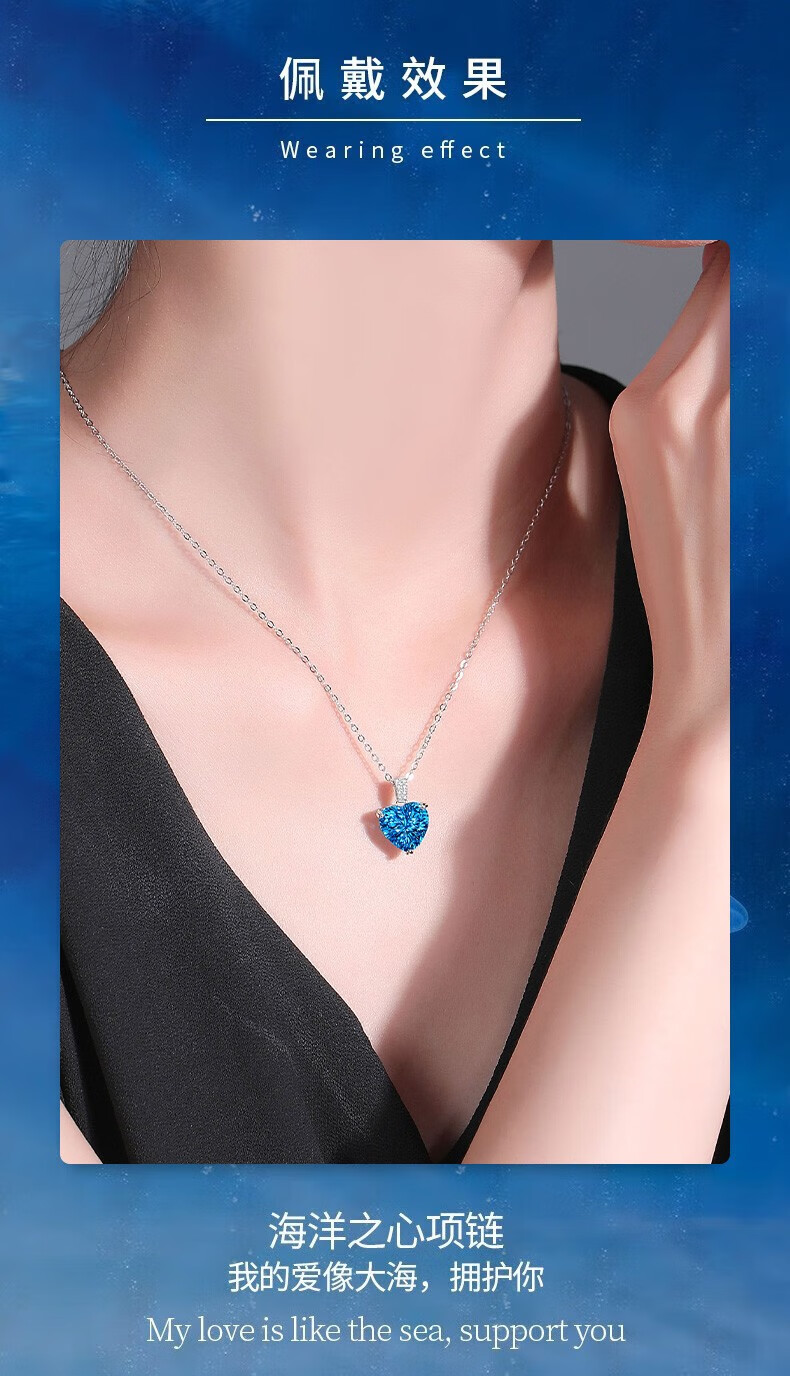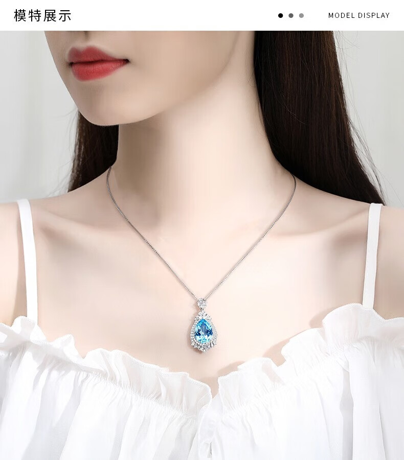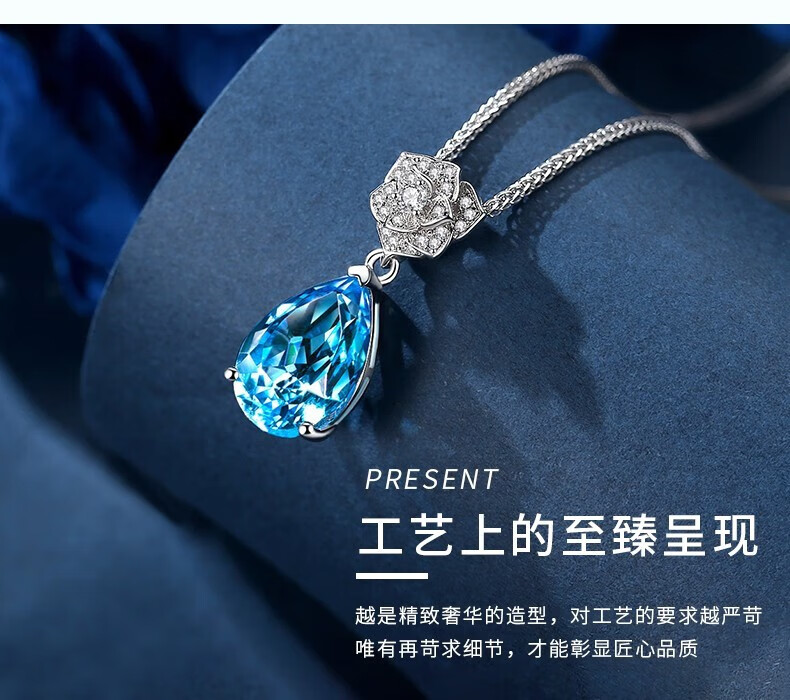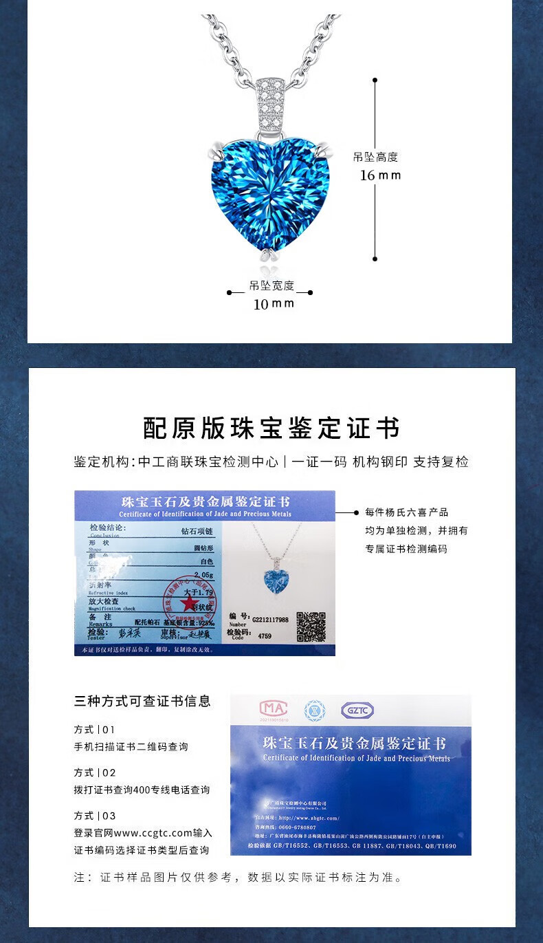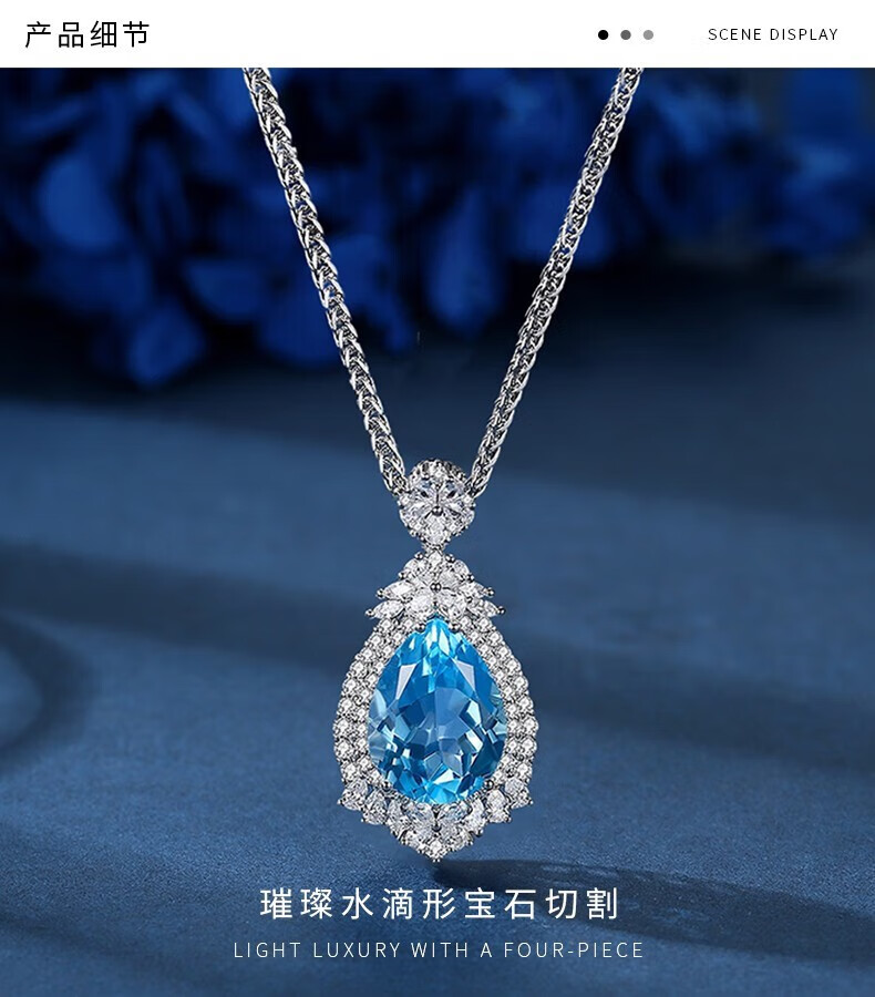 Young's Six Happiness Hong Kong Brand Light Luxury Valentine's Day Birthday Gift for Wife Natural Gem Heart of the Ocean Necklace Fashion 3 Carat Millennium Topaz Necklace - Upgraded Style