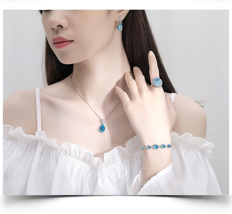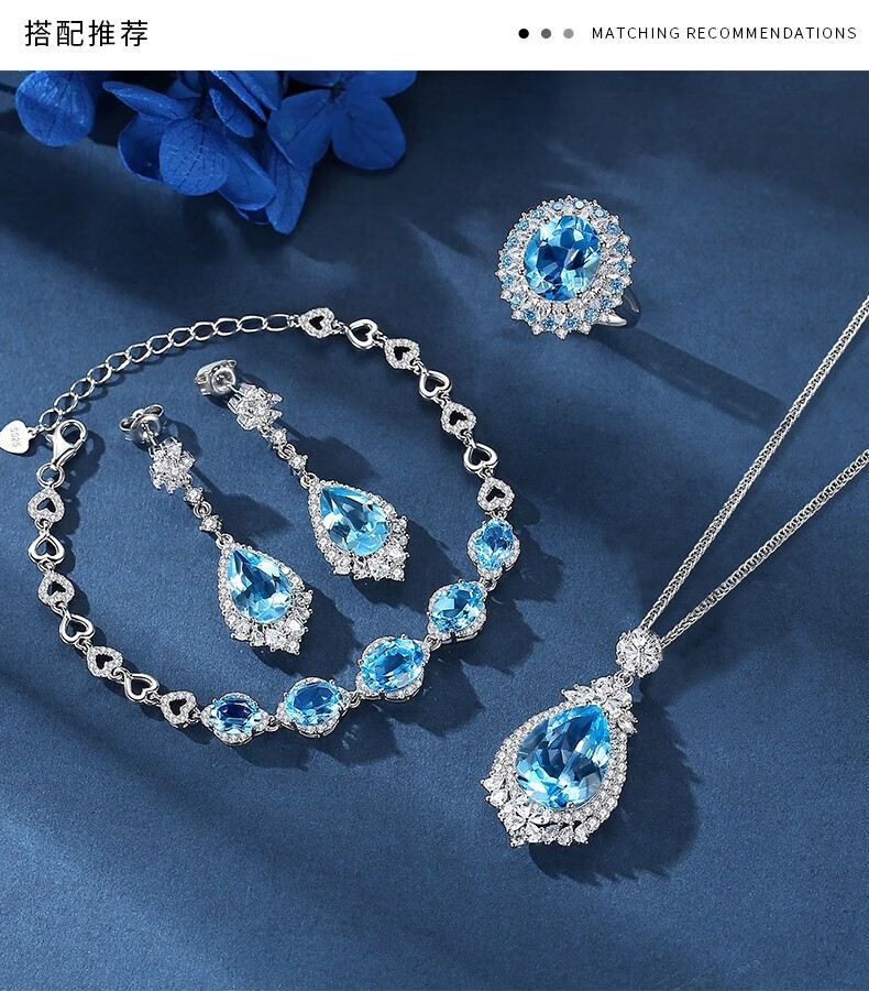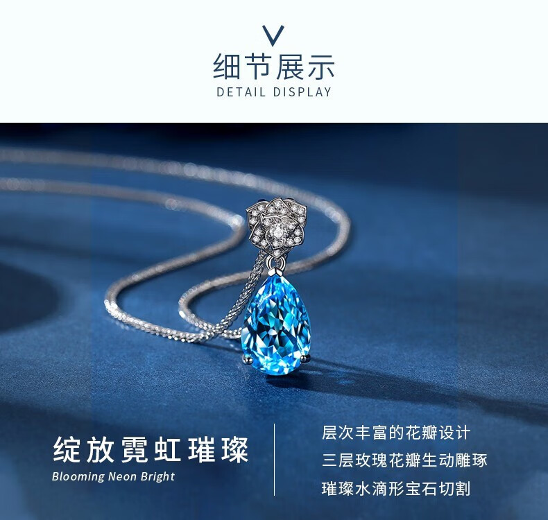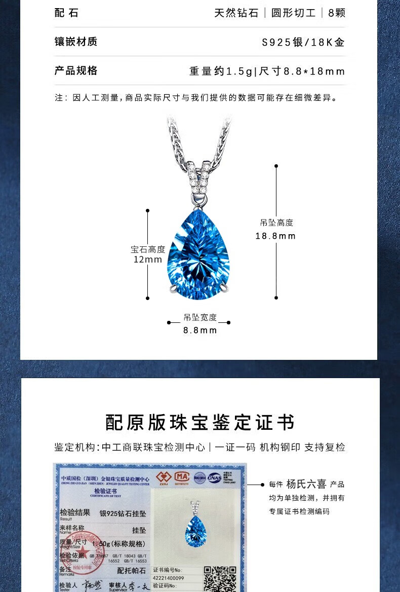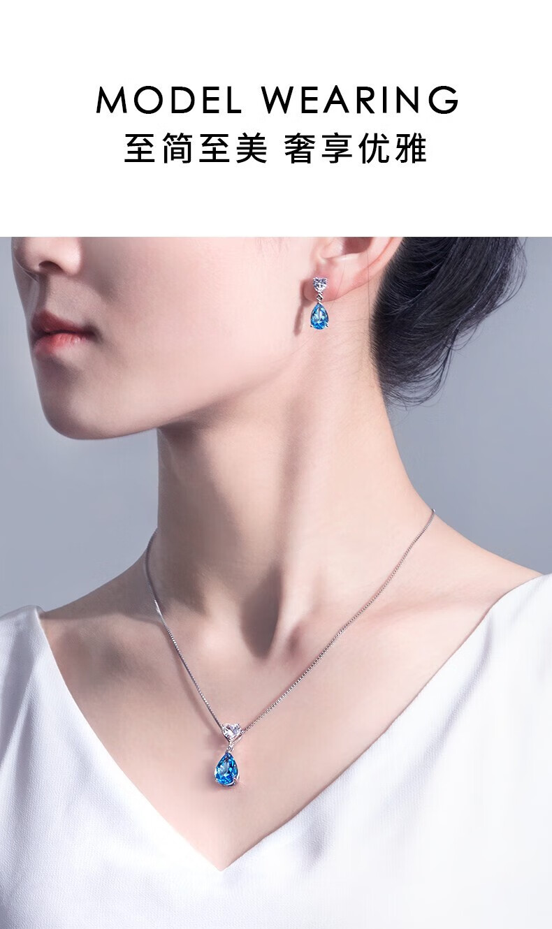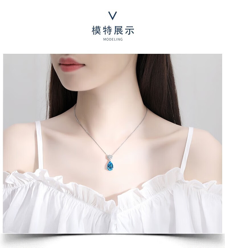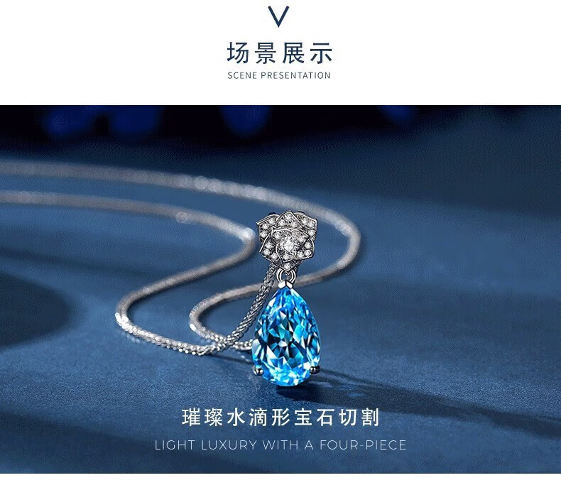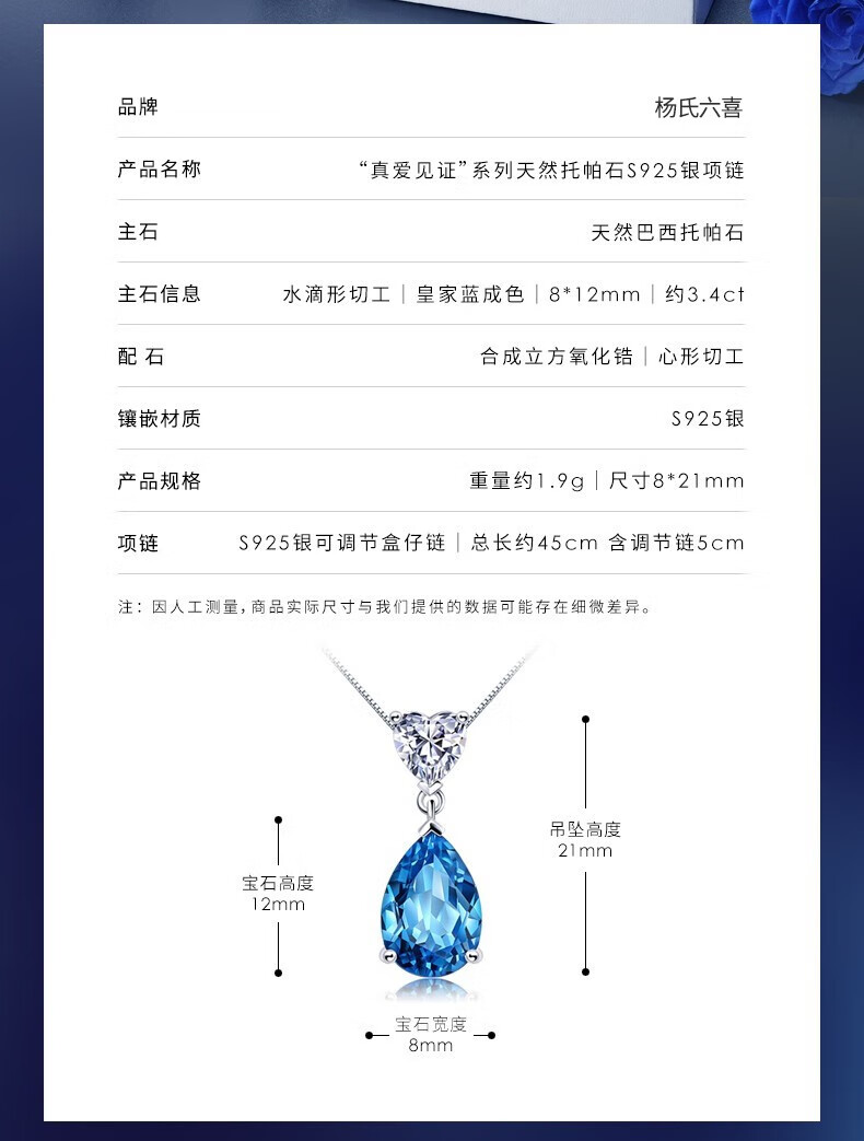Young's Six Happiness Hong Kong Brand Light Luxury Valentine's Day Birthday Gift for Wife Natural Gem Heart of the Ocean Necklace Fashion 3 Carat Millennium Topaz Necklace - Upgraded Style