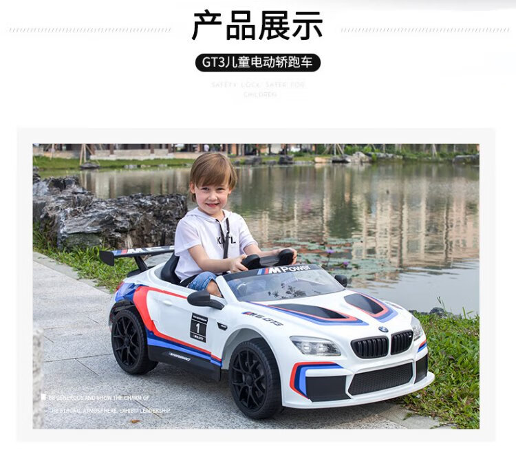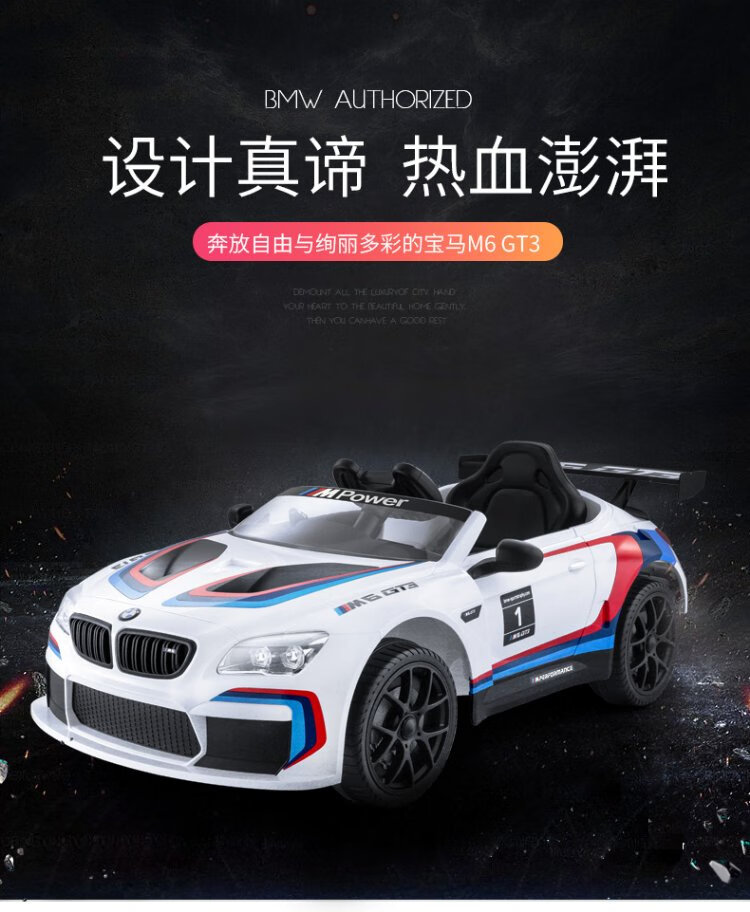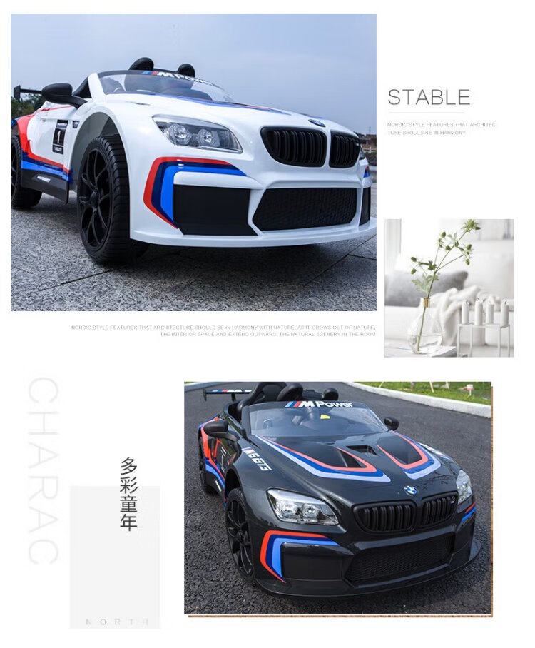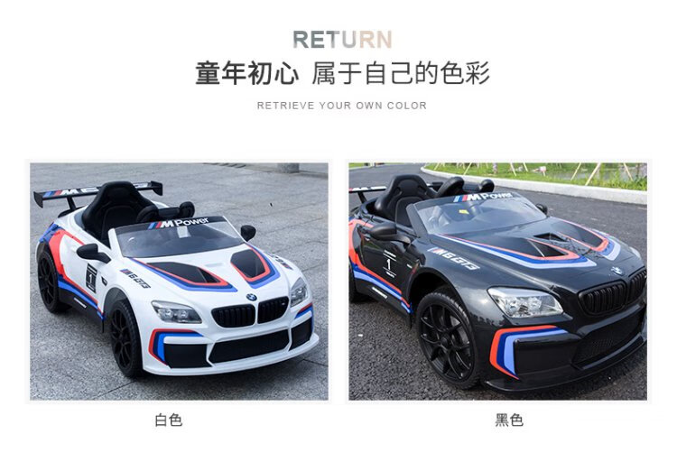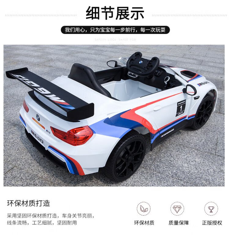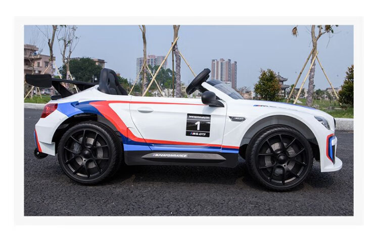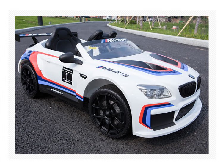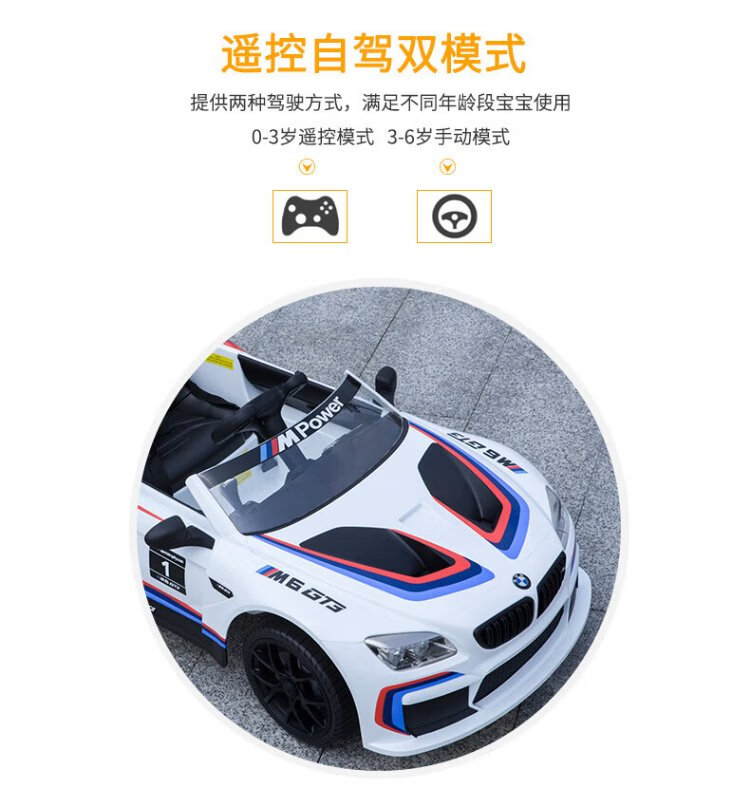 Zhilebao BMW children's electric four-wheel car children's dual-drive swing car with remote control toy car with shock-absorbing stroller 6666R ivory white + ordinary wheels