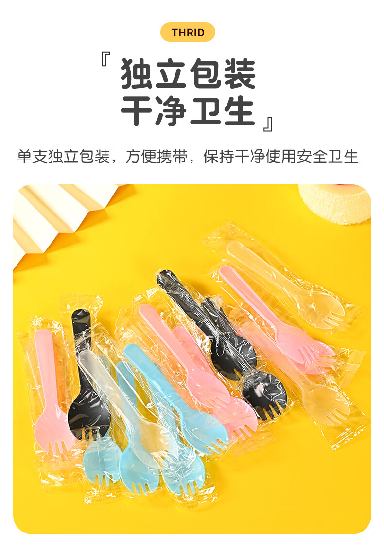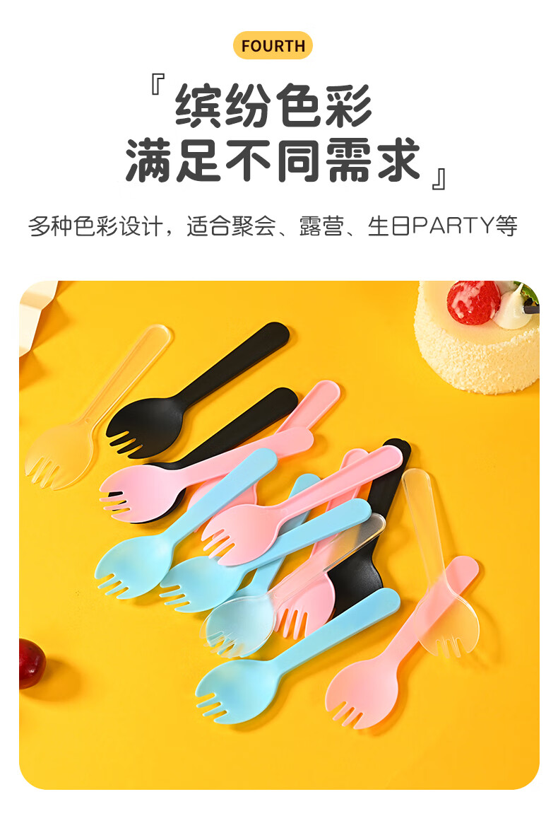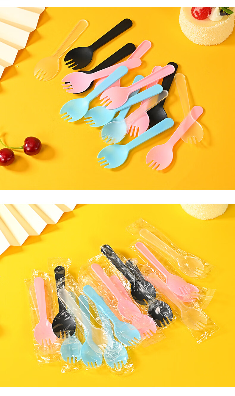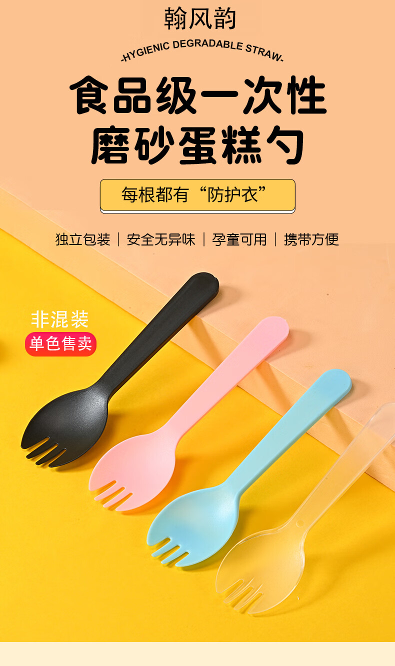 Hanfengyun disposable plastic forks, cake spoons, individually packaged frosted forks, thickened dessert spoons, ice cream scoops, cake scoops, blue, individually packed 100 pieces