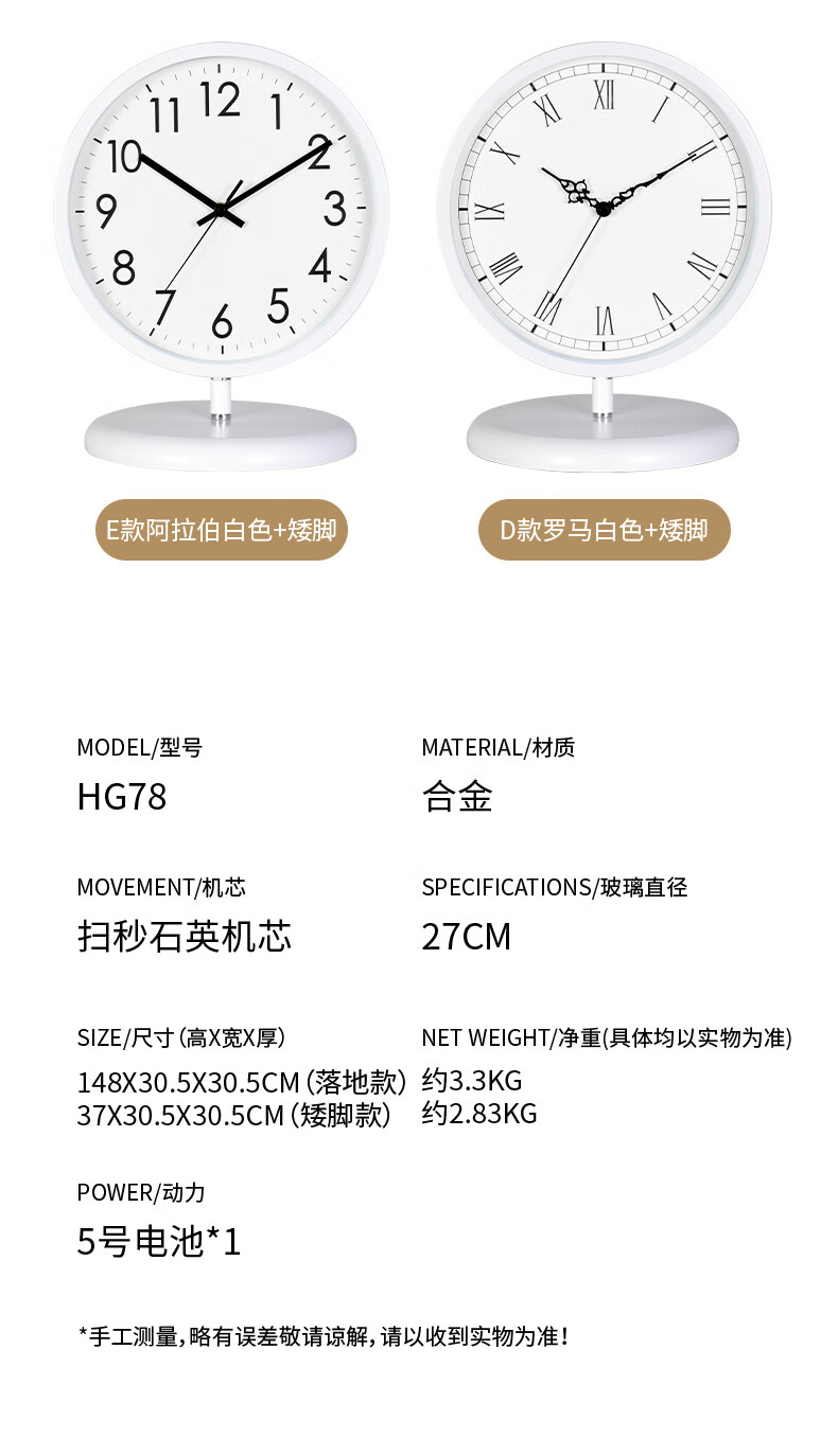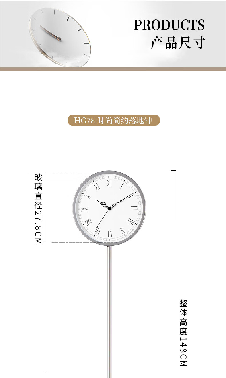 Hanshi (Hense) quartz floor clock living room clock free punch clock creative modern simple standing clock display clock HG78 B Roman numerals + electroplated metal