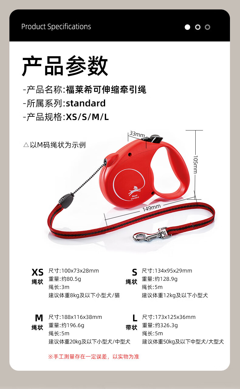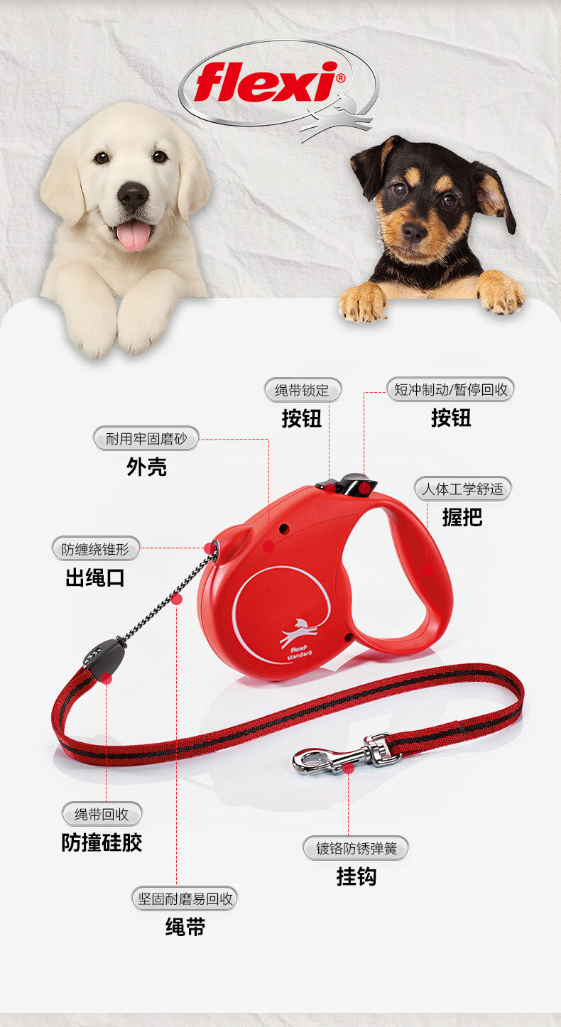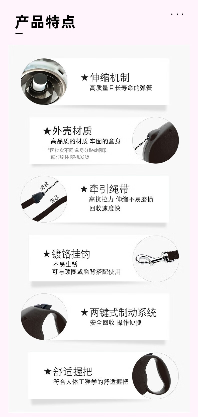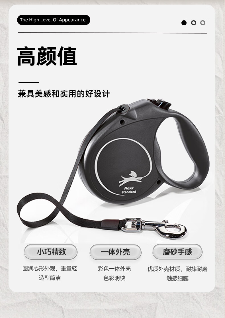 FLEXI German Classic Series Pet Retractable Dog Leash Cat Leash Cat Leash Dog Walking Chain Classic Series - Black M Rope (5m/20kg)