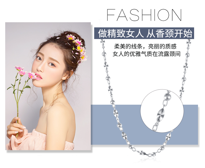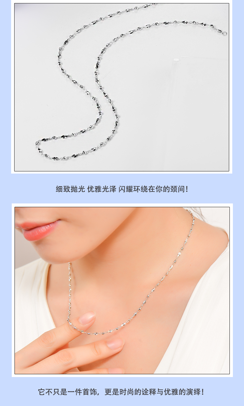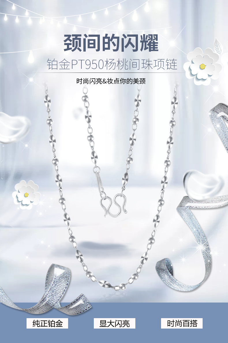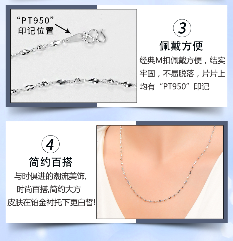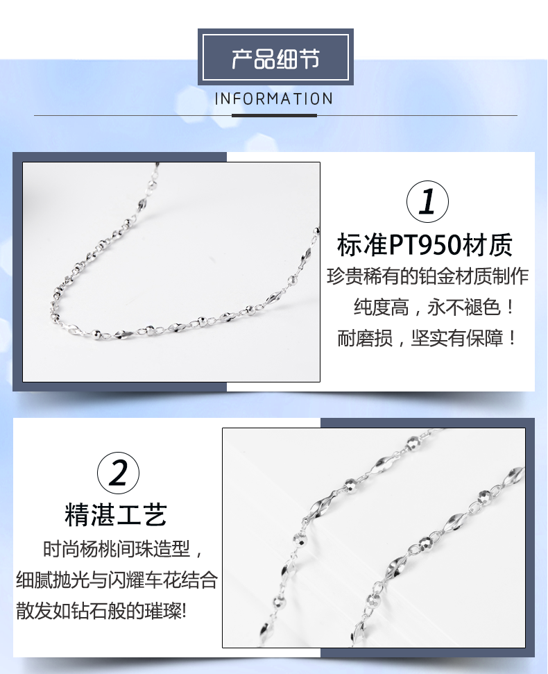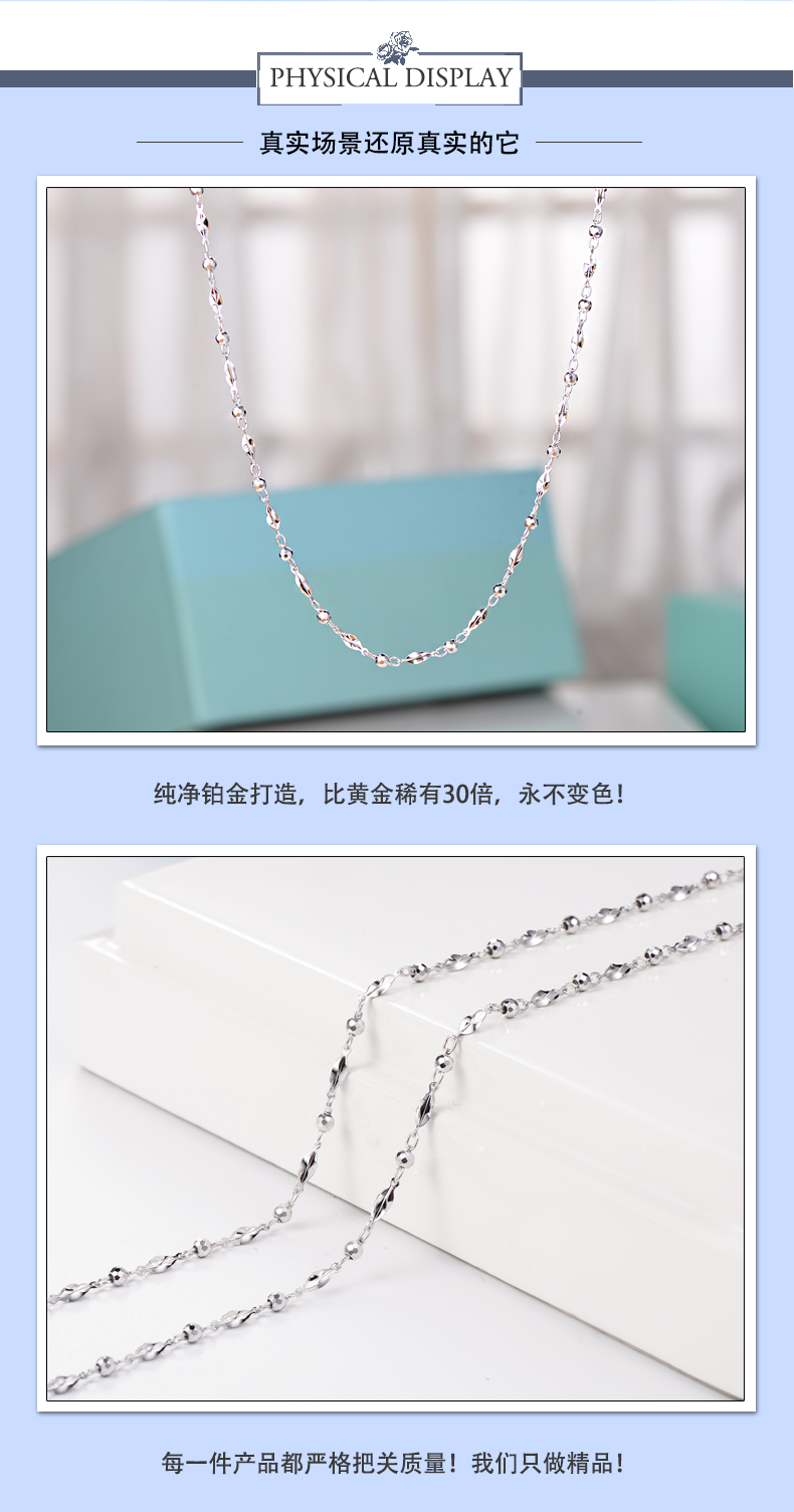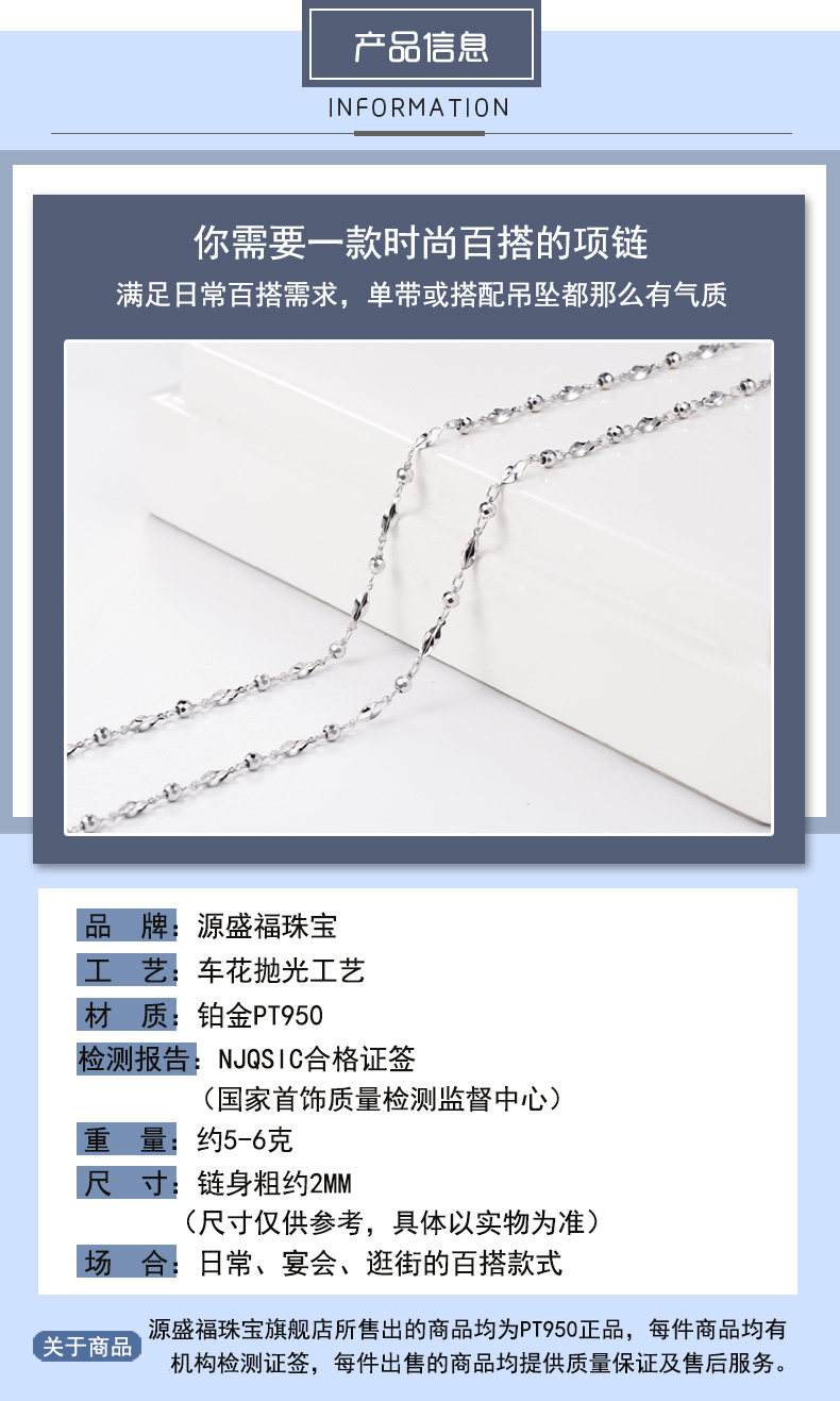 Yuan Shengfu's new PT950 fashionable platinum necklace, fashionable and versatile, large women's platinum carambola bead chain, 5.74g, 43cm