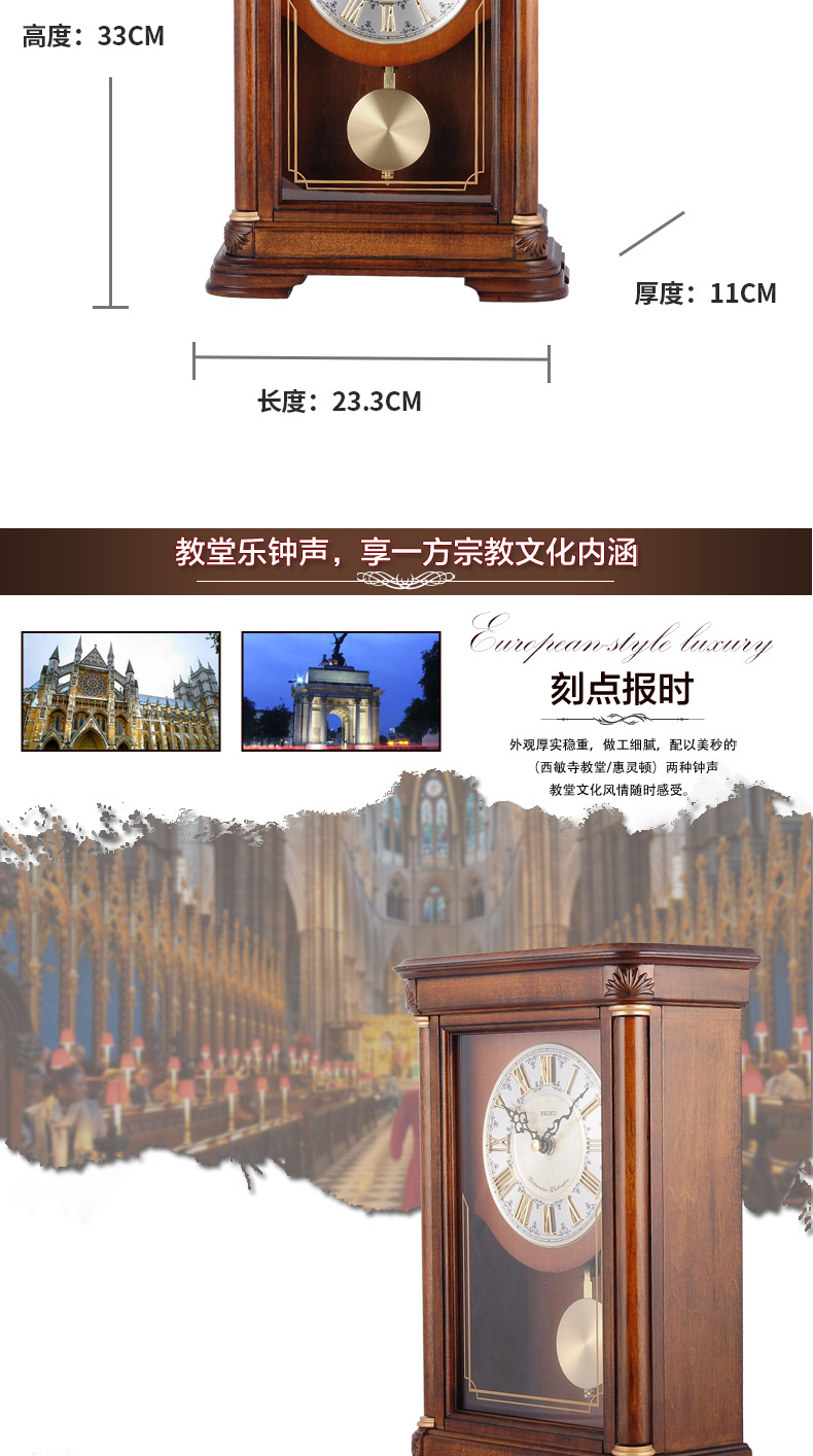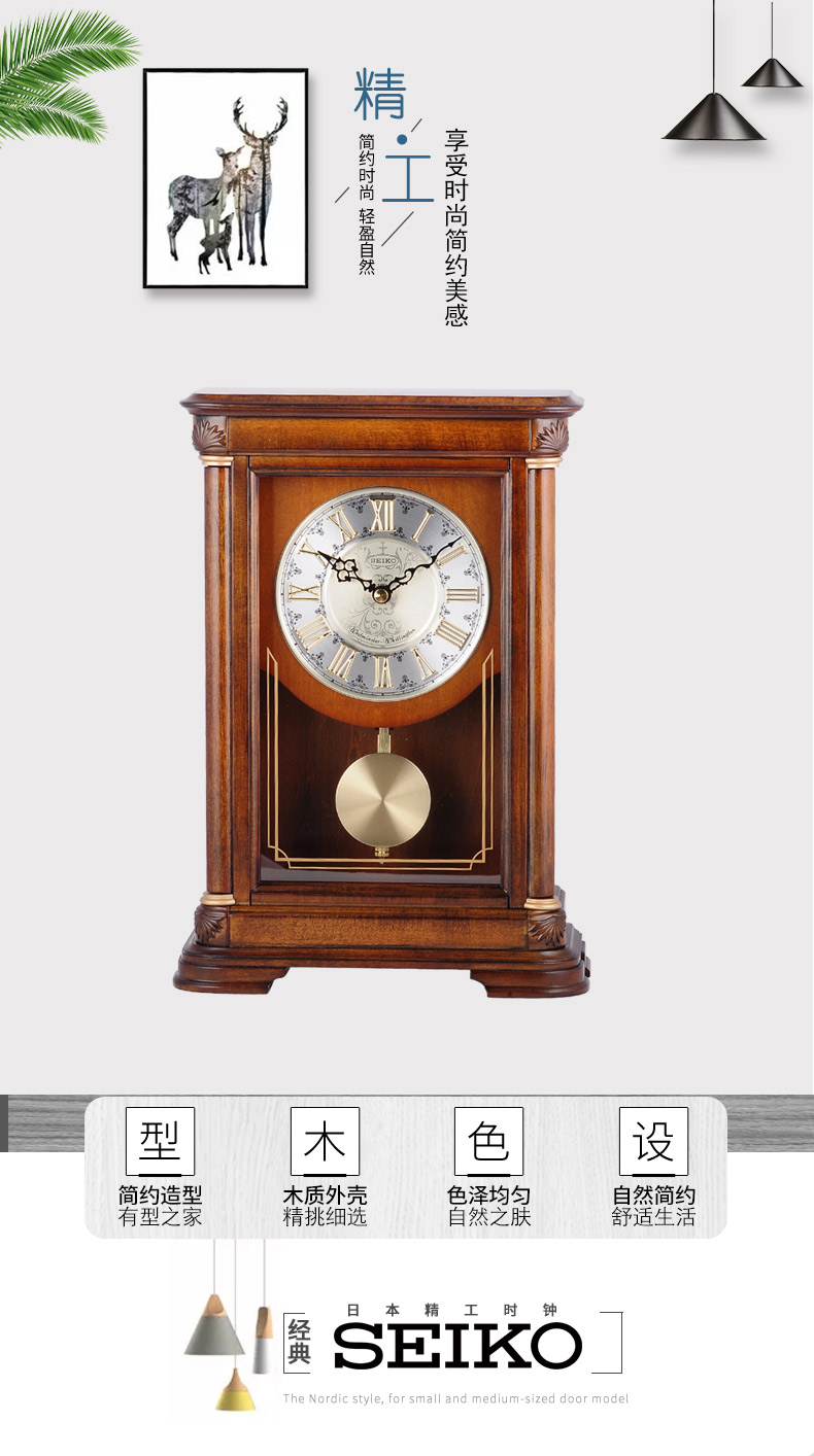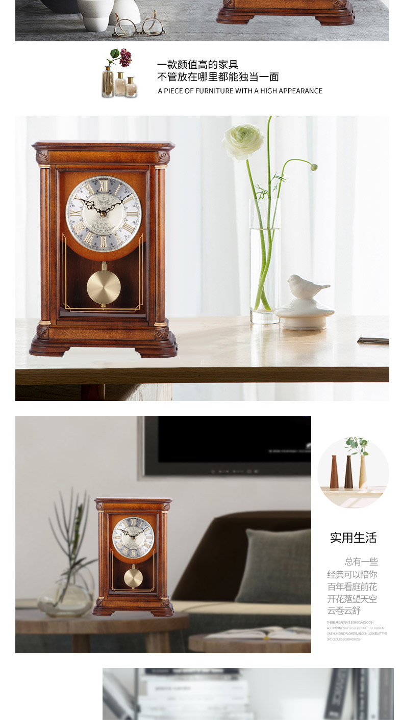 Seiko Japan Seiko hourly chime table clock living room bedroom office creative exquisite quartz clock solid wood clock brown