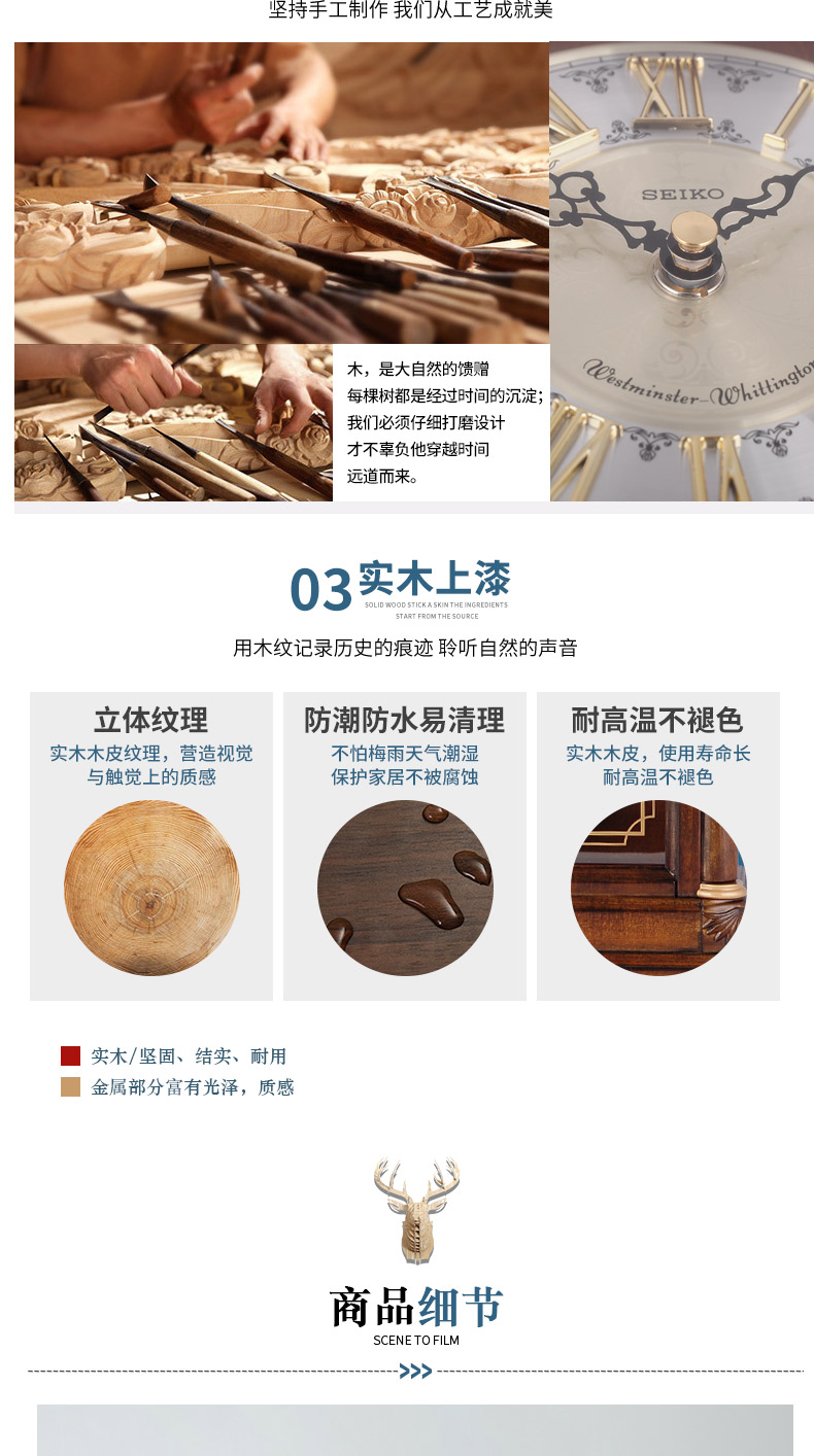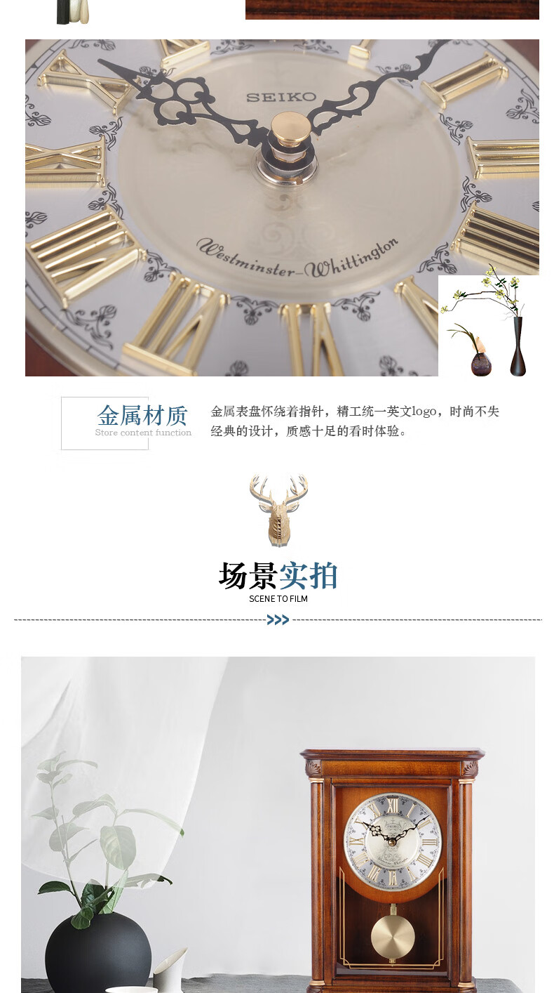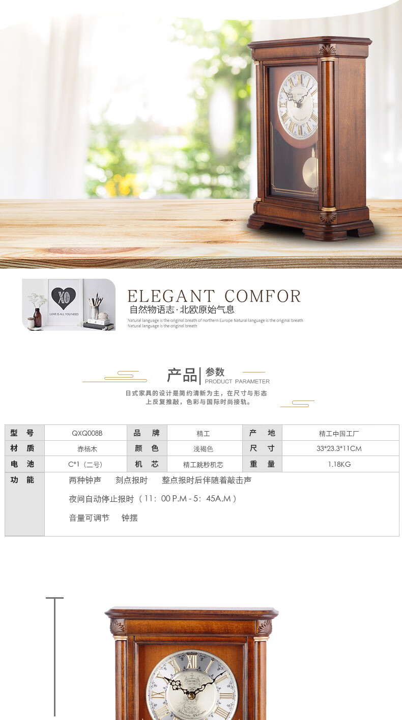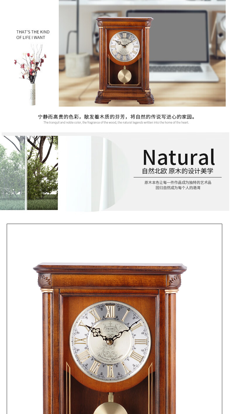 Seiko Japan Seiko hourly chime table clock living room bedroom office creative exquisite quartz clock solid wood clock brown