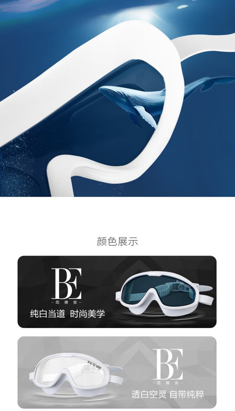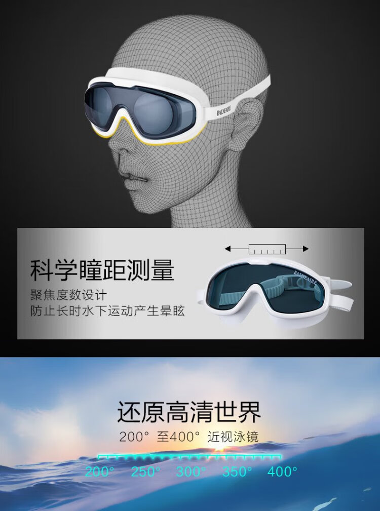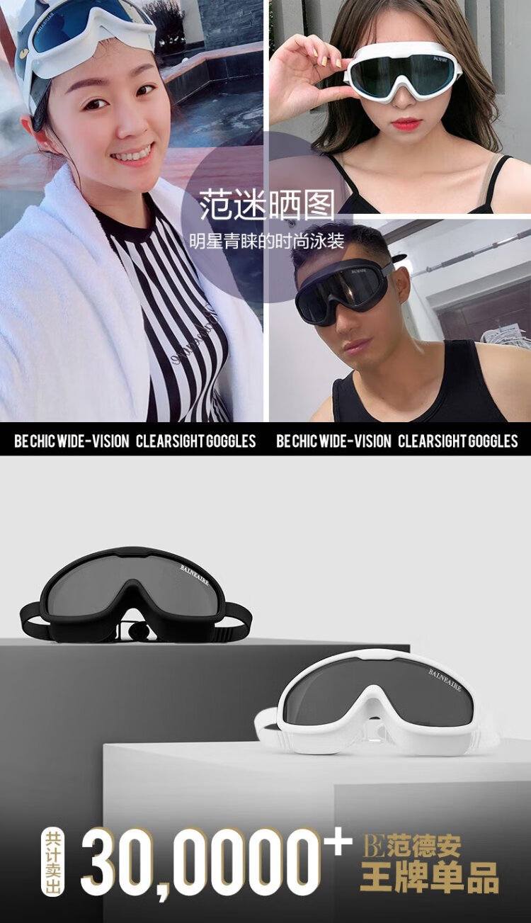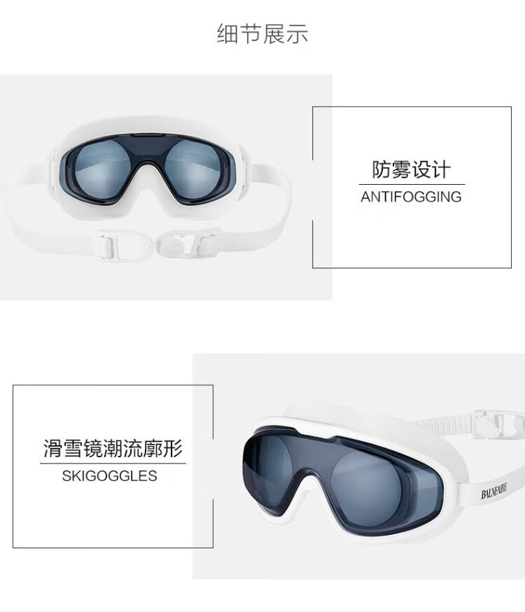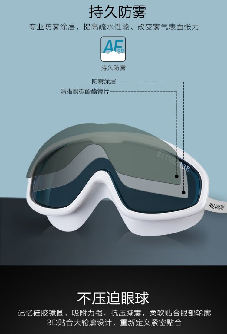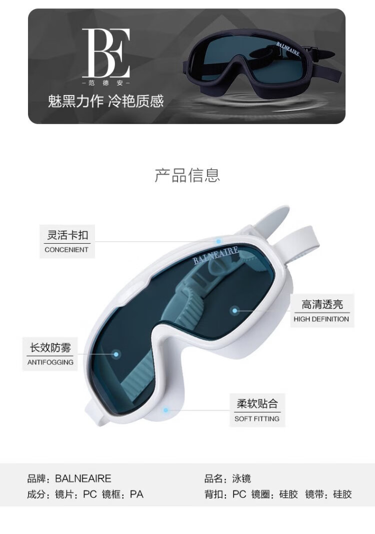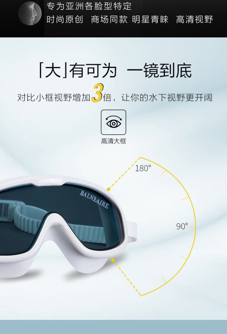 Fan De'an (BALNEAIRE) Ni Ni's same style large-frame myopia swimming goggles high-definition anti-fog waterproof eye protection flat professional men and women white