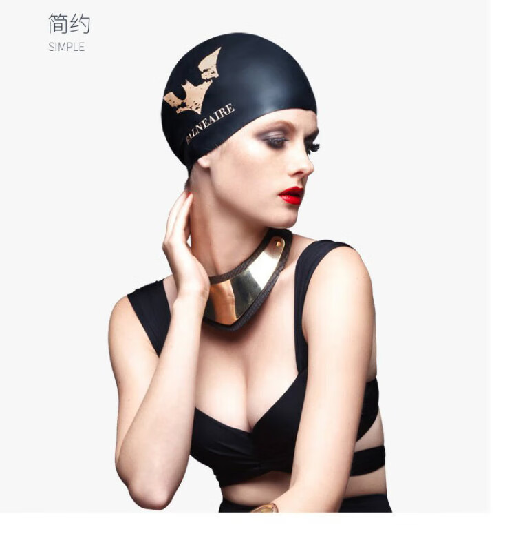 Fan De'an (BALNEAIRE) Ni Ni's same style high-end fashion ear protection professional large size men's and women's swimming cap with printed silicone black