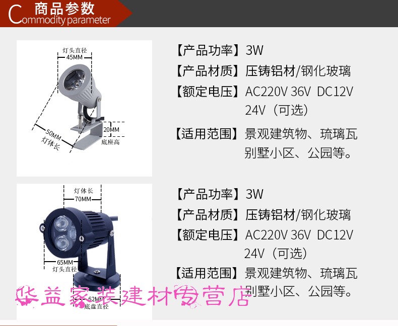 12V24V220V outdoor LED small spotlight 3W waterproof projection light super bright door sign floodlight landscape light waterproof 220V3W colorful