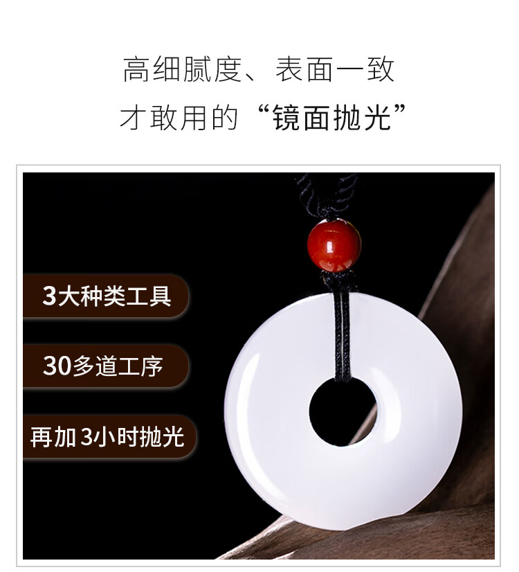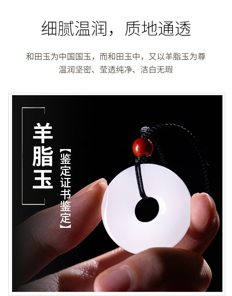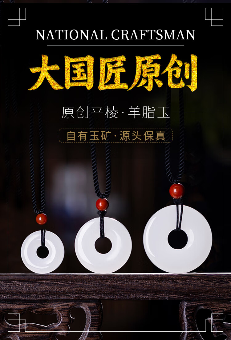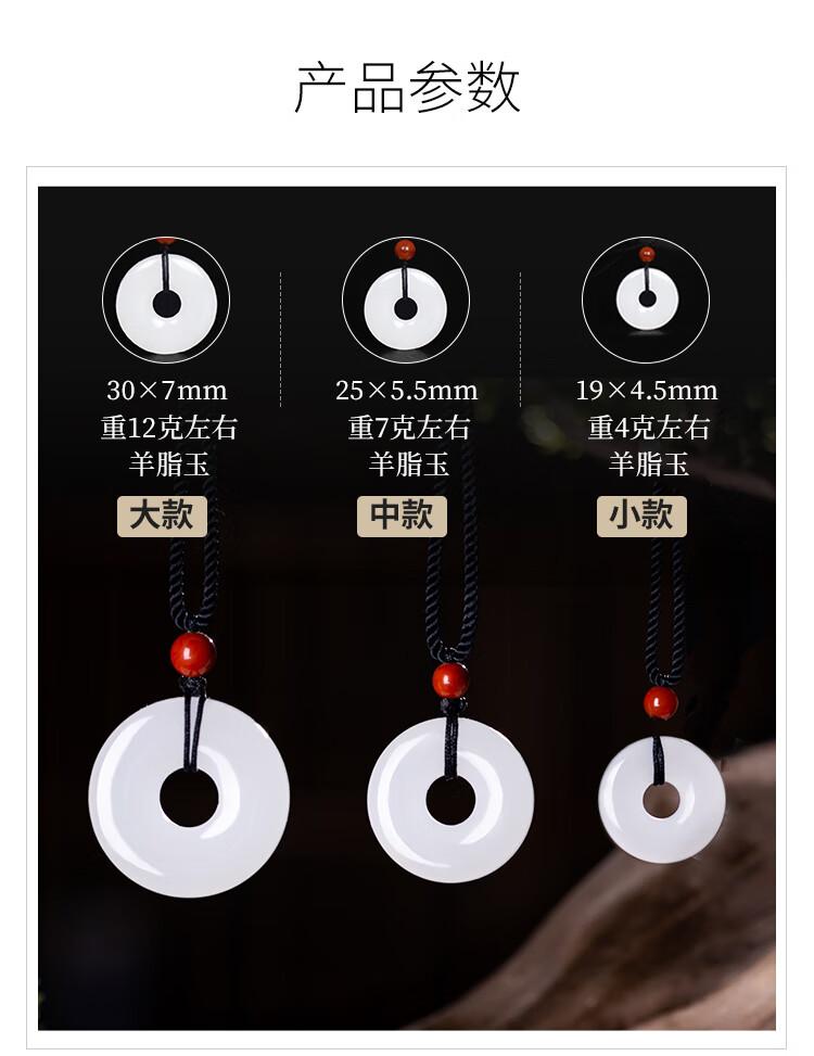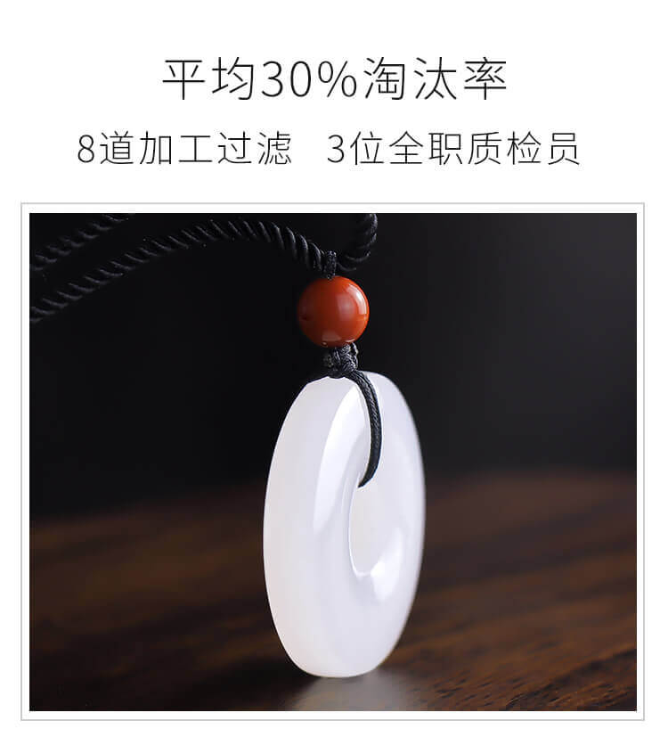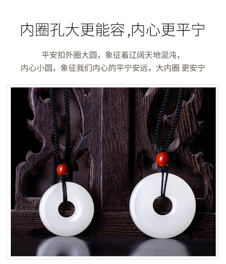 Nine silk Hetian jade pendant, mutton-fat jade peace buckle jade pendant for men and women, first-class white jade pendant for women, mutton-fat jade medium size (diameter 25mm)