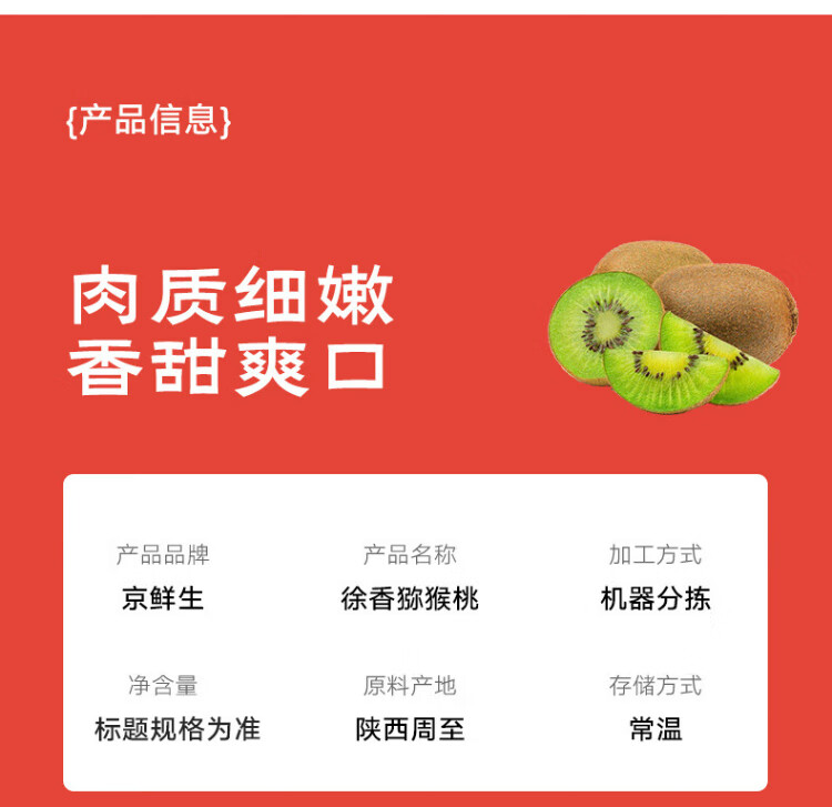 Jingxiansheng Shaanxi Xuxiang Green Heart Kiwi 16-18 pieces, about 80-110g per fruit, fresh fruit gift box
