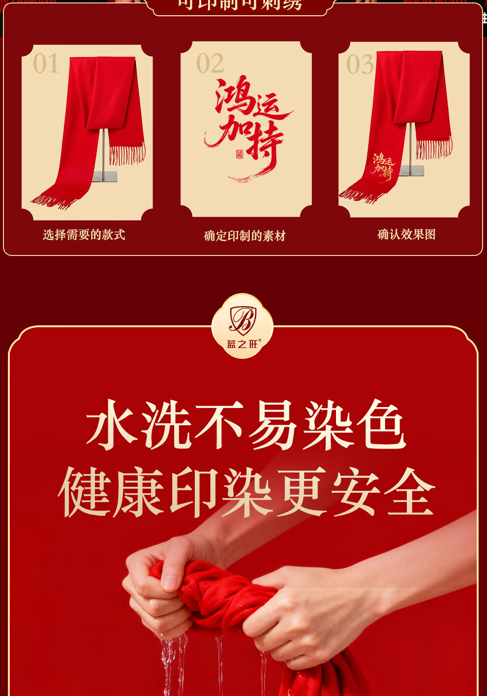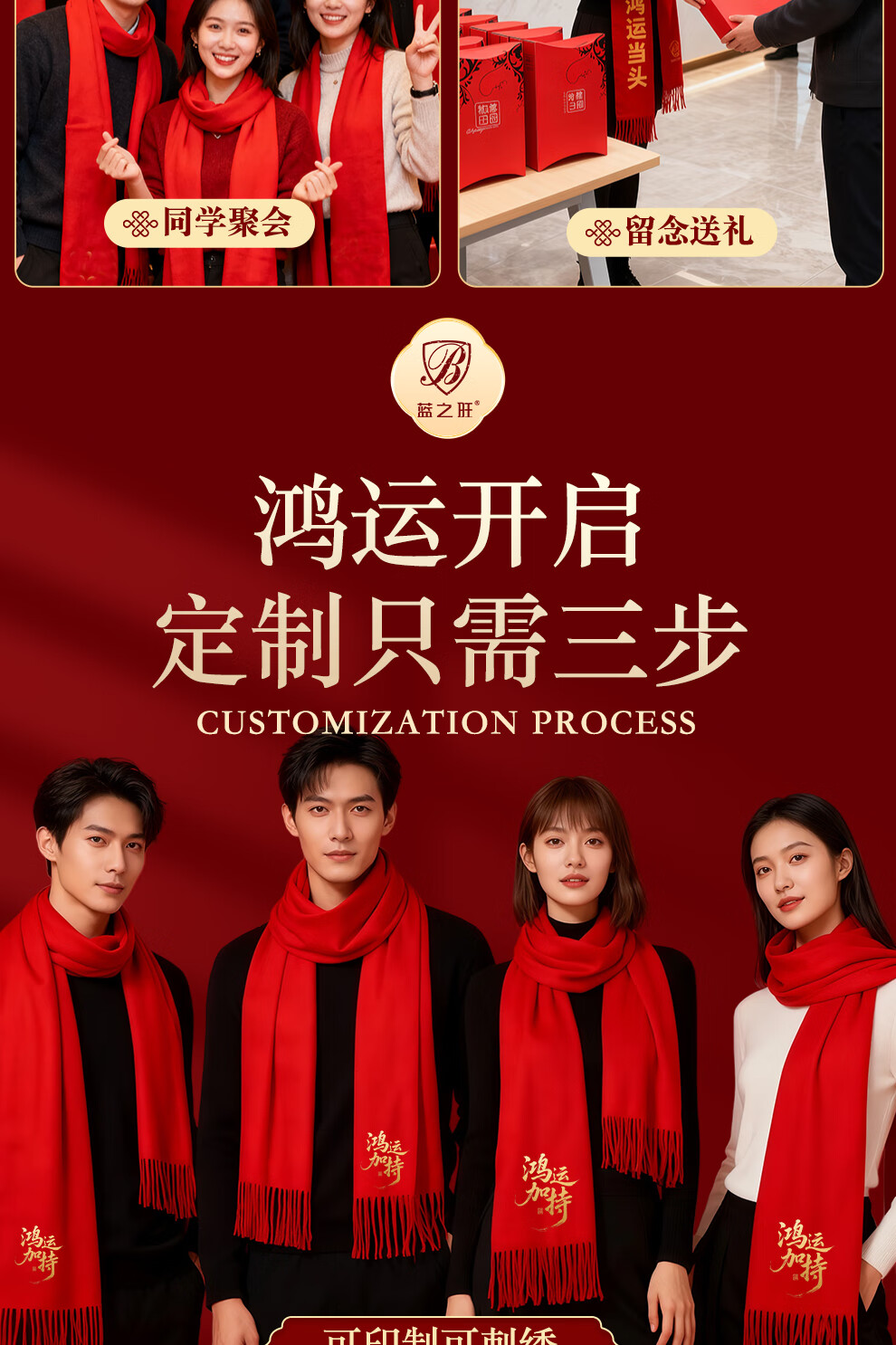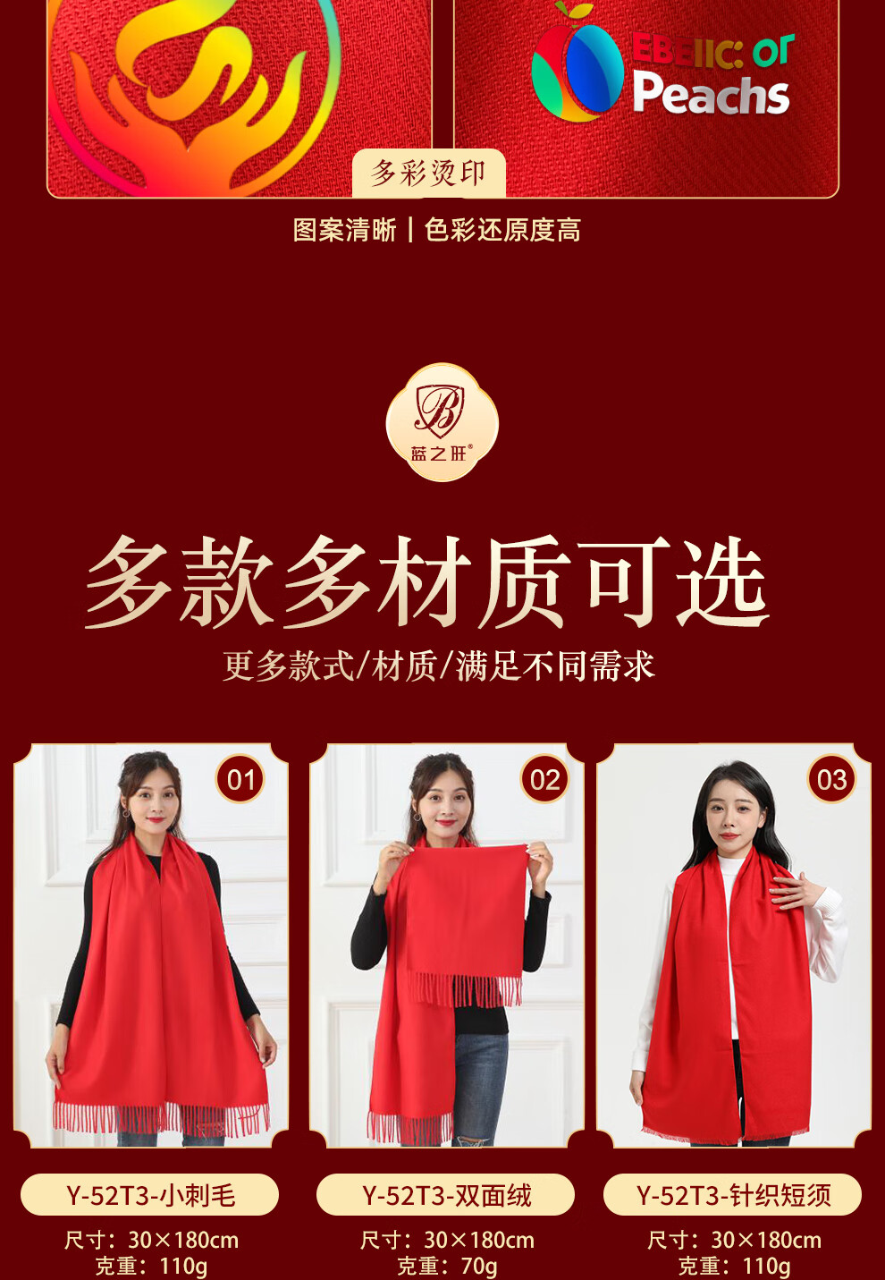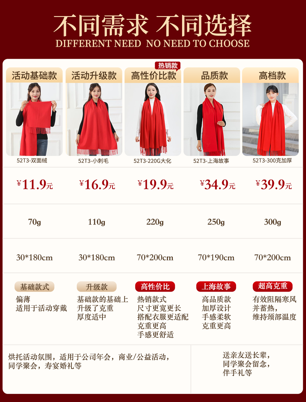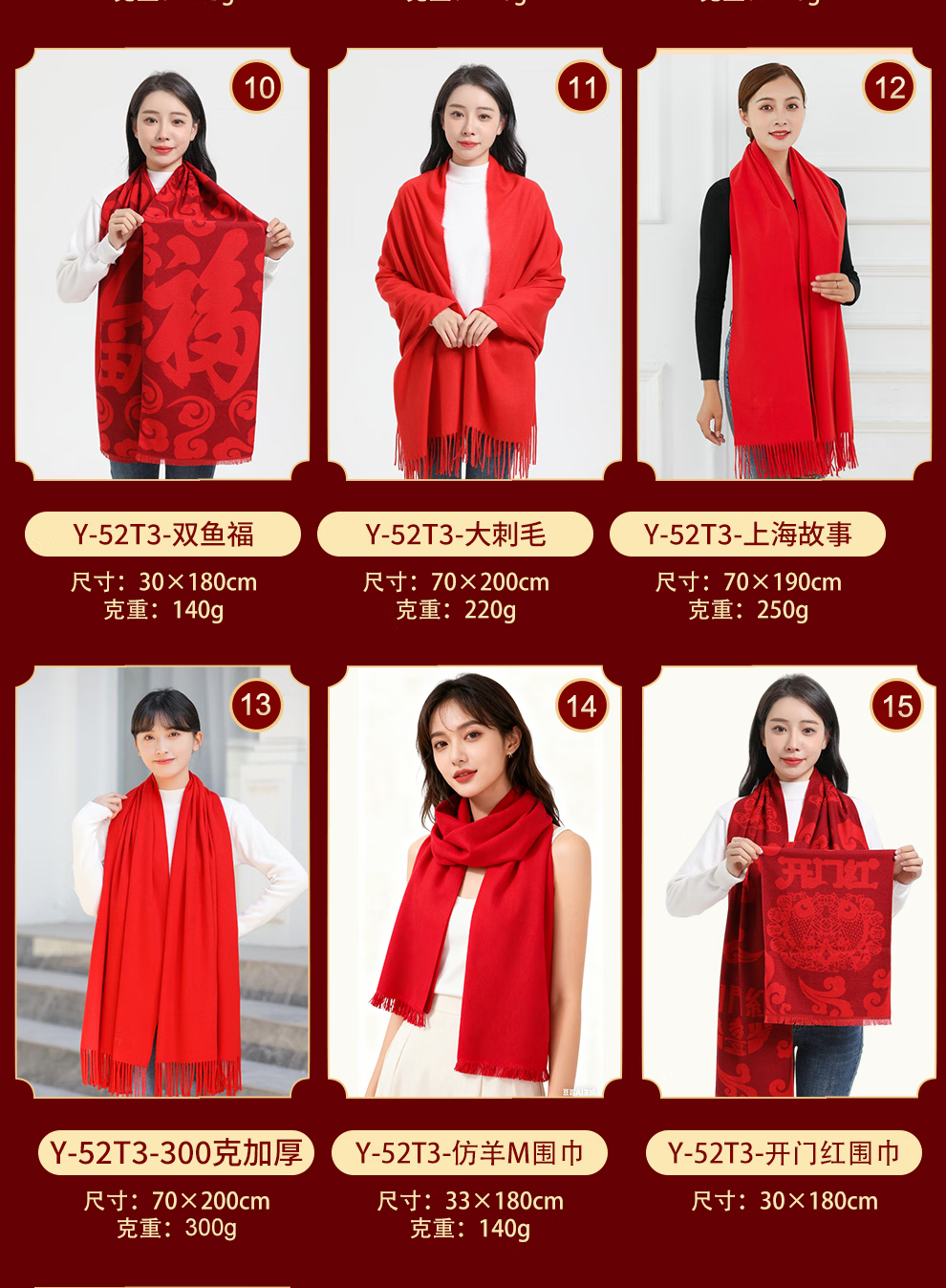 Lanzhiwang red scarf customized Chinese red scarf Horse Year Annual Party Party Shawl Birthday Wedding Anniversary New Year Scarf 220g Dahua 70*200cm-220g