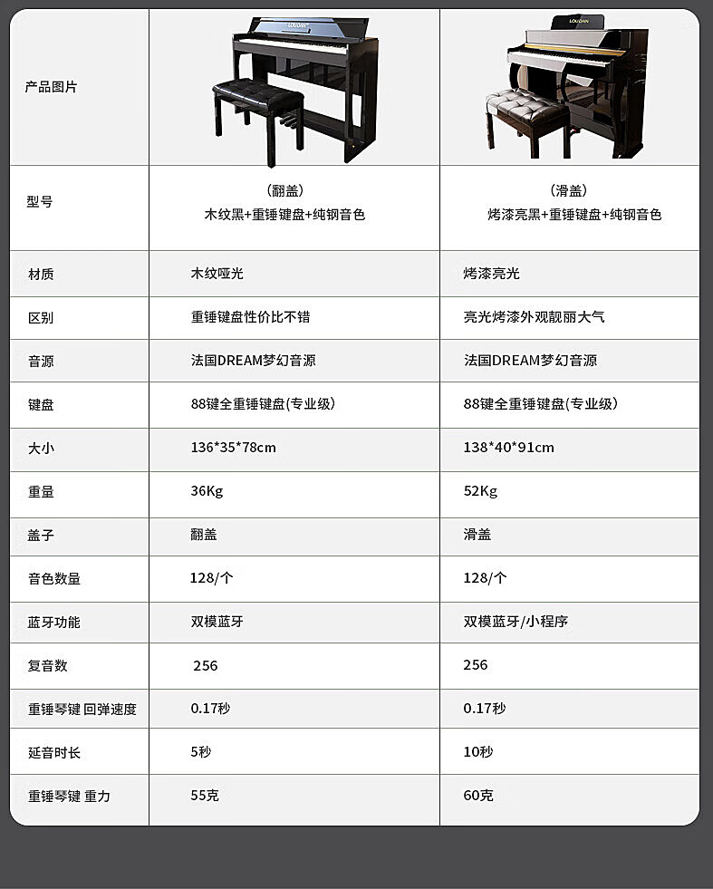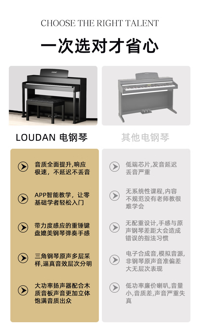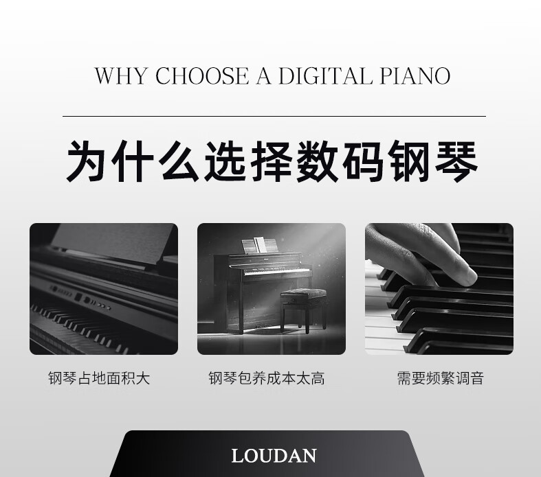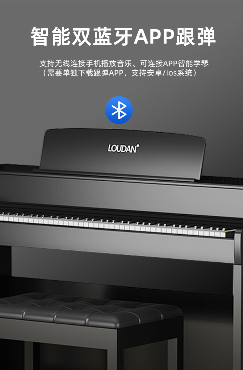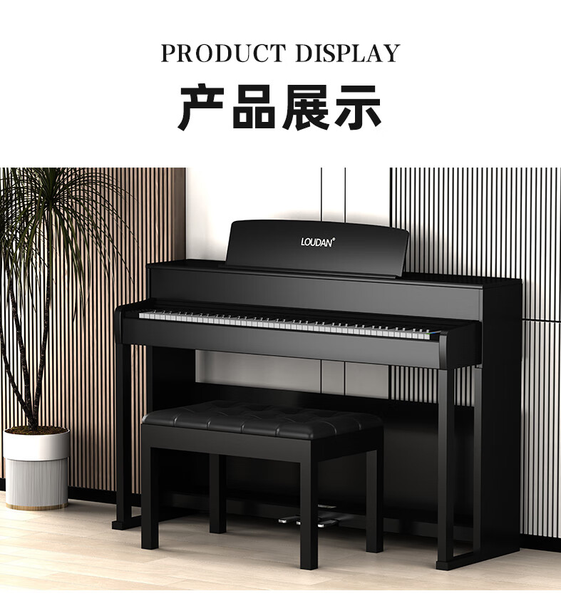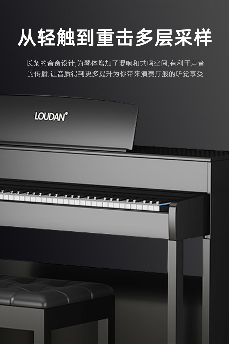LOUDAN Jingchao Qicangfa 88-key vertical hammer electric piano, professional home electronic piano for adults and beginners, glossy black paint + hammer keyboard + pure steel tone