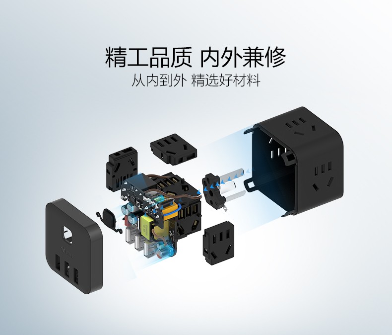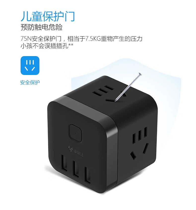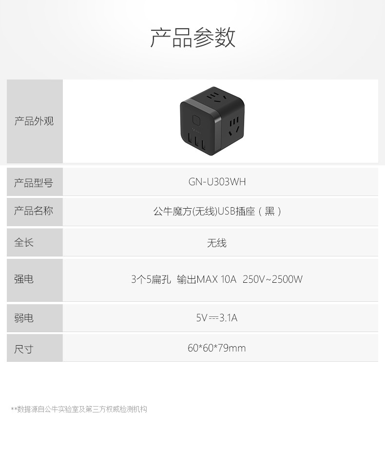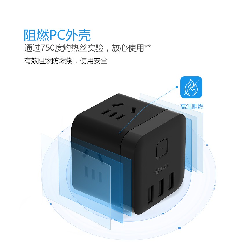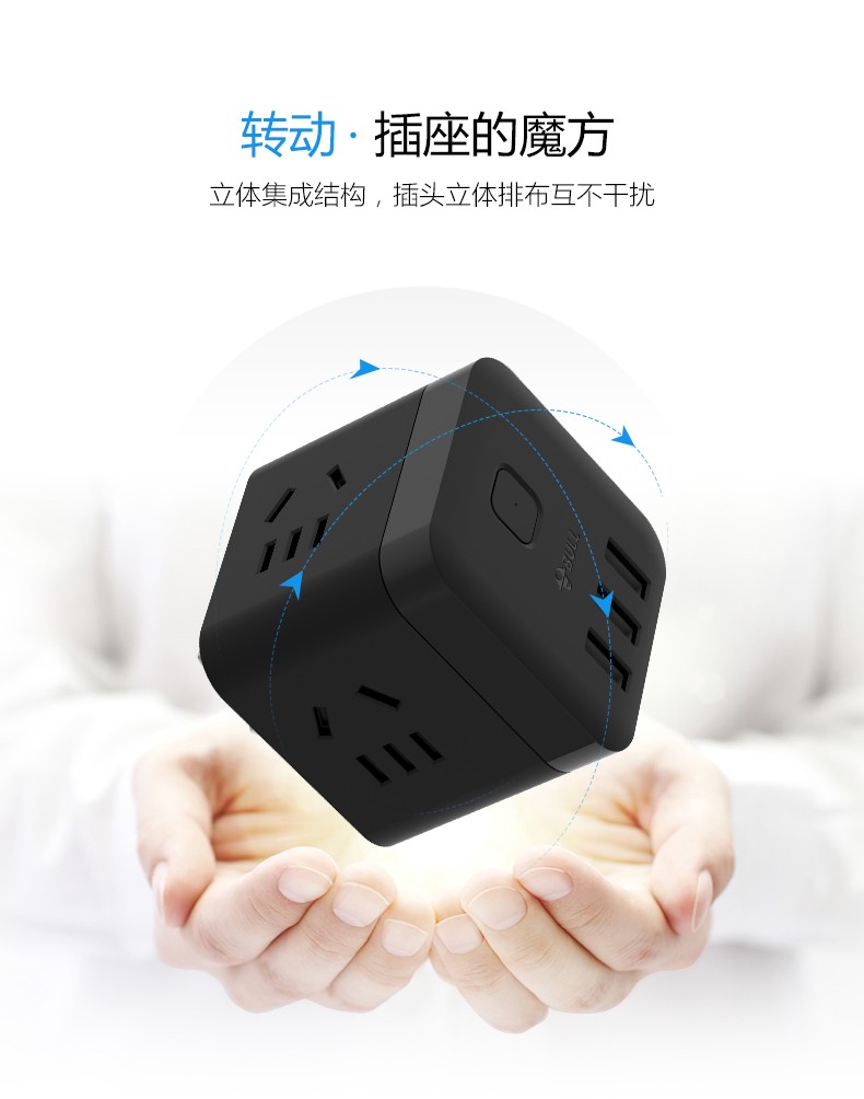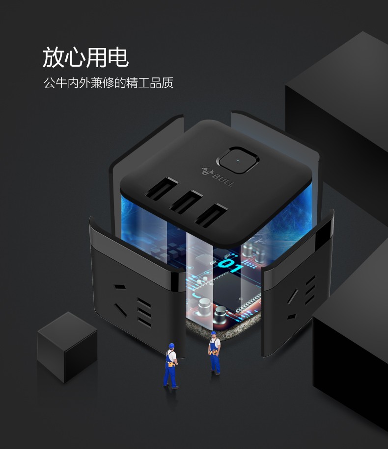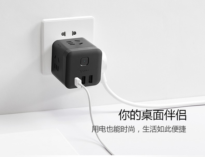 Bull USB Rubik's Cube Socket Converter Multi-function Plug-in Board with Line Adapter Plug One-to-One to Multi-purpose Mobile Phone Charger Bedside Plug Strip Plug Strip Plug and Drag Strip GN-U303UW White Master Control 3 Positions 5 Holes + 3USB