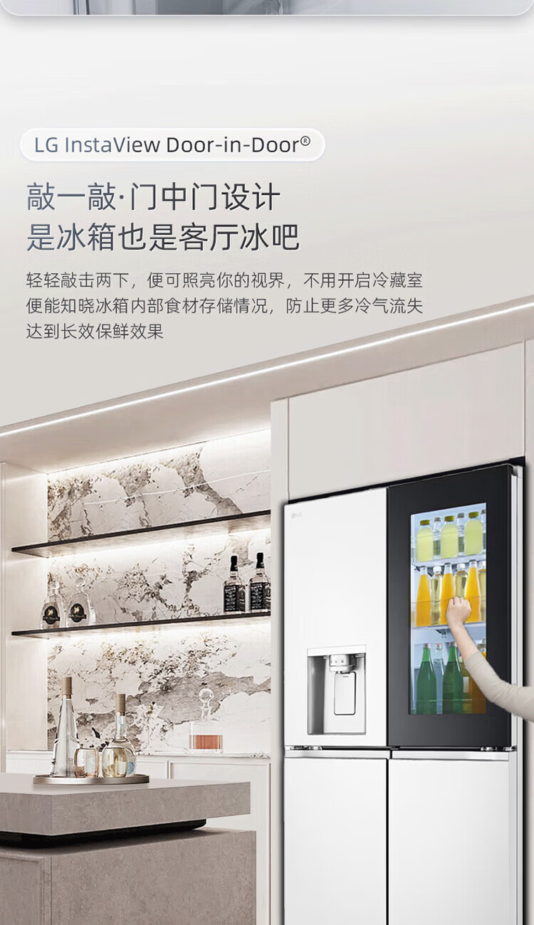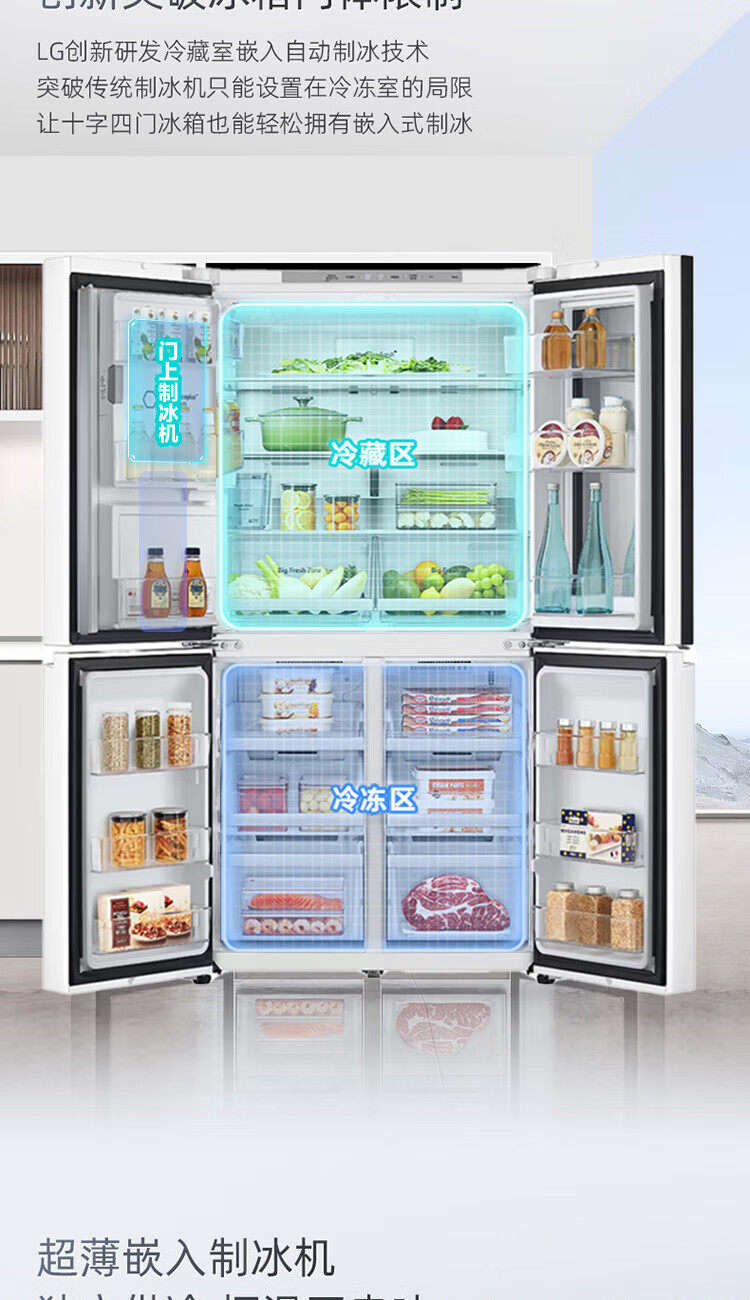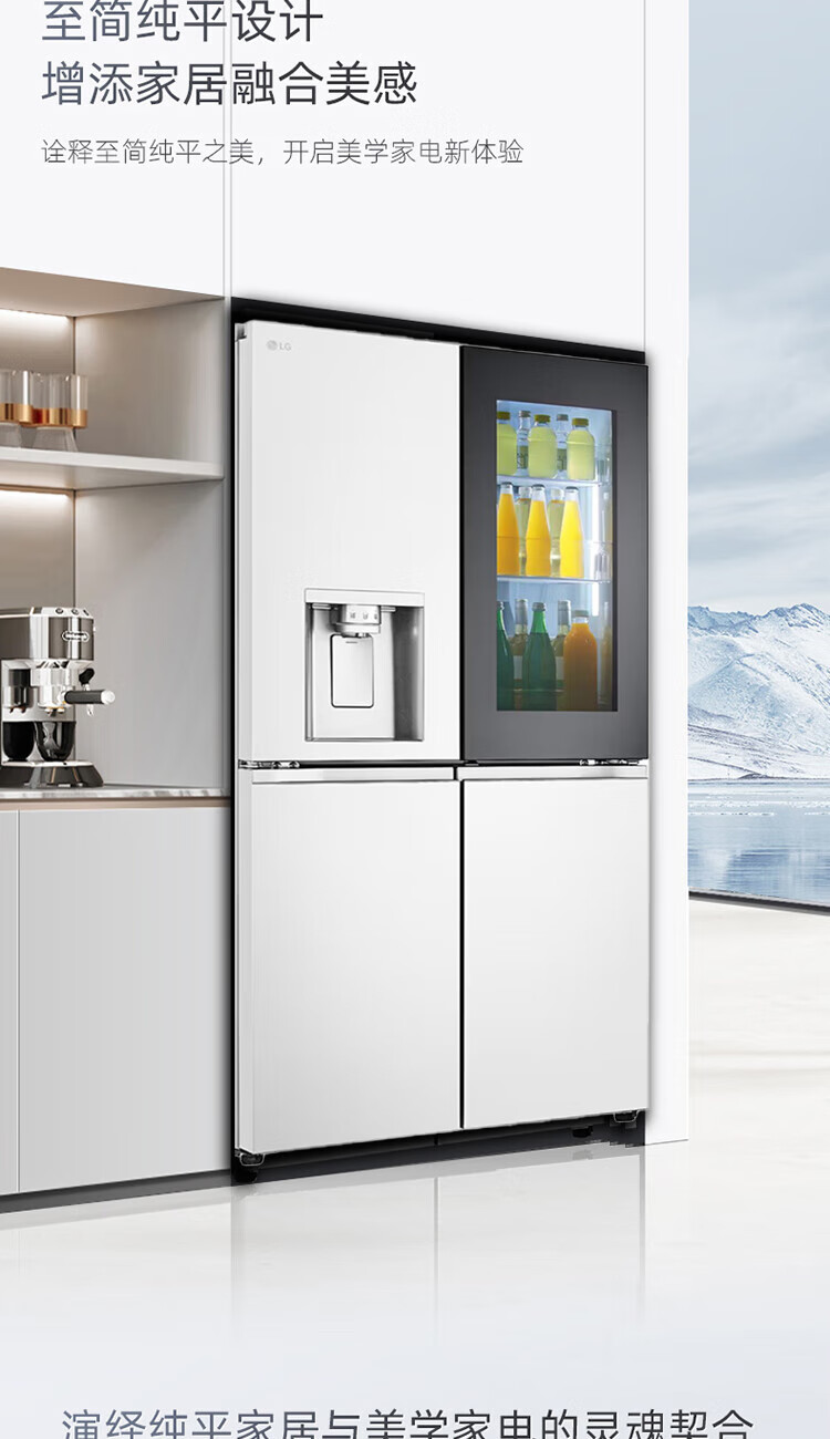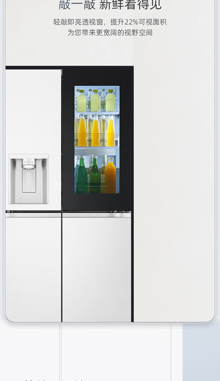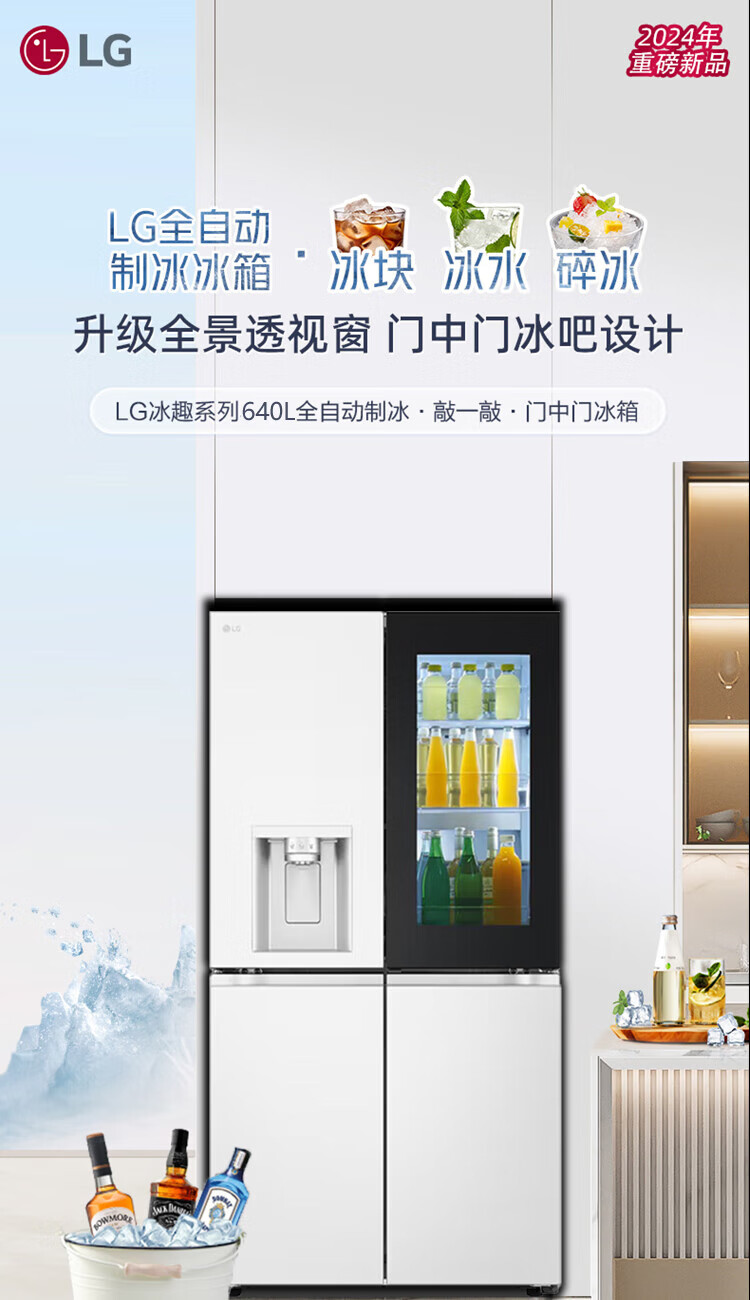 LG640 liter cross-door mid-door automatic ice maker see-through window refrigerator household large-capacity air-cooled frost-free energy-saving computer temperature control inverter compressor flat embedded 2024 knock-on ice machine white F664MEH95D