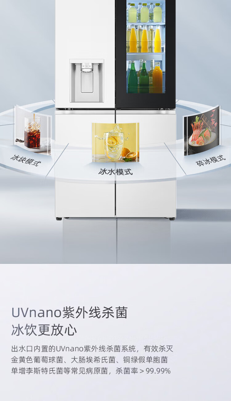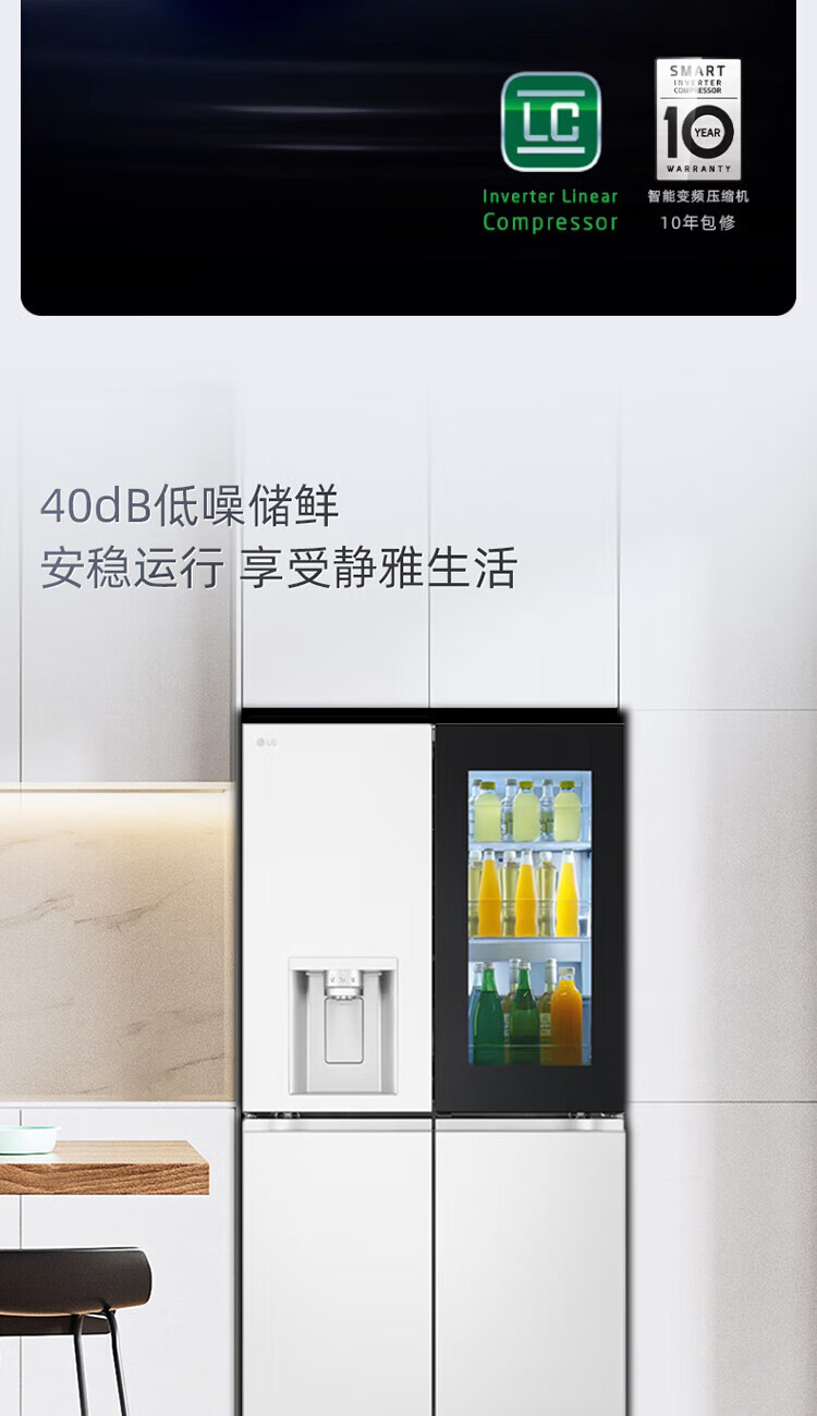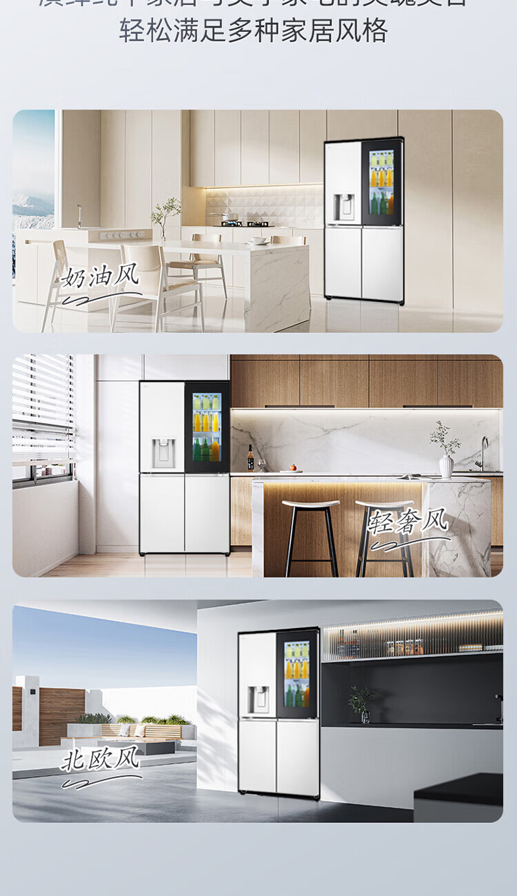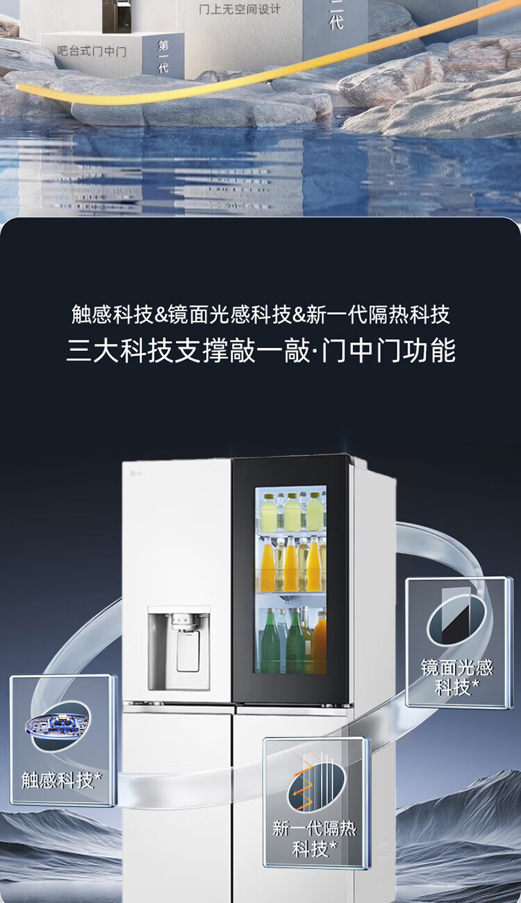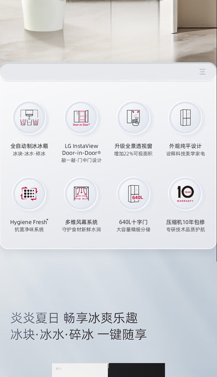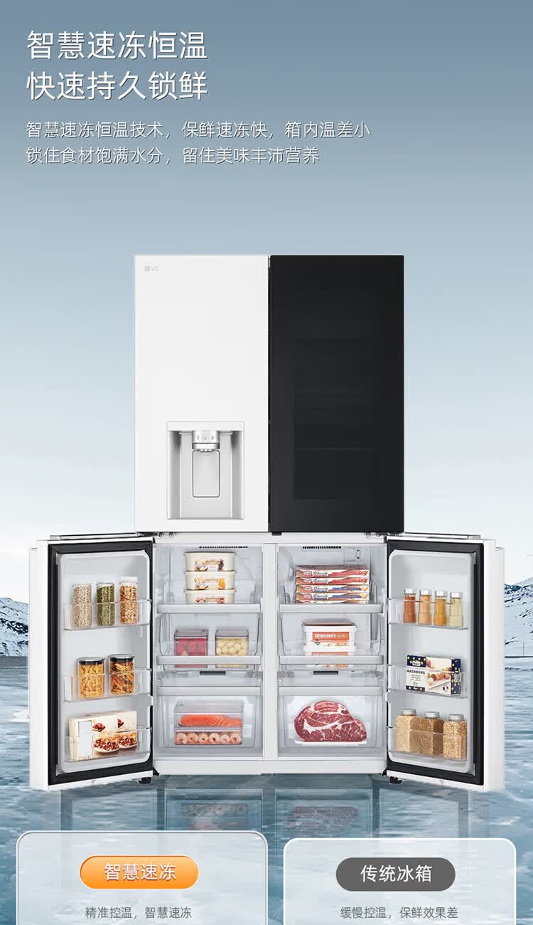 LG640 liter cross-door mid-door automatic ice maker see-through window refrigerator household large-capacity air-cooled frost-free energy-saving computer temperature control inverter compressor flat embedded 2024 knock-on ice machine white F664MEH95D