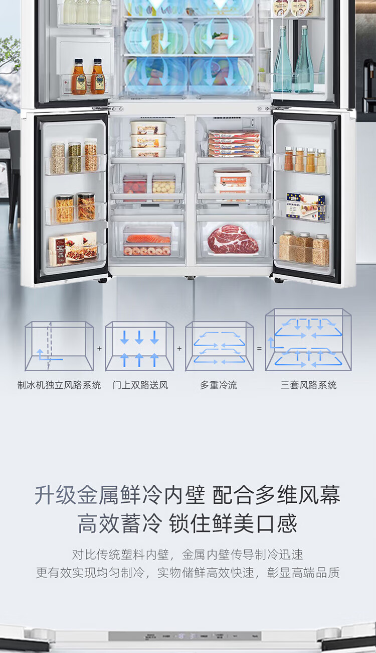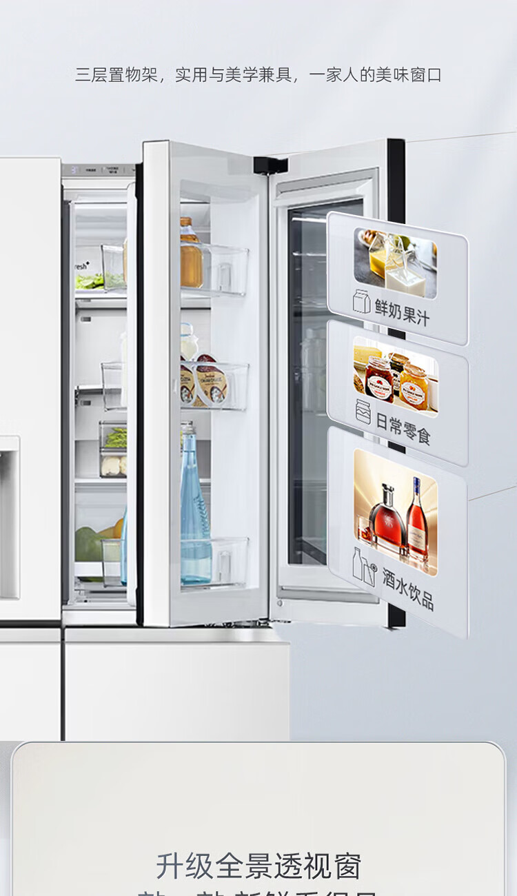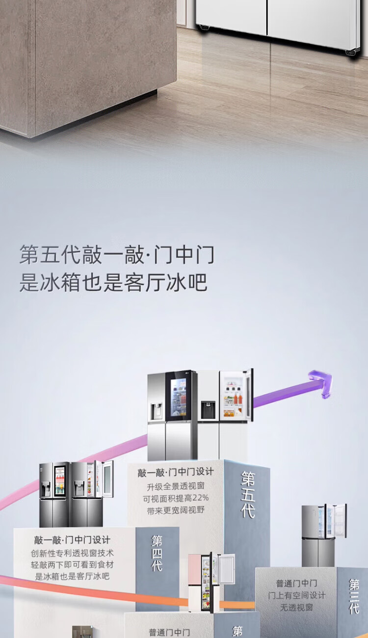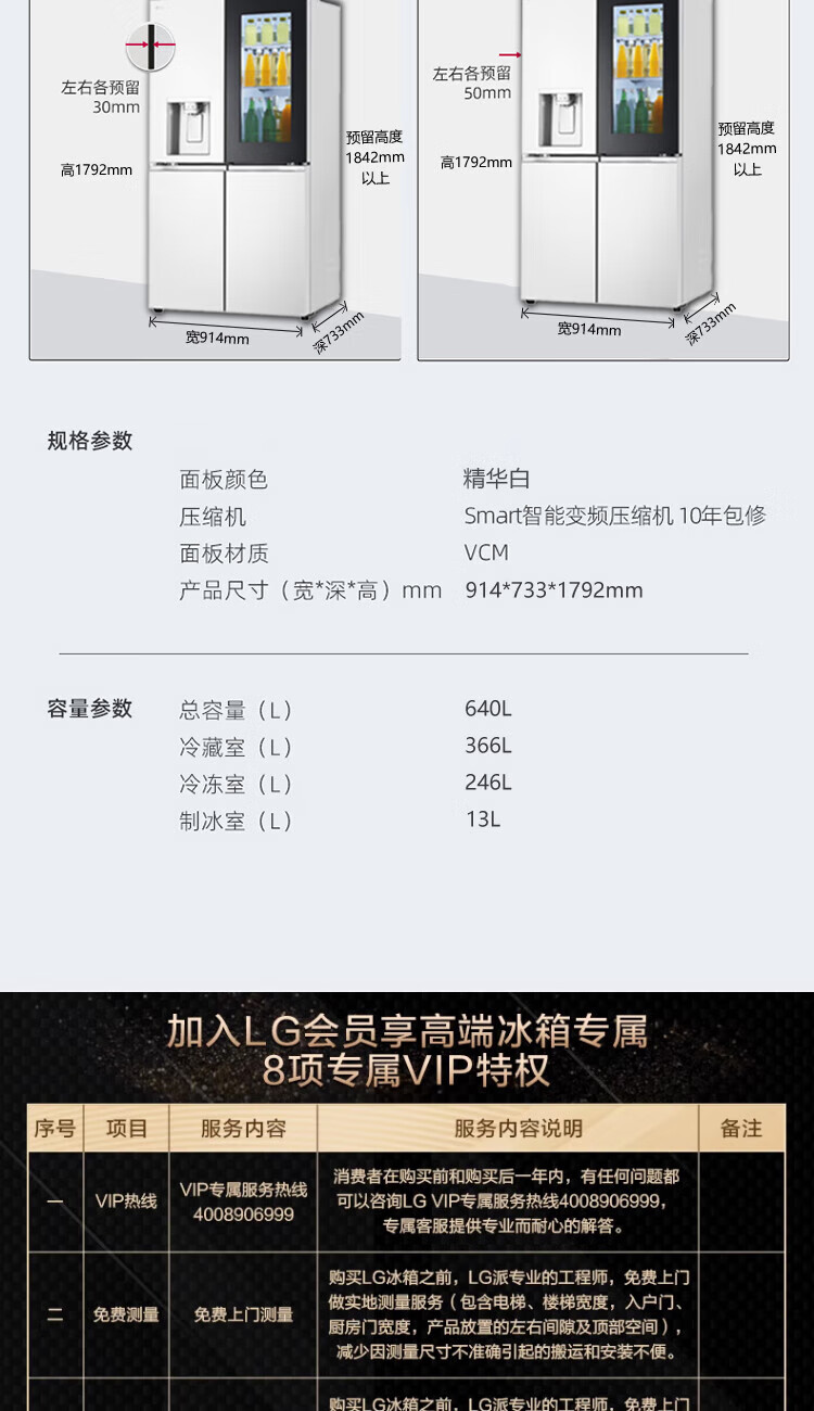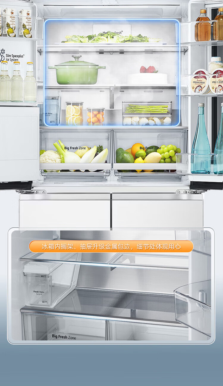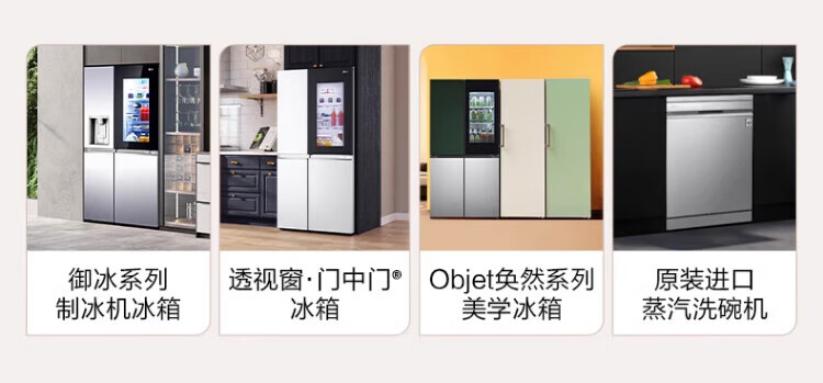 LG640 liter cross-door mid-door automatic ice maker see-through window refrigerator household large-capacity air-cooled frost-free energy-saving computer temperature control inverter compressor flat embedded 2024 knock-on ice machine white F664MEH95D
