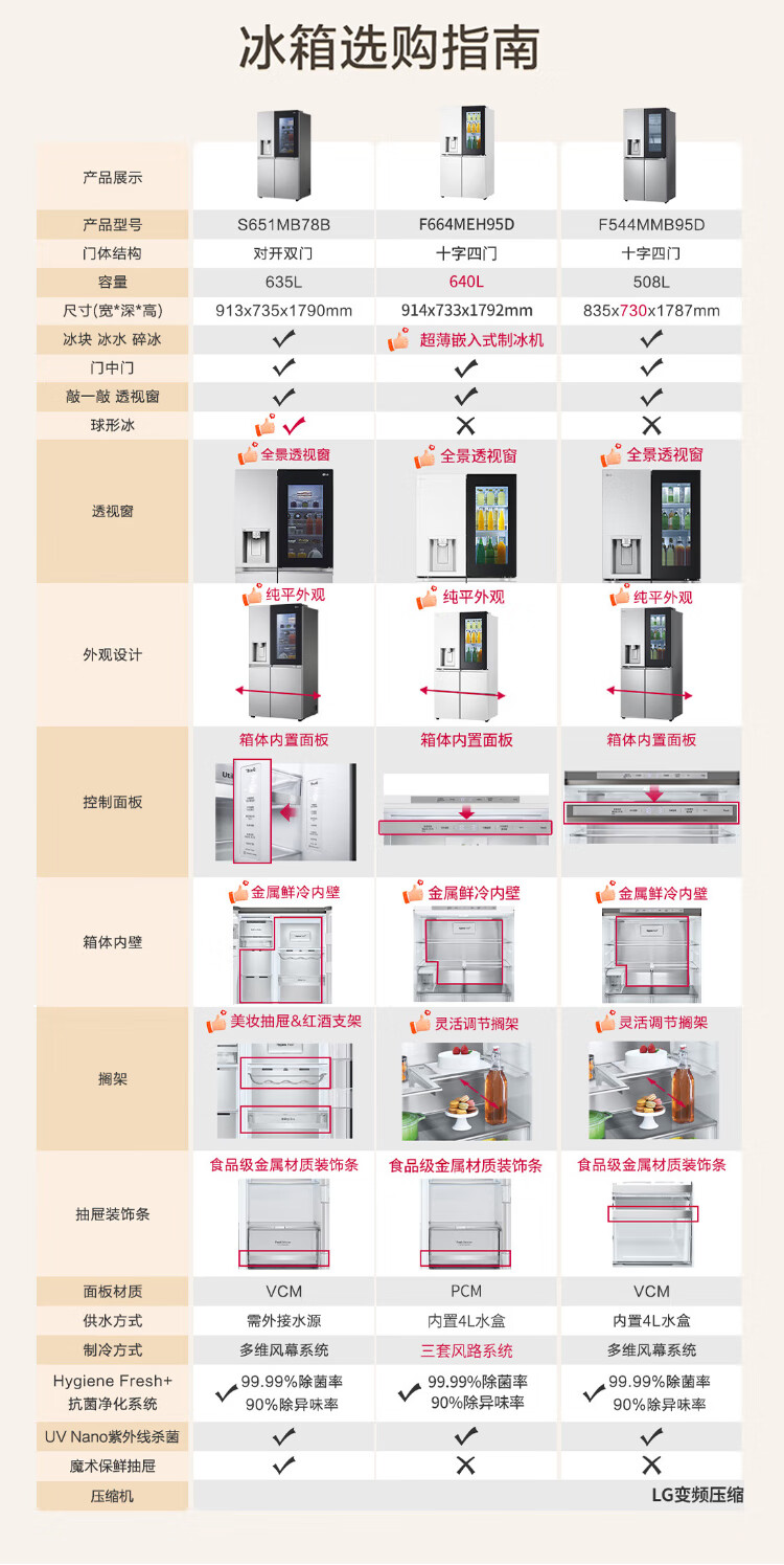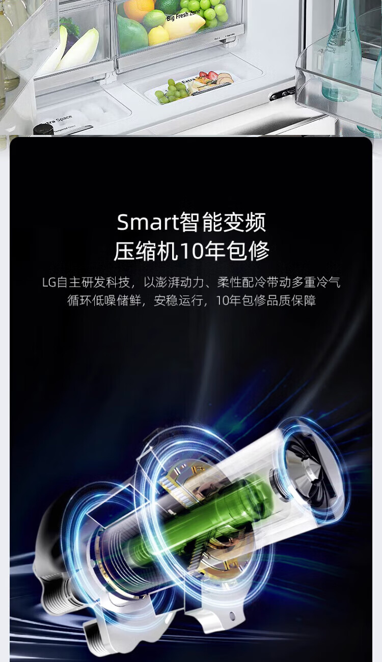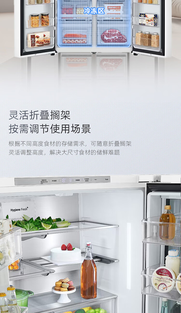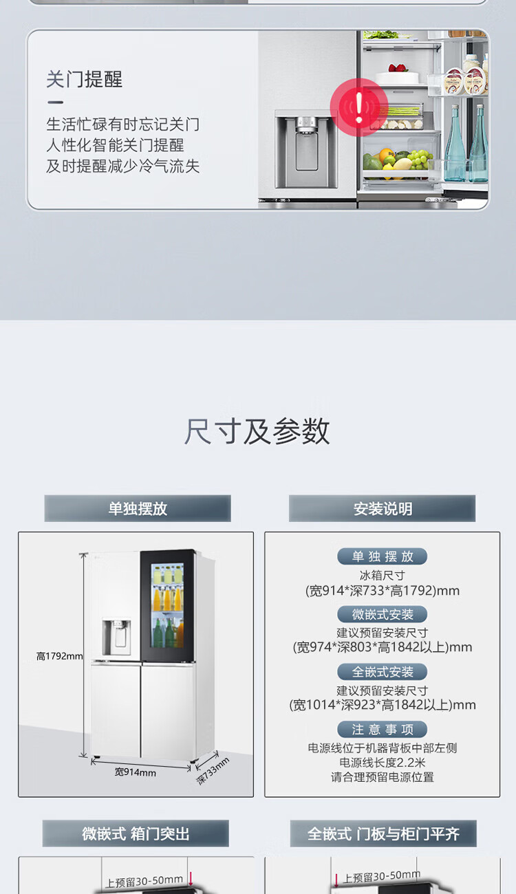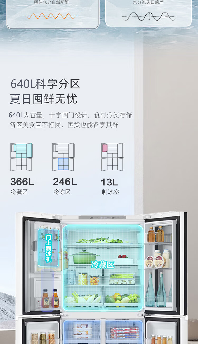 LG640 liter cross-door mid-door automatic ice maker see-through window refrigerator household large-capacity air-cooled frost-free energy-saving computer temperature control inverter compressor flat embedded 2024 knock-on ice machine white F664MEH95D