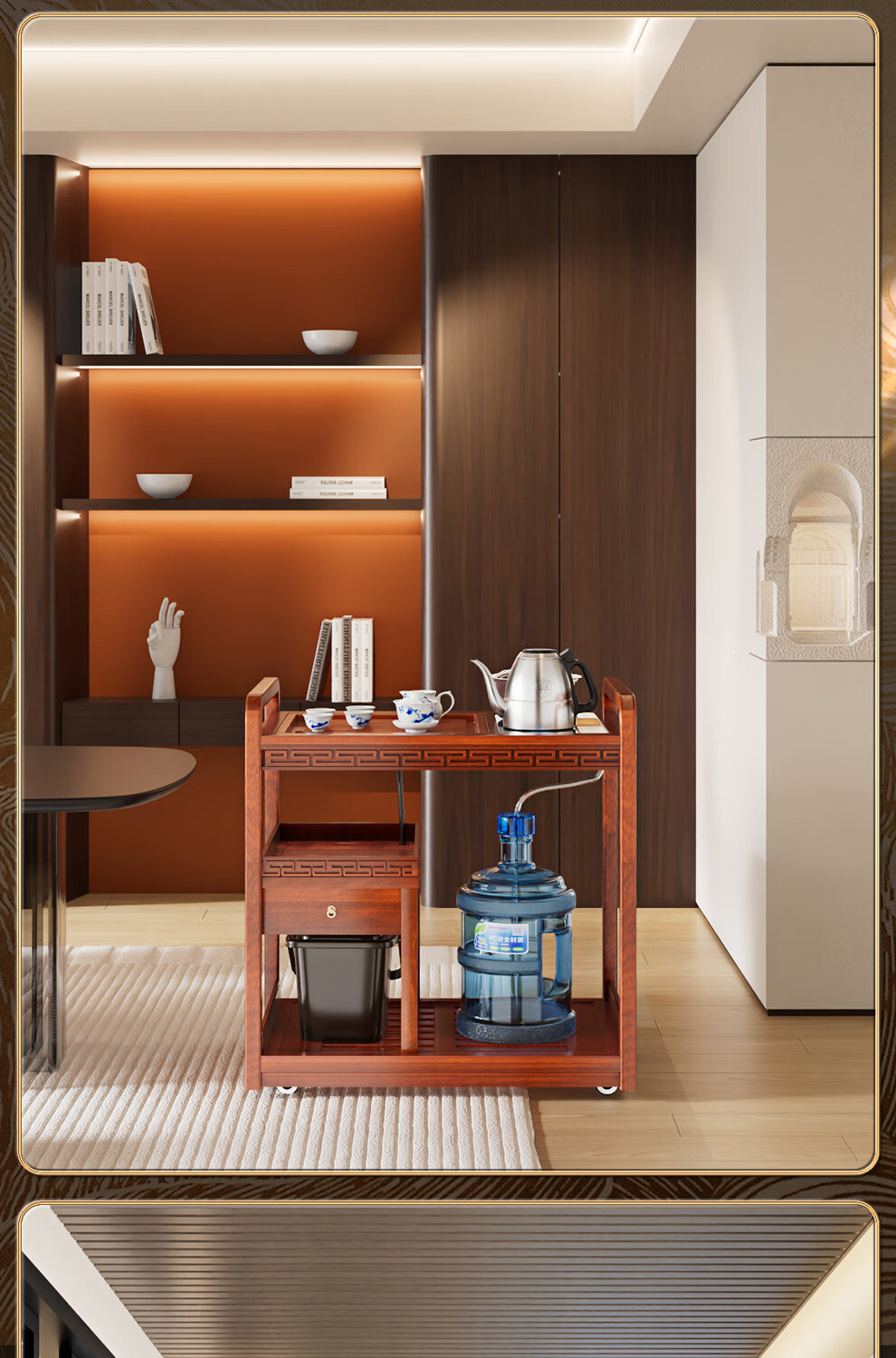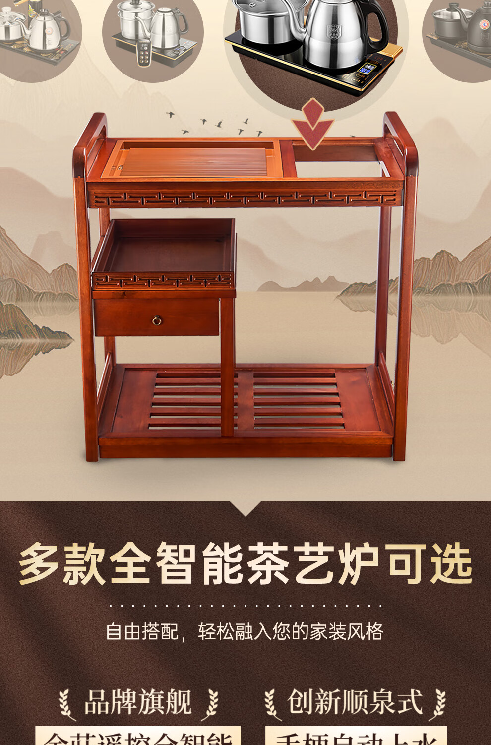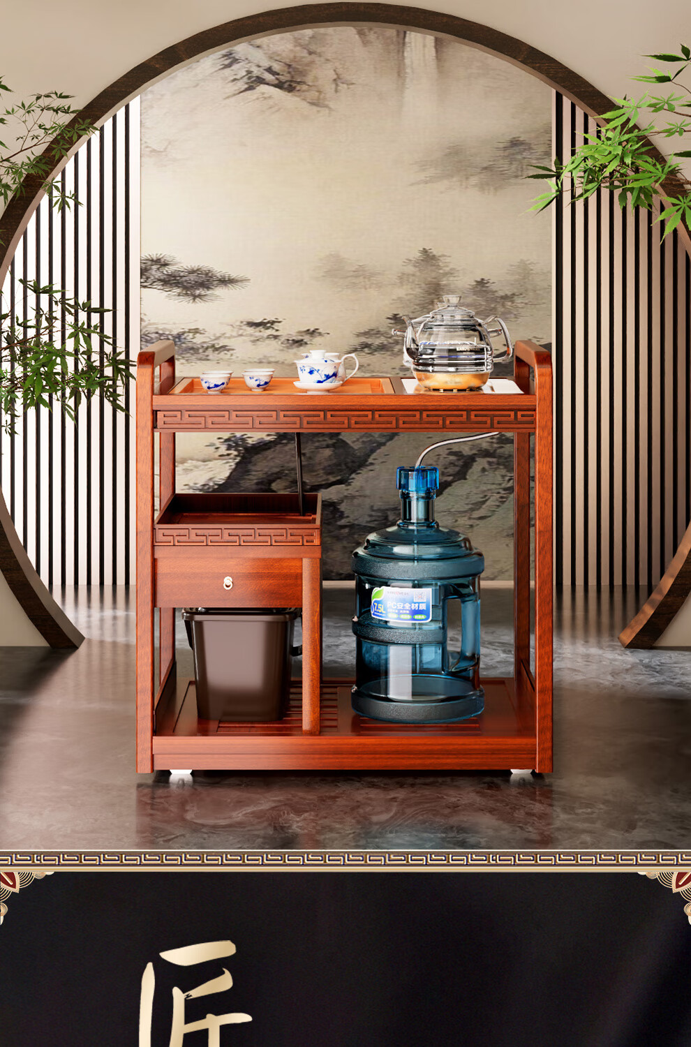 KAMJOVE solid wood mobile tea cart small tea table mobile tea table tea room boiling water tea cabinet fully automatic water supply tea cart household KW-6000 single tea cart