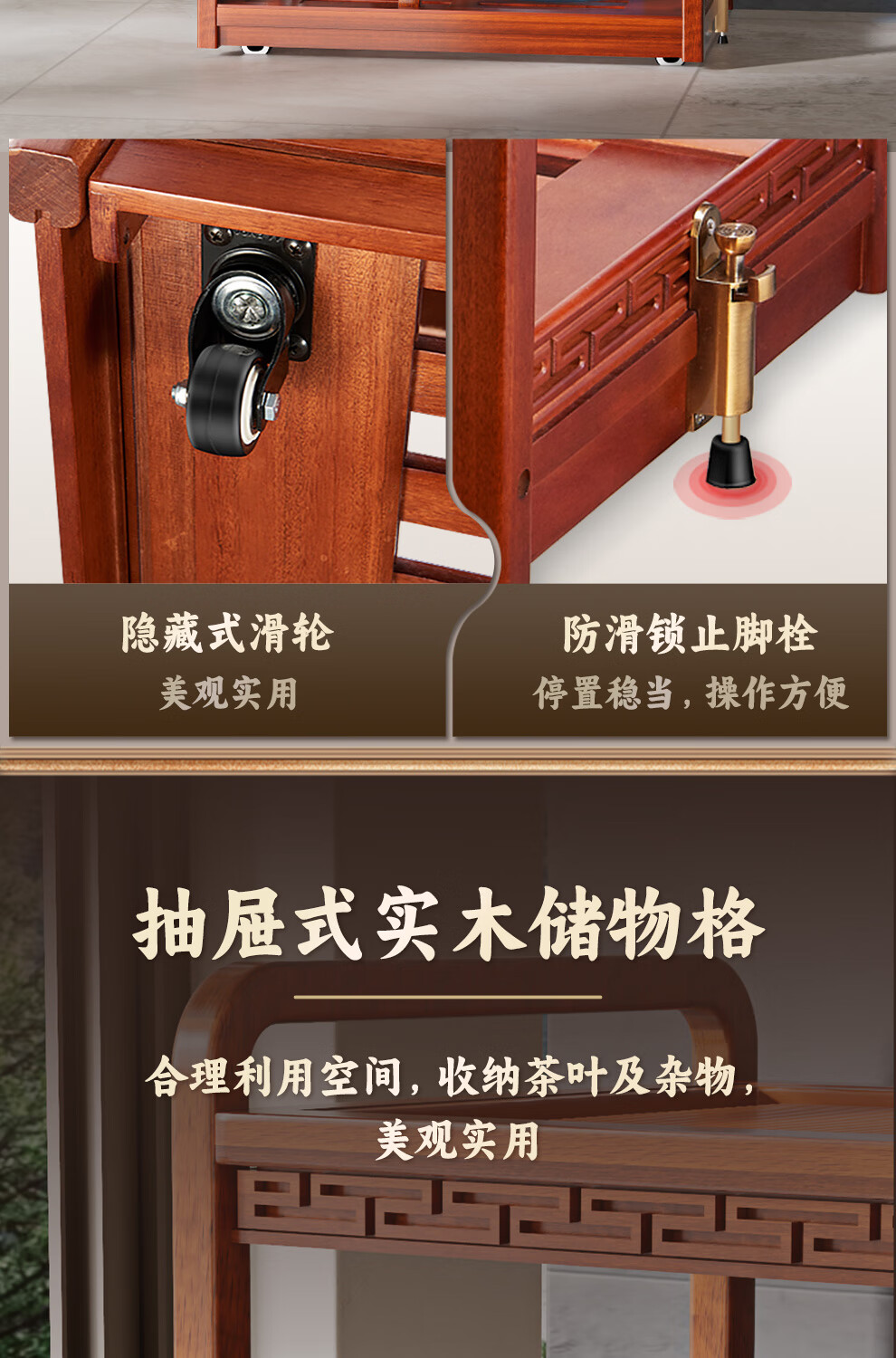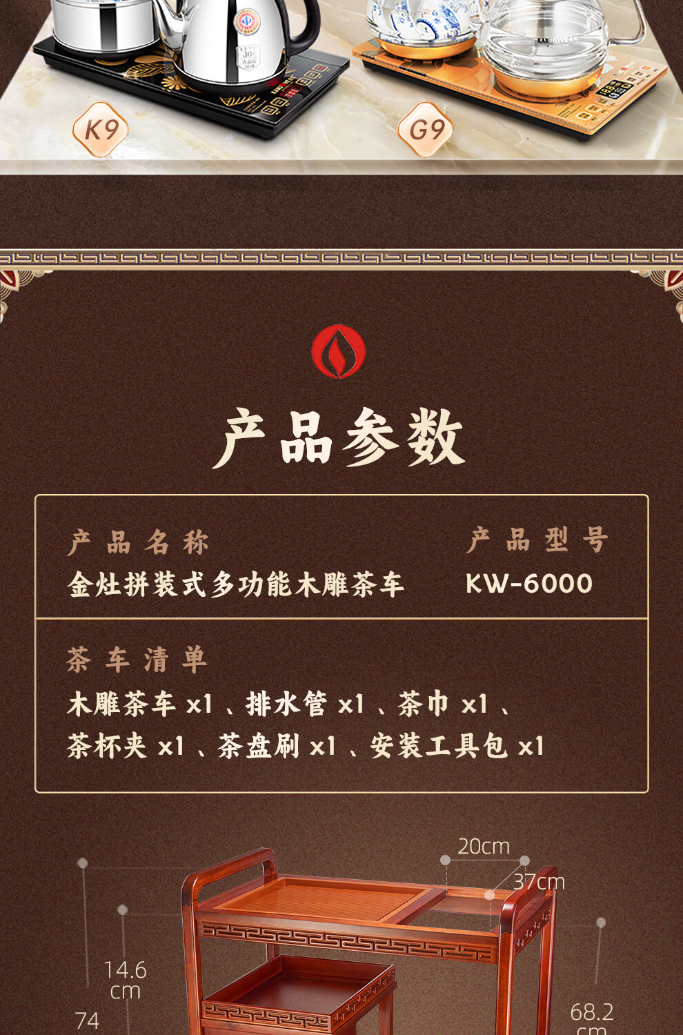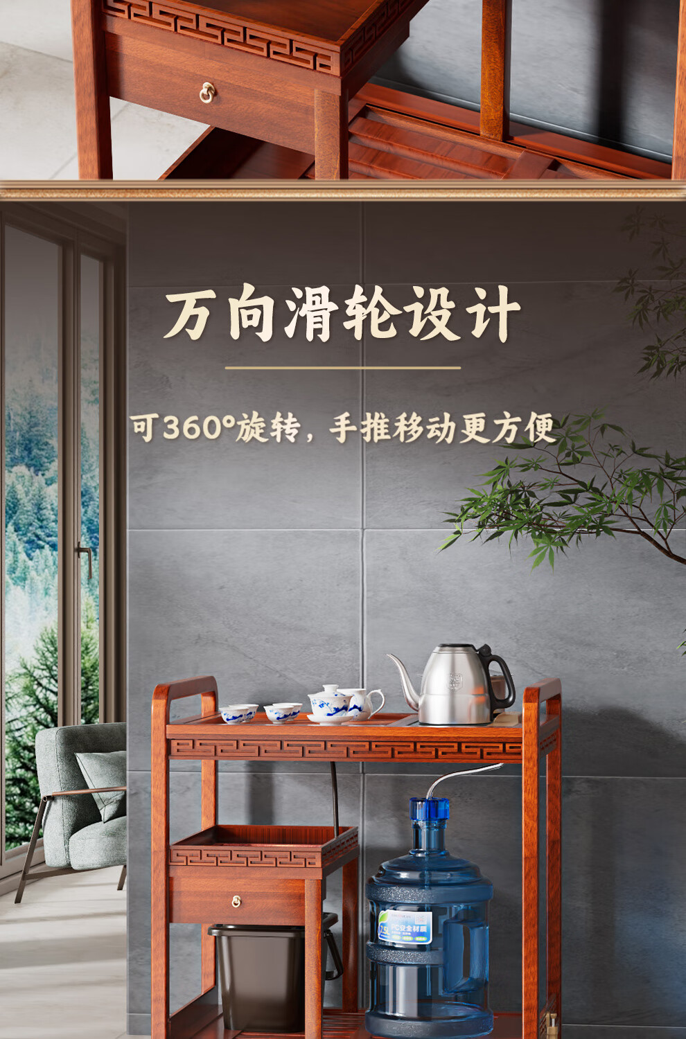 KAMJOVE solid wood mobile tea cart small tea table mobile tea table tea room boiling water tea cabinet fully automatic water supply tea cart household KW-6000 single tea cart