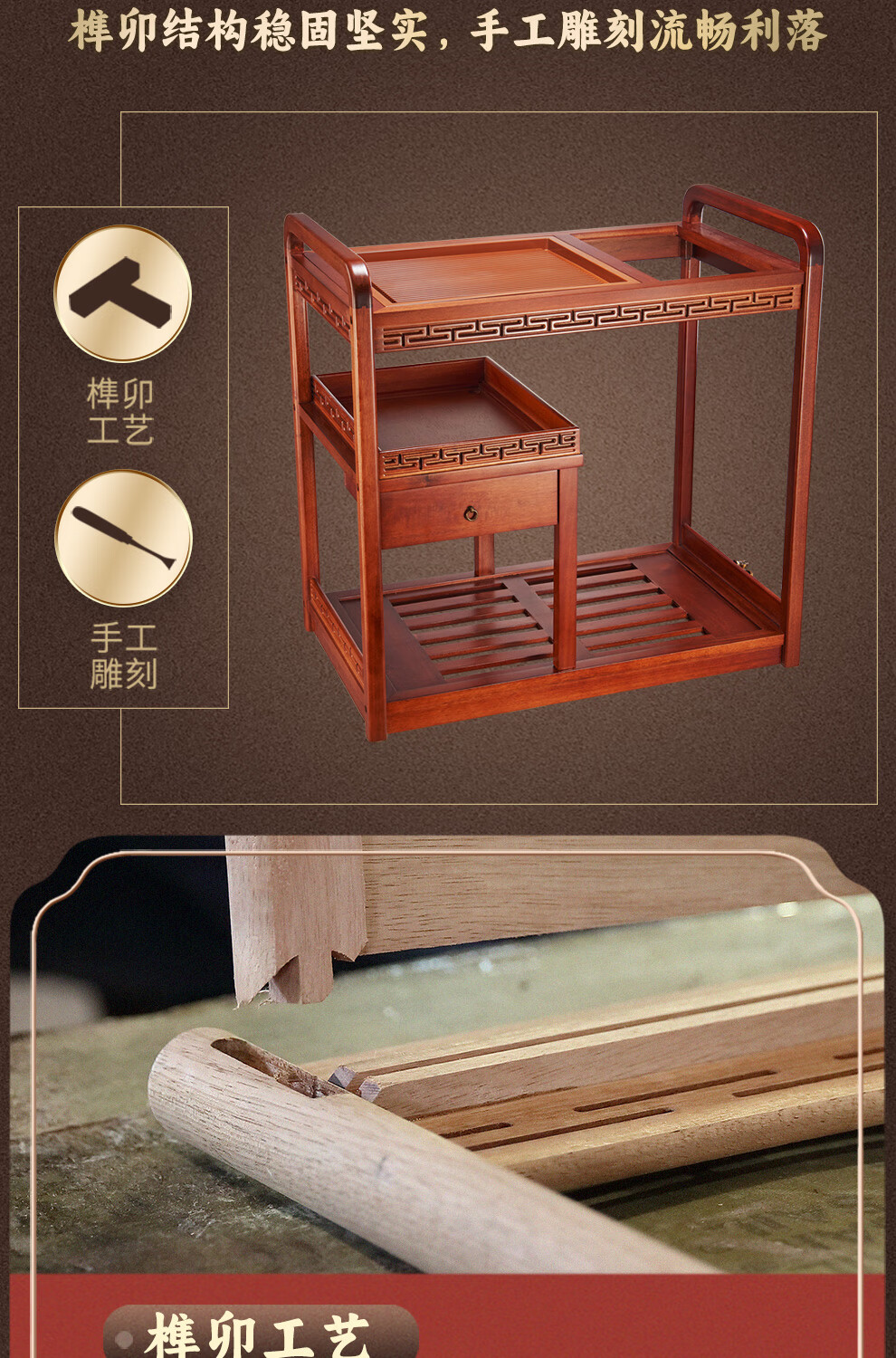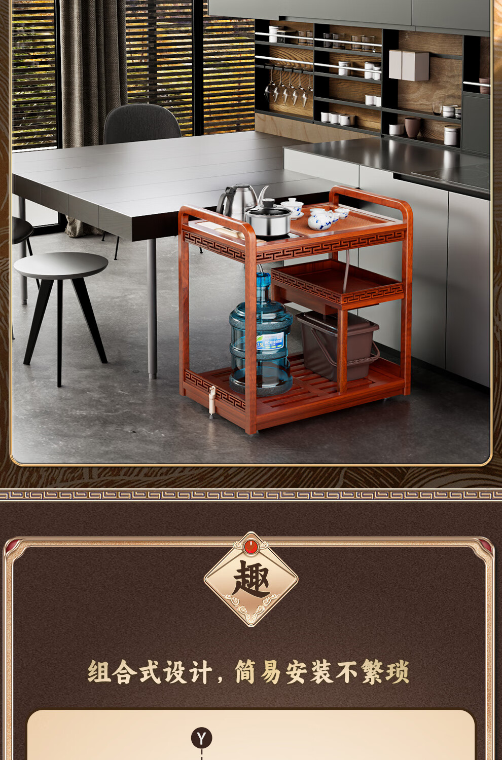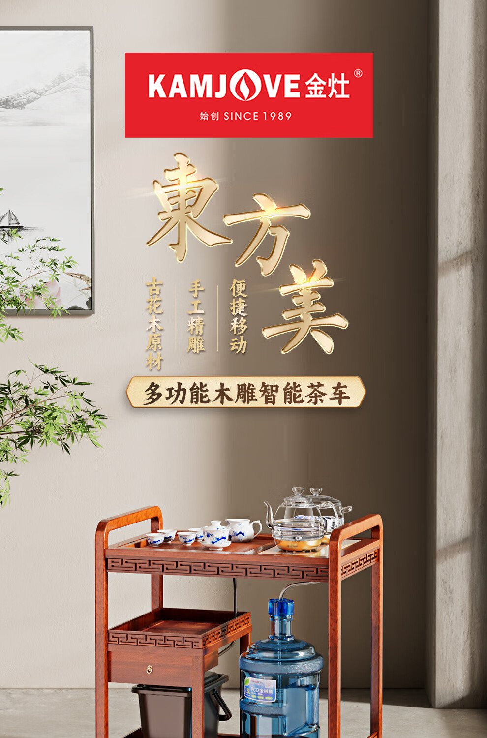 KAMJOVE multifunctional combined wood carving mobile tea cart tea tray complete tea set set fully automatic water supply electric kettle KW-6000 single tea cart wooden frame 1 piece