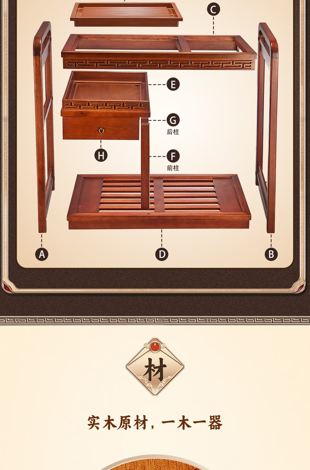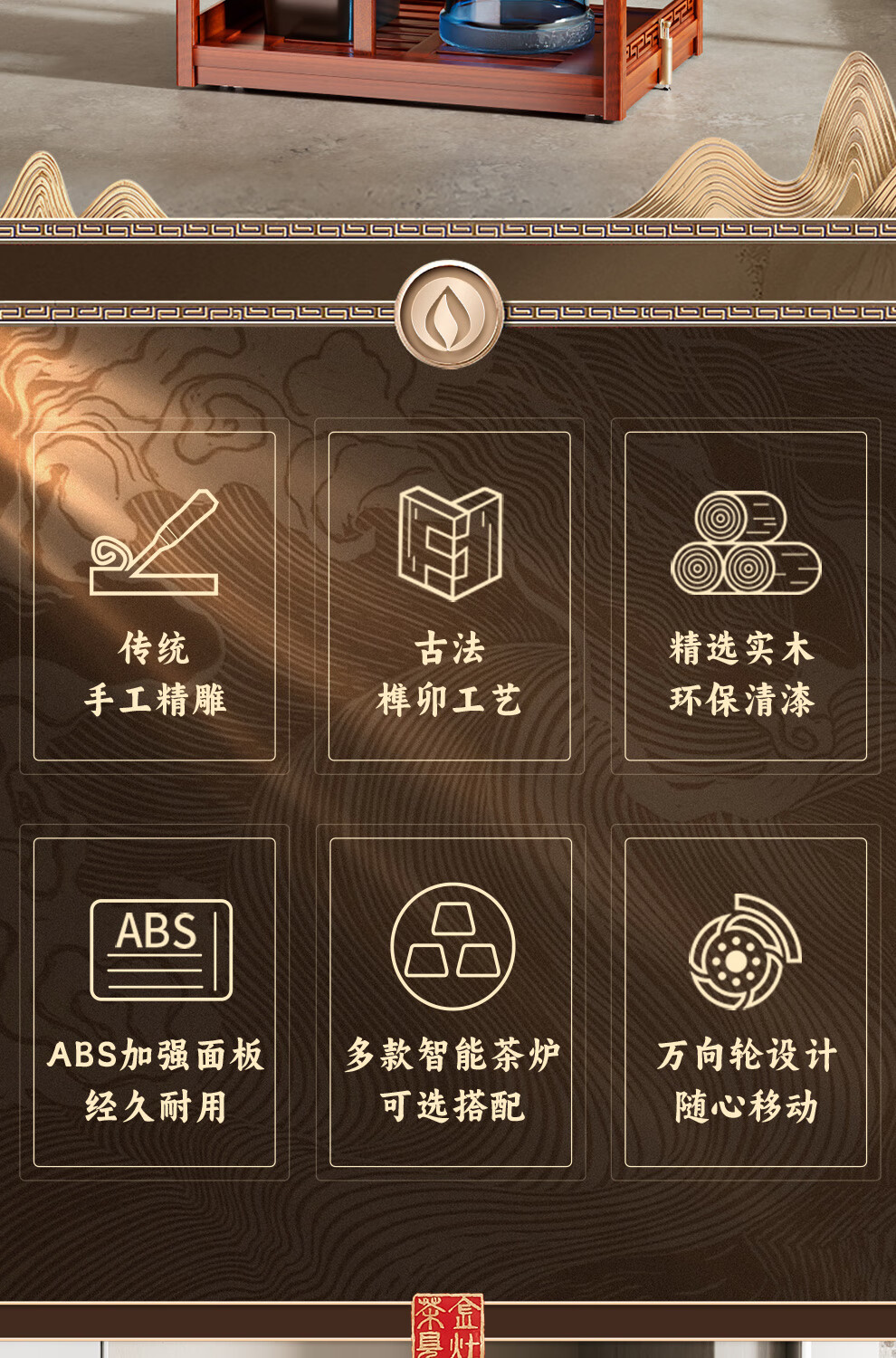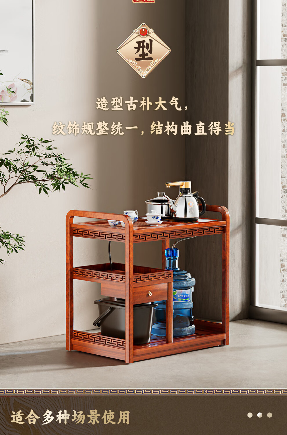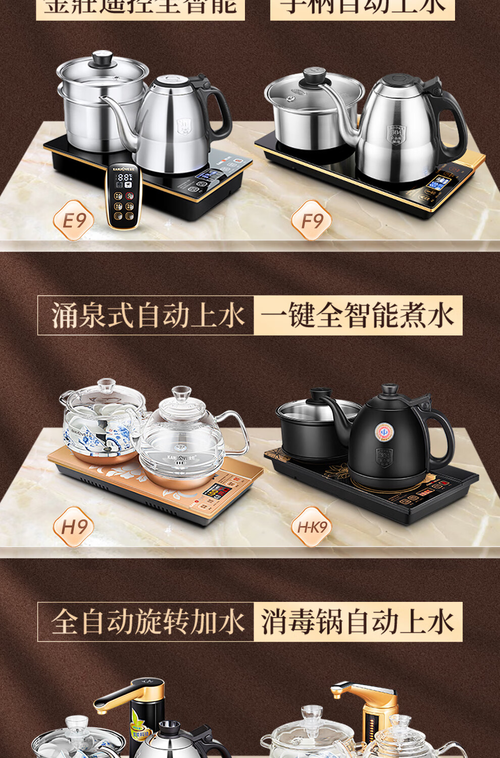 KAMJOVE multifunctional combined wood carving mobile tea cart tea tray complete tea set set fully automatic water supply electric kettle KW-6000 single tea cart wooden frame 1 piece