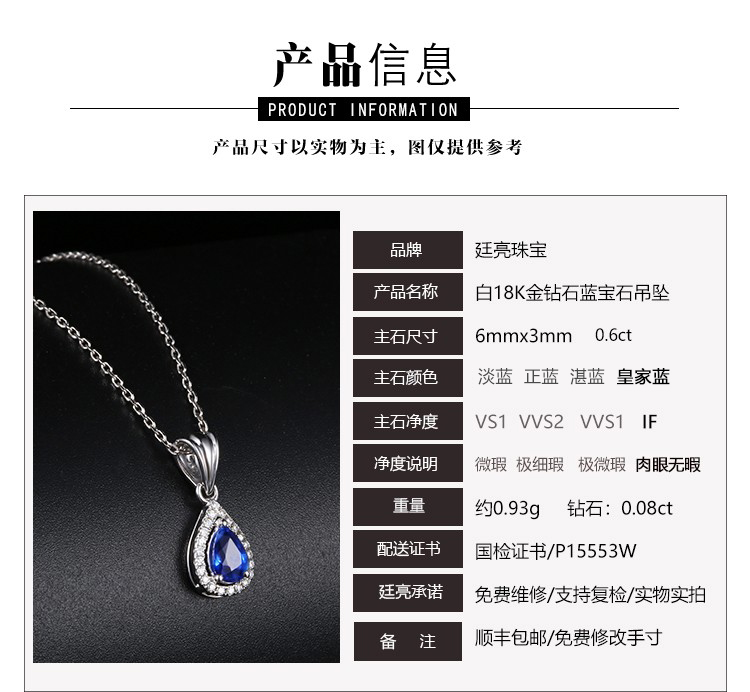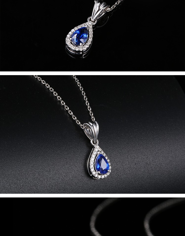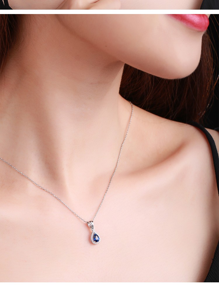 Tingliang 0.6 carat royal blue sapphire pendant 18K gold diamond colored gemstone necklace Chinese Valentine's Day single pendant