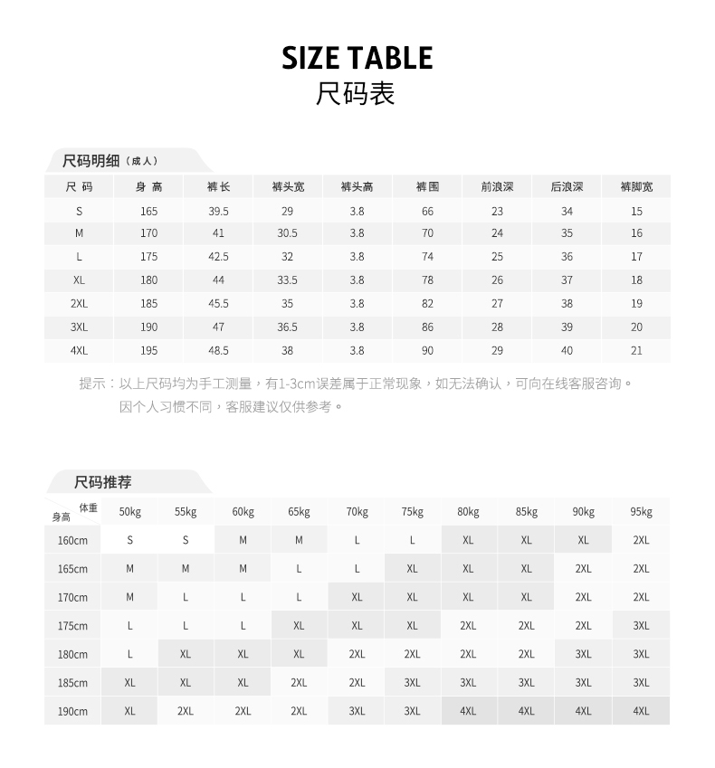 China (cm) 160-165/84-86 165-170 / 88-90 167-172 / 92-96 168-173 / 98-102 170-176 / 106-110