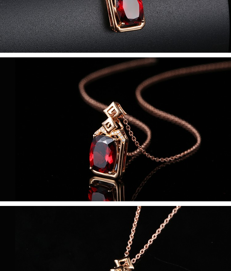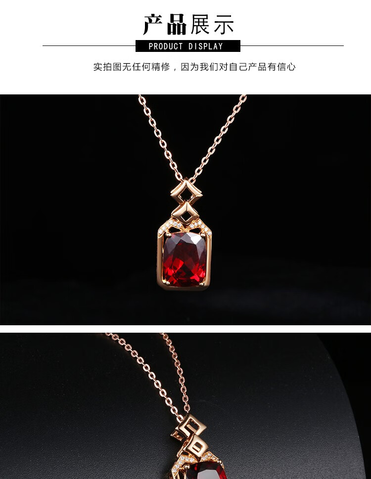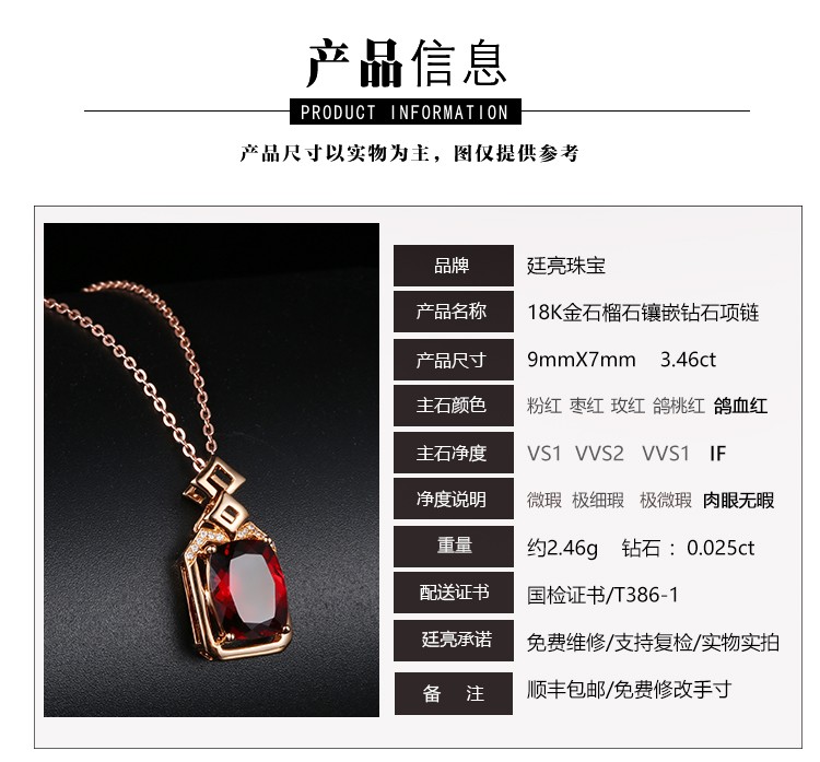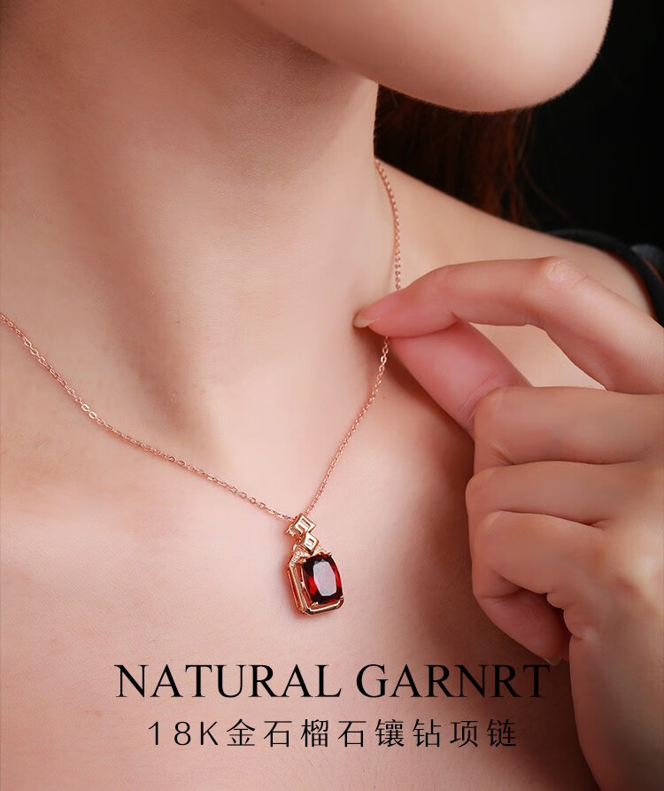 Tingliang 3.4 carat natural garnet pendant 18K rose gold colored treasure necklace for your lover. Ready stock with 18K gold necklace.