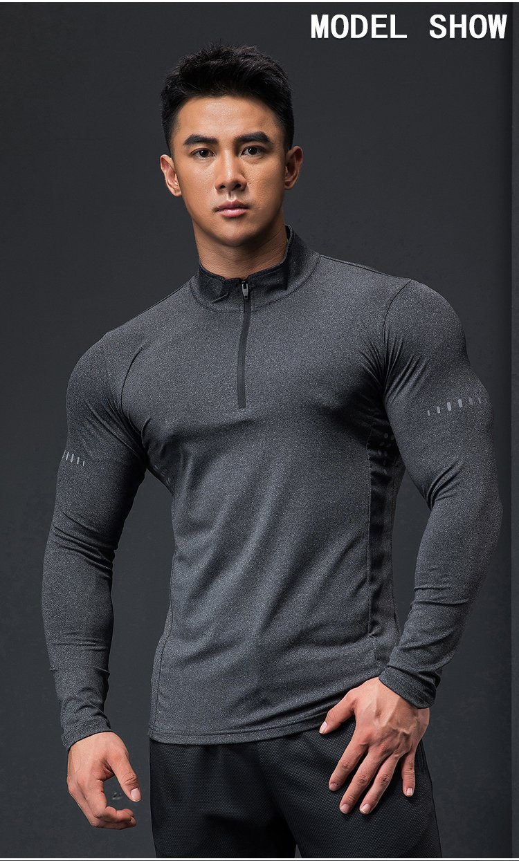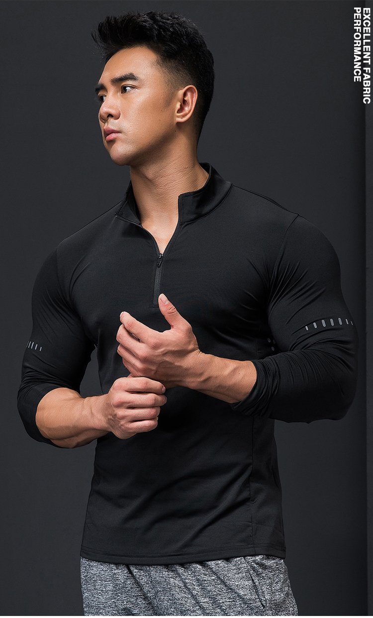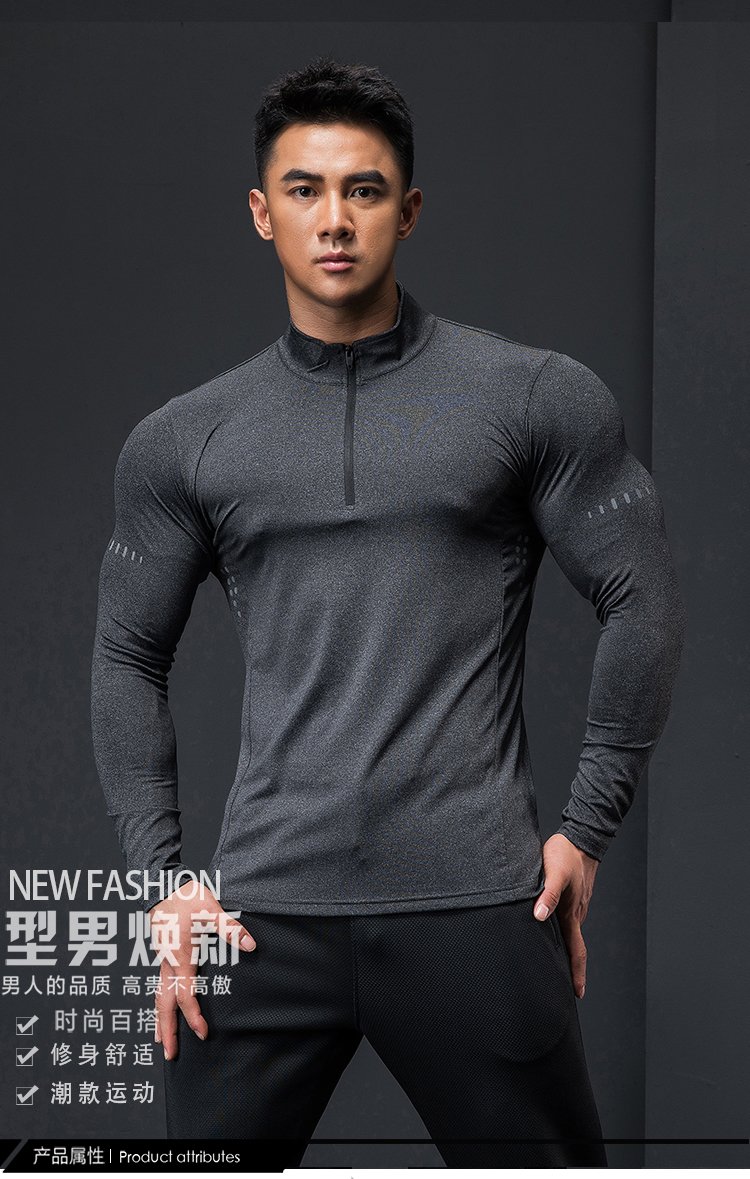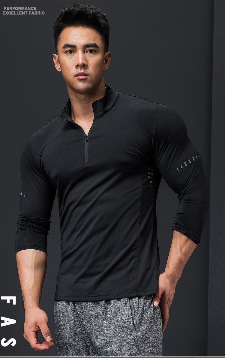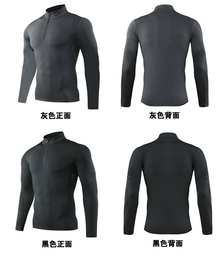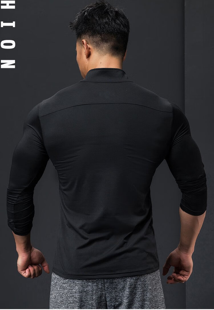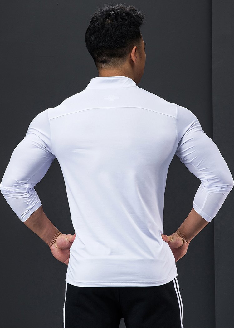 Lutie Dog Fitness Clothing Quick-drying Clothes Men's Autumn and Winter Long-Sleeved Stretch Breathable Sweat-Absorbent Sports and Casual T-Shirts Stand Collar Bottoming Fitness Clothes White XXL/180-185
