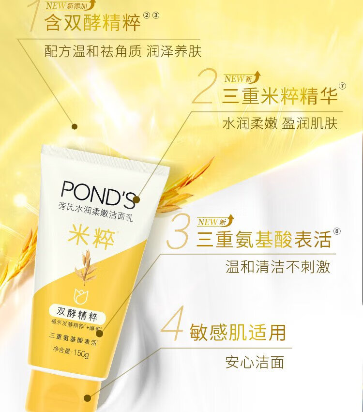 POND S Rice Moisturizing Facial Cleanser 150g Amino Acid Facial Cleanser for Men and Women Exfoliating