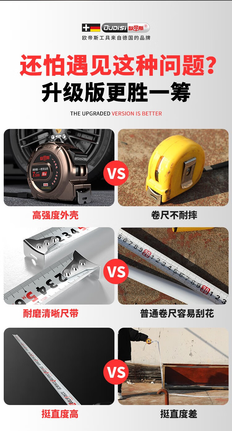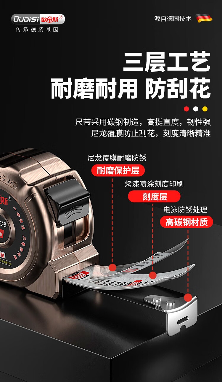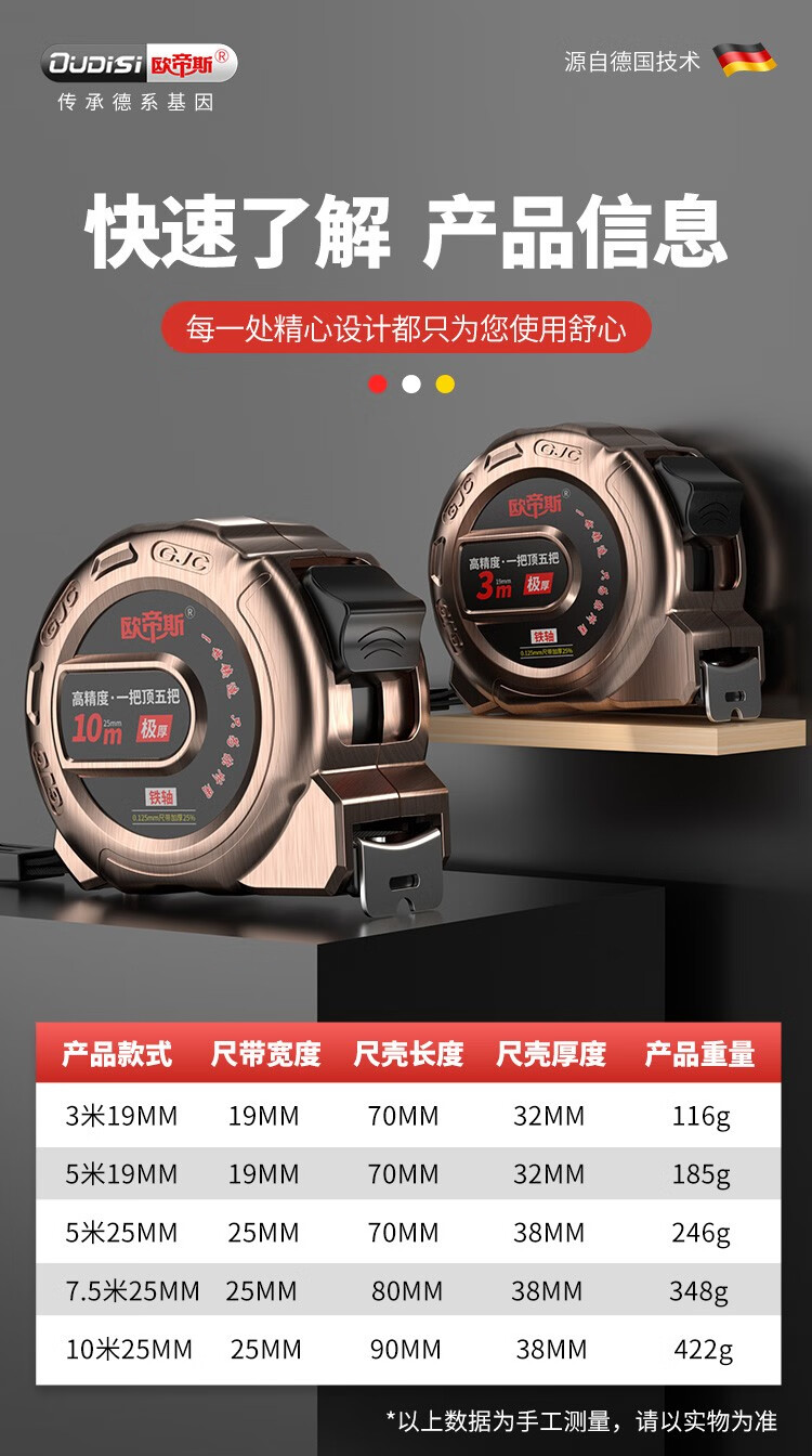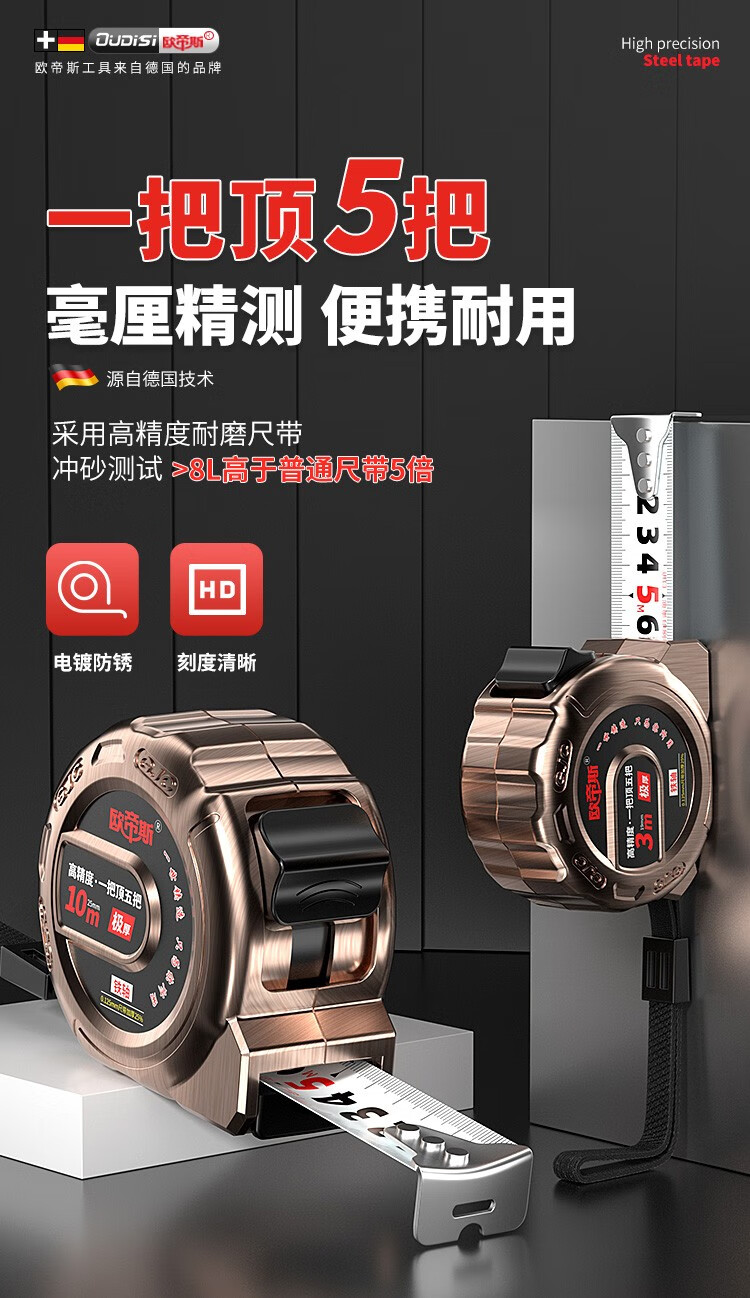 Otis tape measure 5m thickened steel tape high-precision household meter ruler woodworking ruler wear-resistant construction site measurement tool box ruler 5 meters 19mm wide wear-resistant matte ruler belt