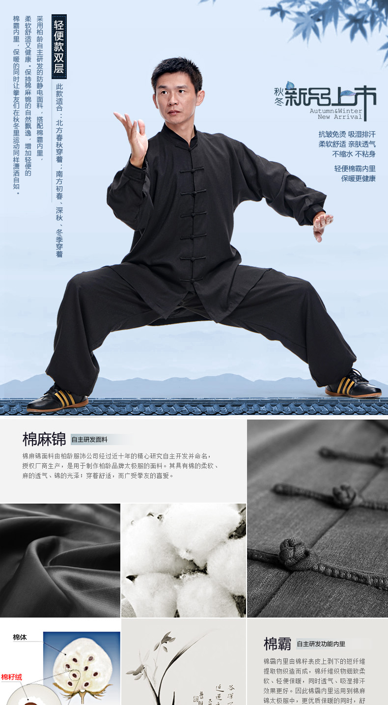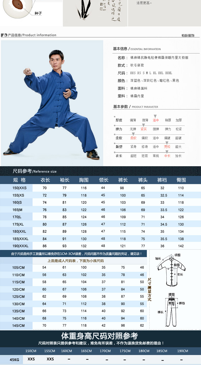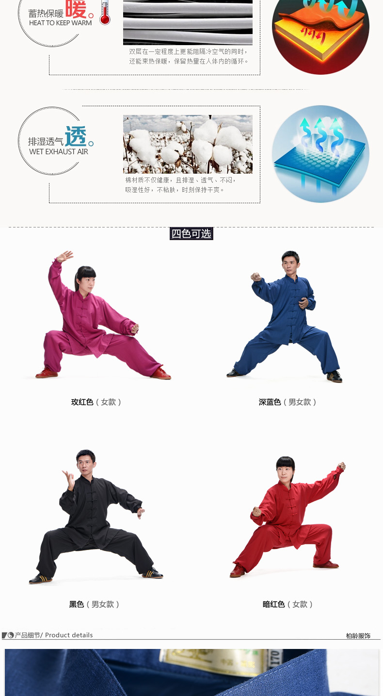 Bailing Tai Chi suit for men and women in winter, thickened cotton, linen and brocade, middle-aged and elderly practice suits, martial arts suits for men and women in autumn and winter, navy blue XXL