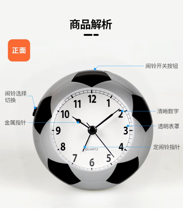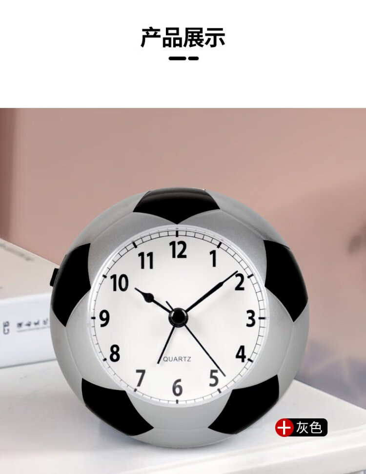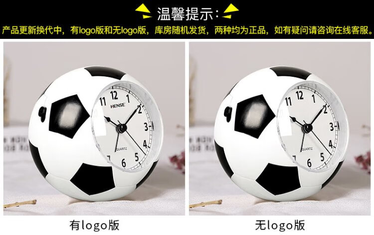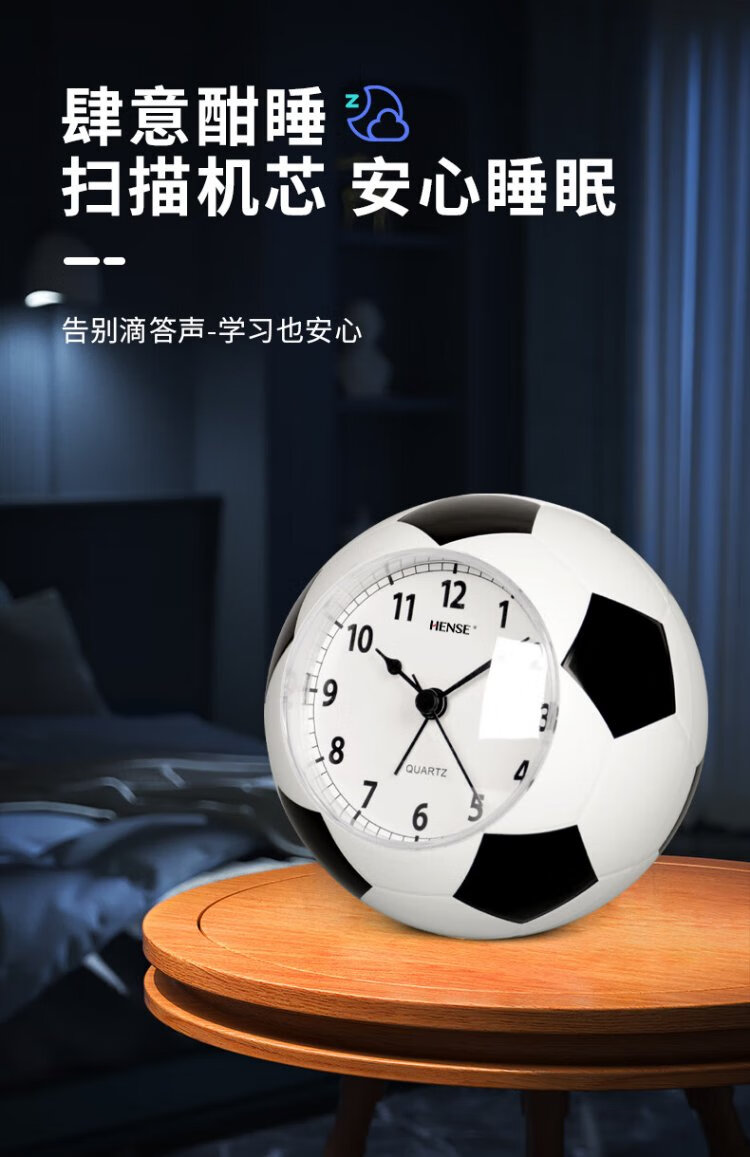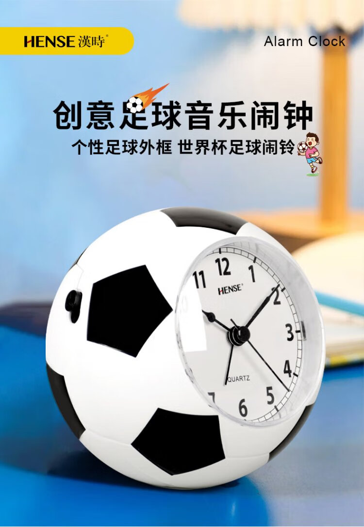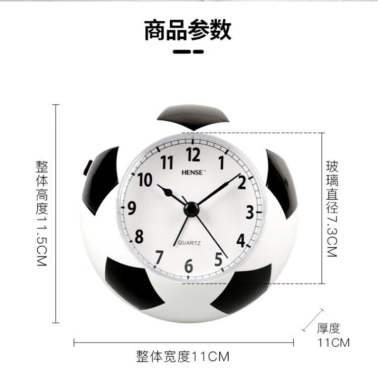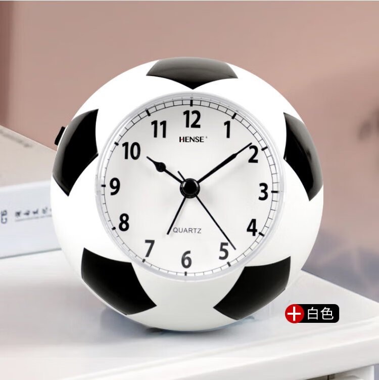 Hense creative football small alarm clock children's alarm watch boy student special wake-up artifact desktop clock HA09 black and white