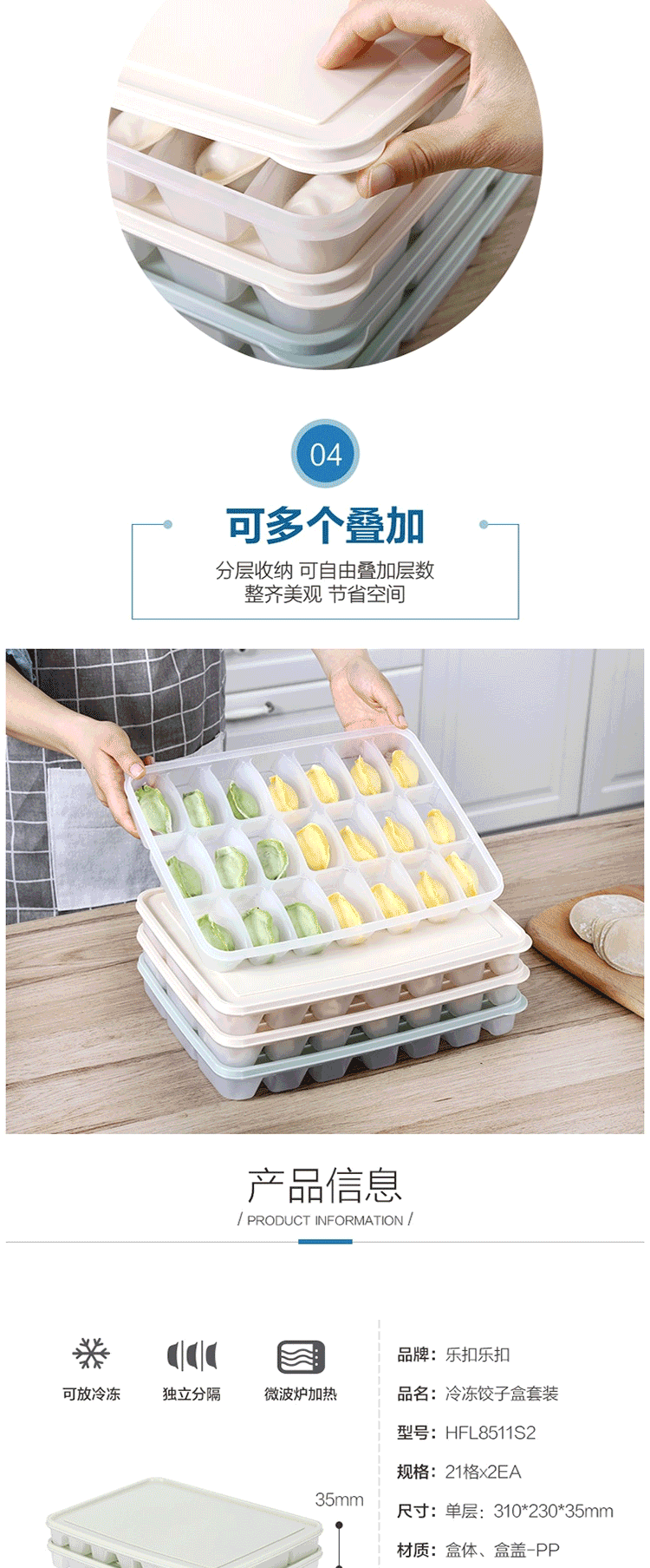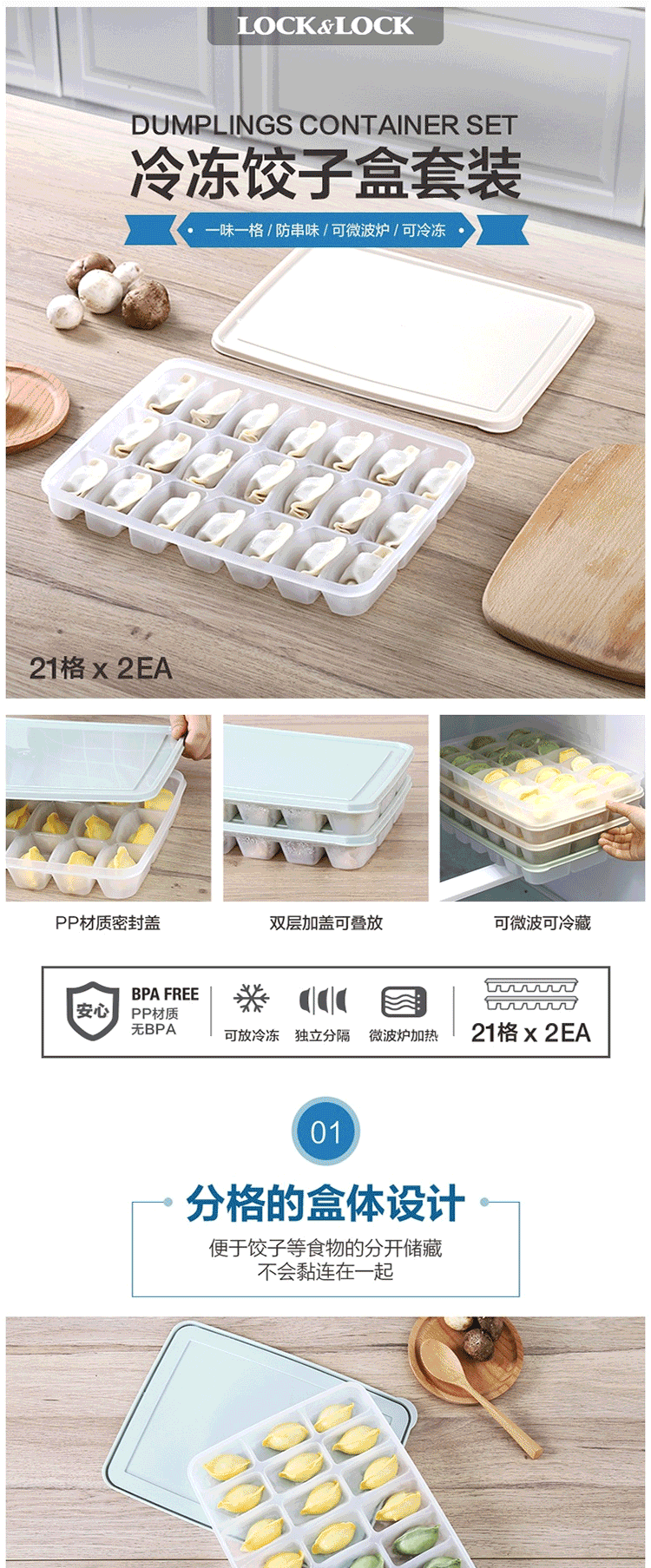 LOCK&LOCK Large Capacity Dumpling Freezer Box Storage Box Set Dumpling Box Dumpling Quick Frozen Box Wonton Box Mint Green