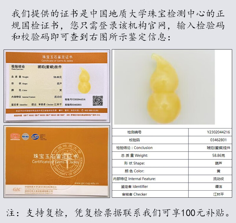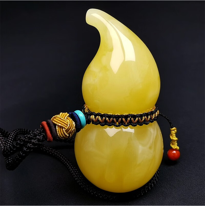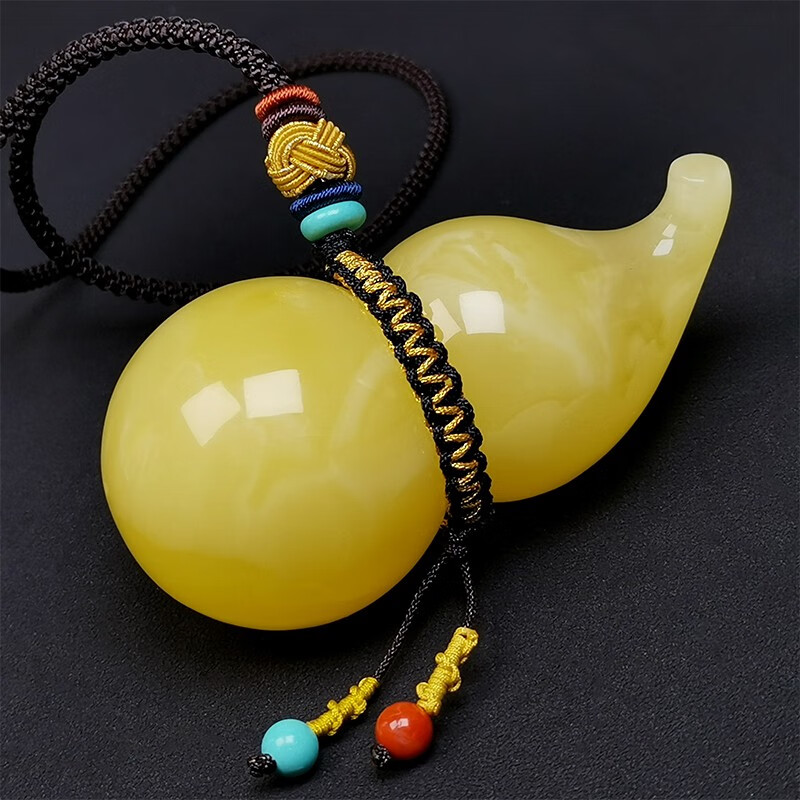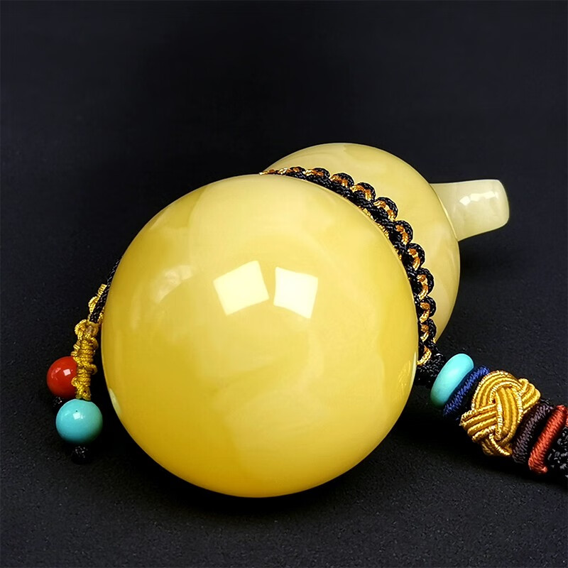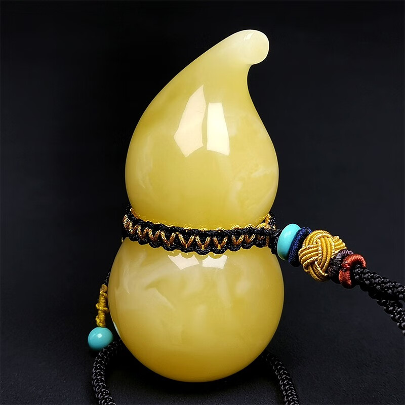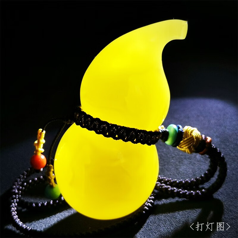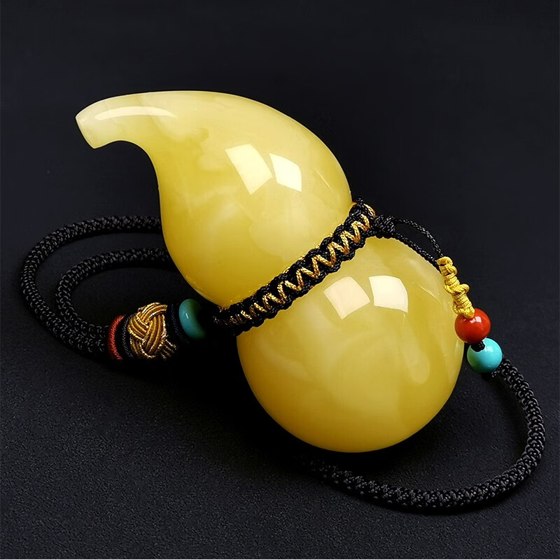 Amber school, one thing, one picture, one certificate, natural beeswax pendant, handle, gourd, amber pendant, chicken fat yellow, flawless, 81*39mm, 58.86g