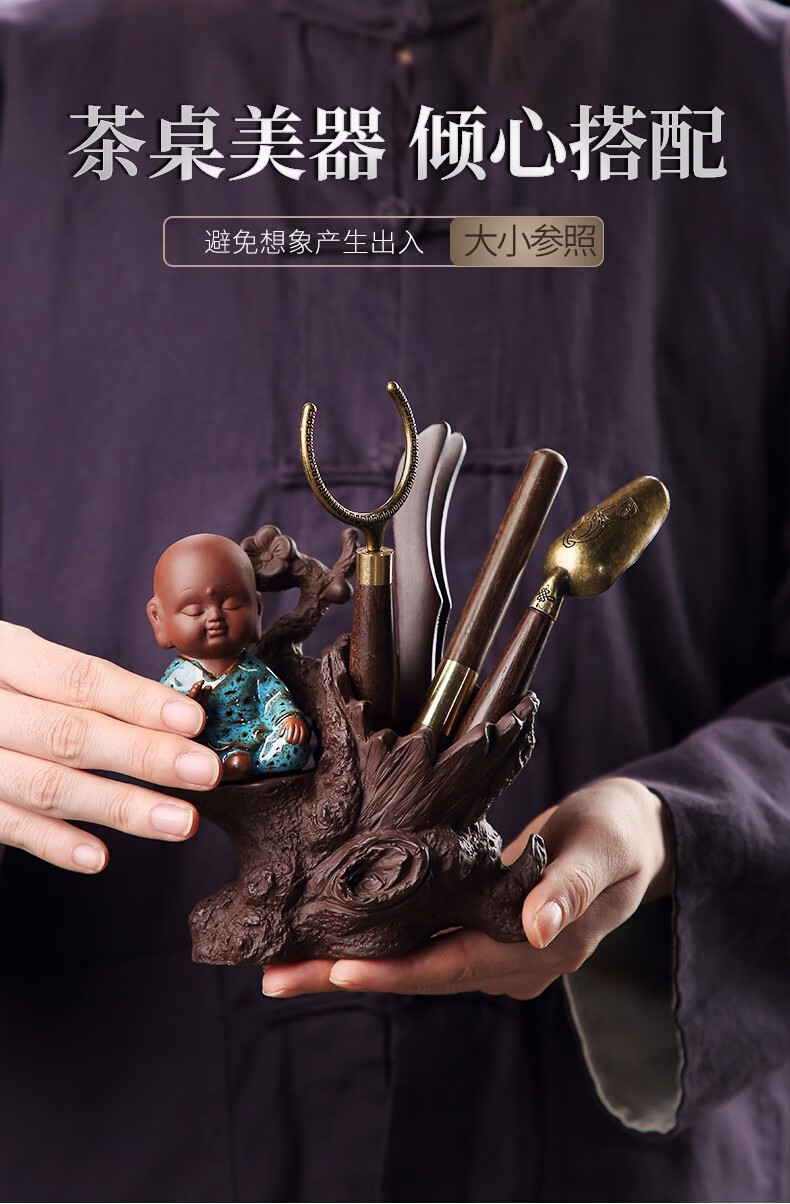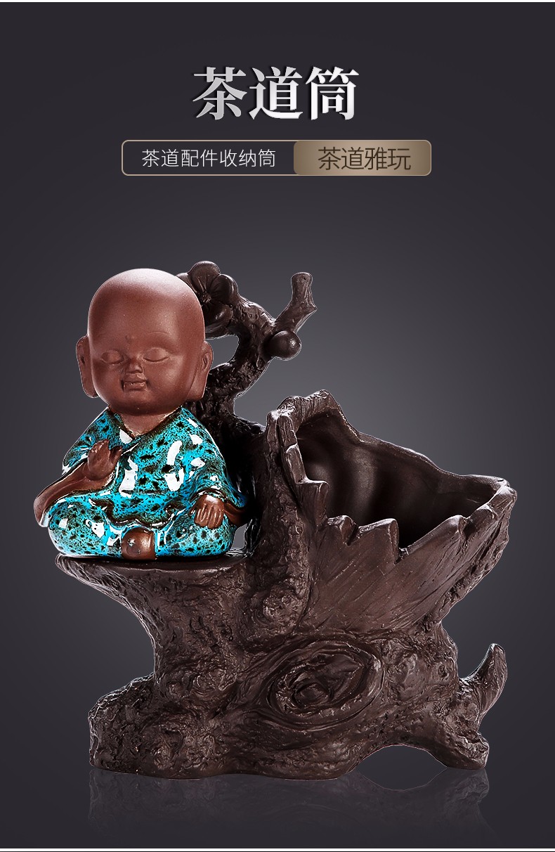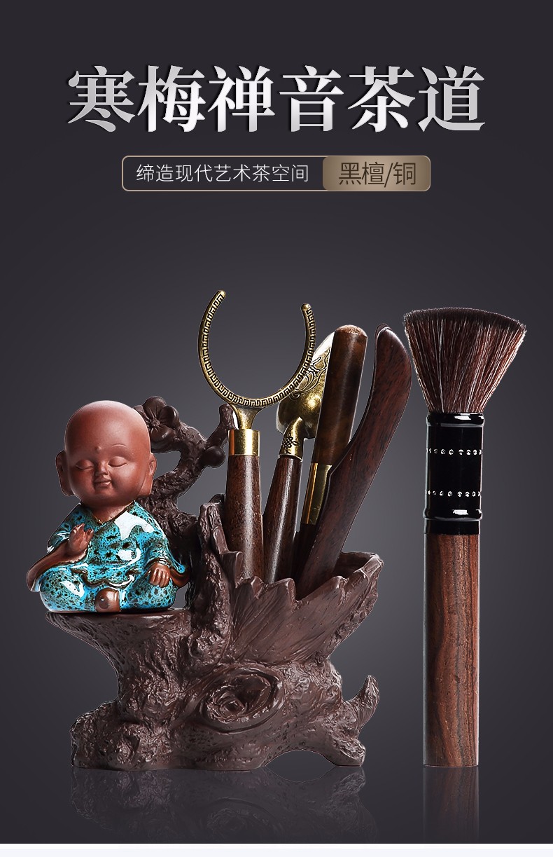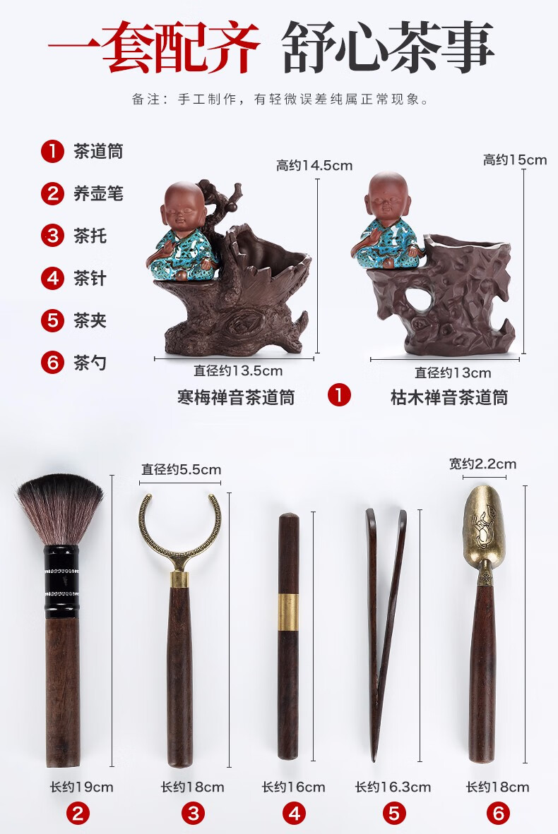 Tang Feng Six Gentlemen Tea Ceremony Accessories Household Pot Pen Tea Needle Zen Little Monk Ornaments Ceramic Tea Cistern Hanmei Zen Tea Cistern + Pinsheng Accessories