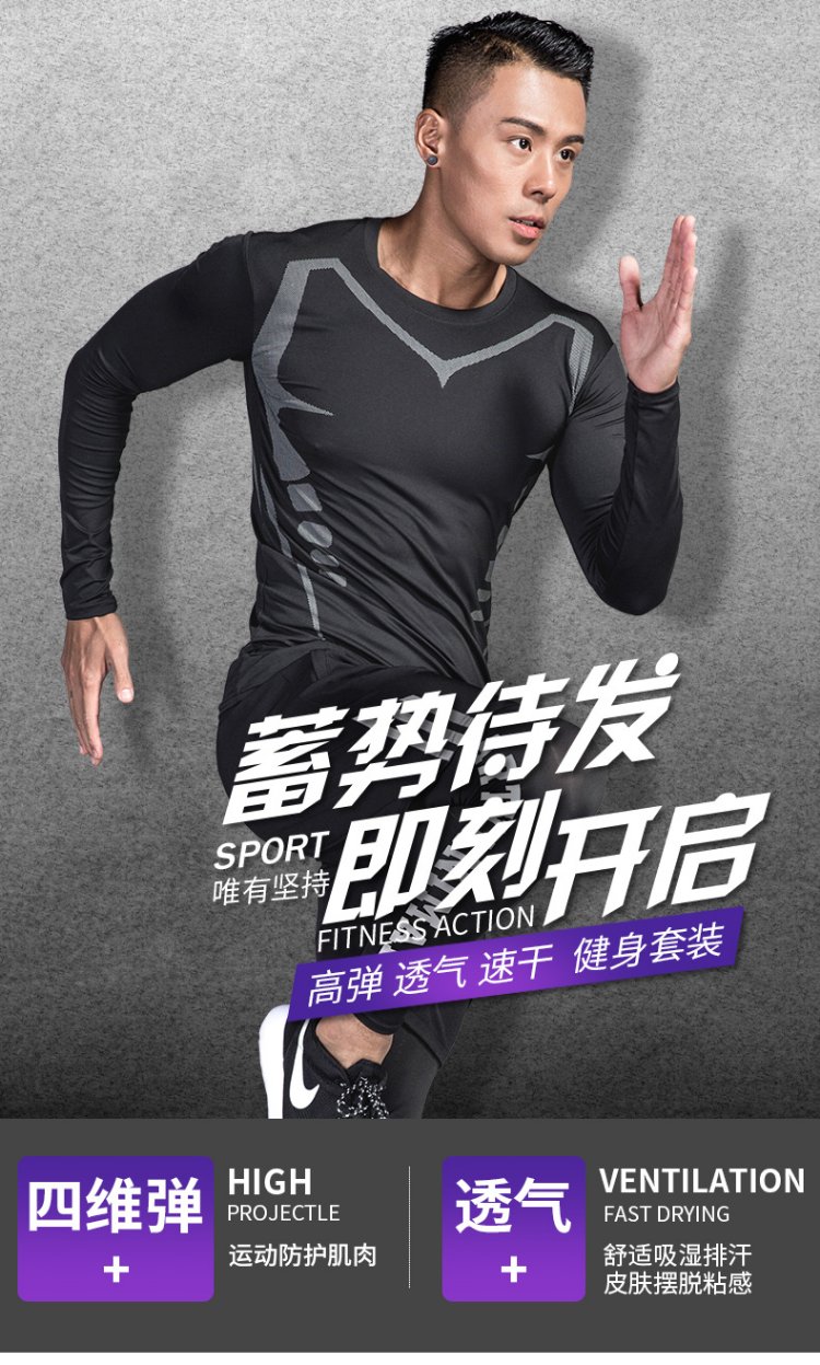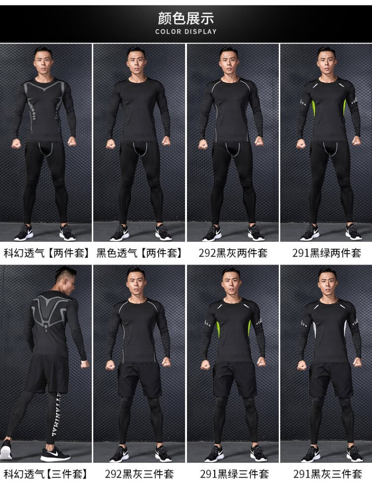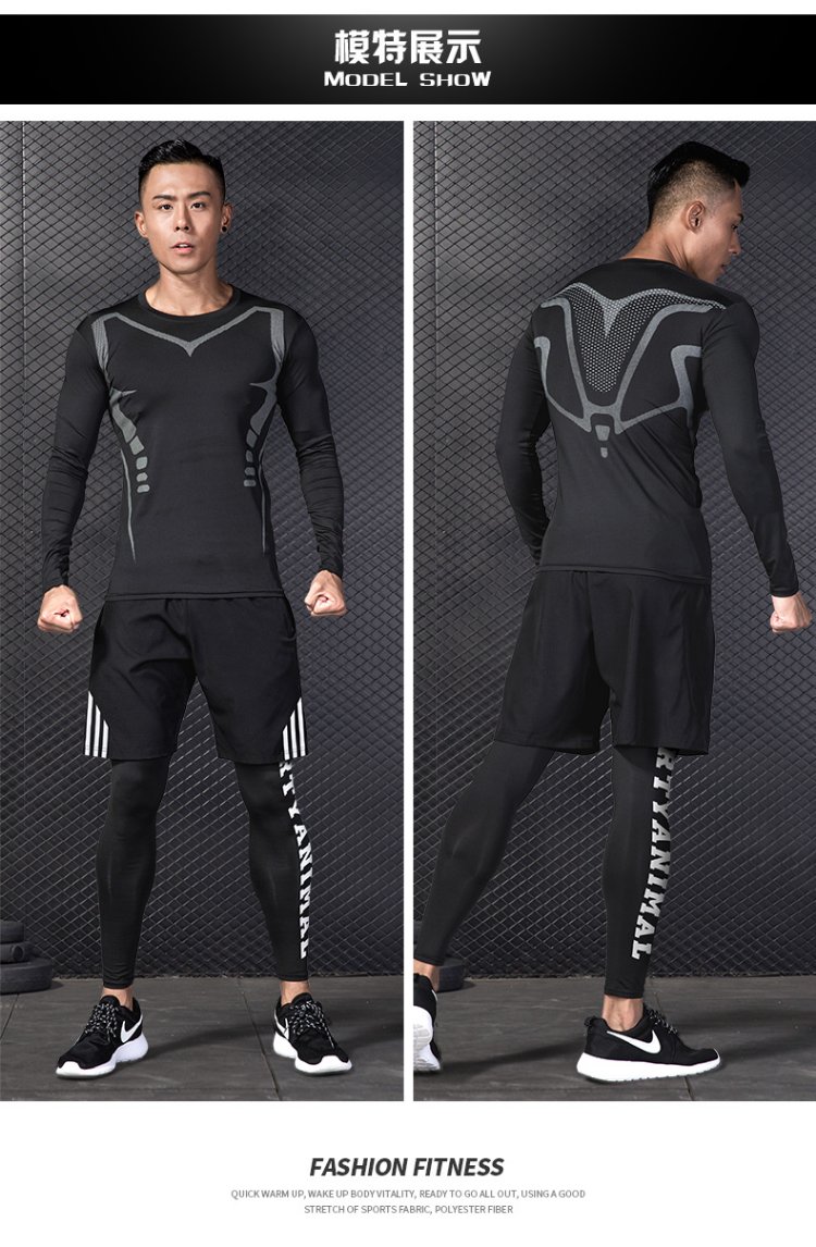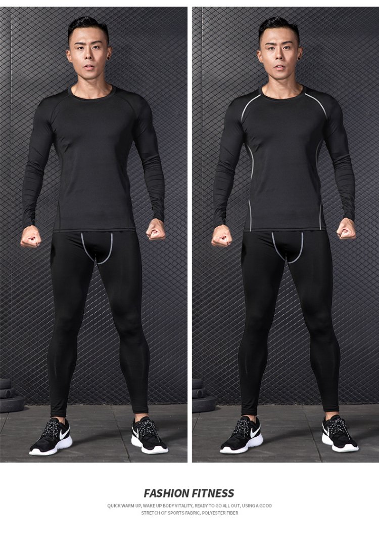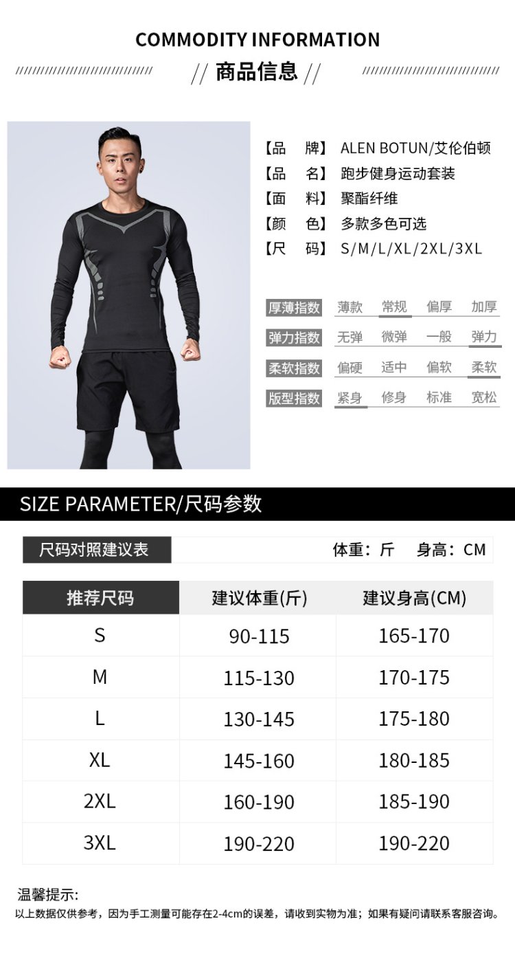Allen Burton fitness clothing men's quick-drying clothing high-elastic sports tights bottoming running basketball spring football training compression pants three-piece set - autumn and winter plus velvet L (130-145) Jin Jin equals 0.5 kg
