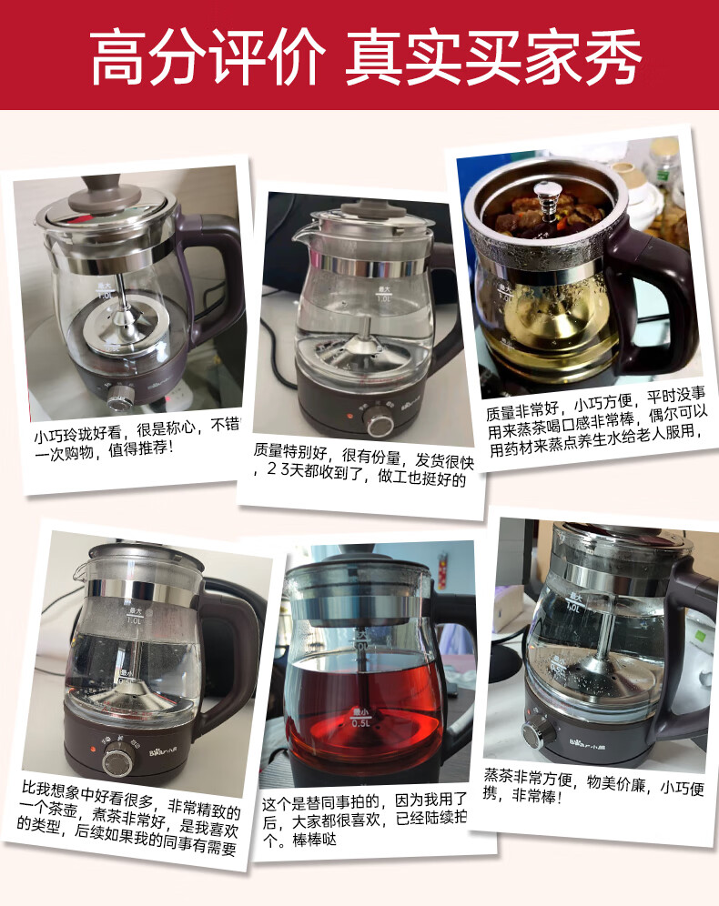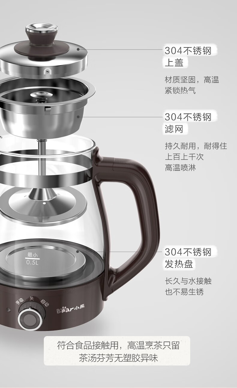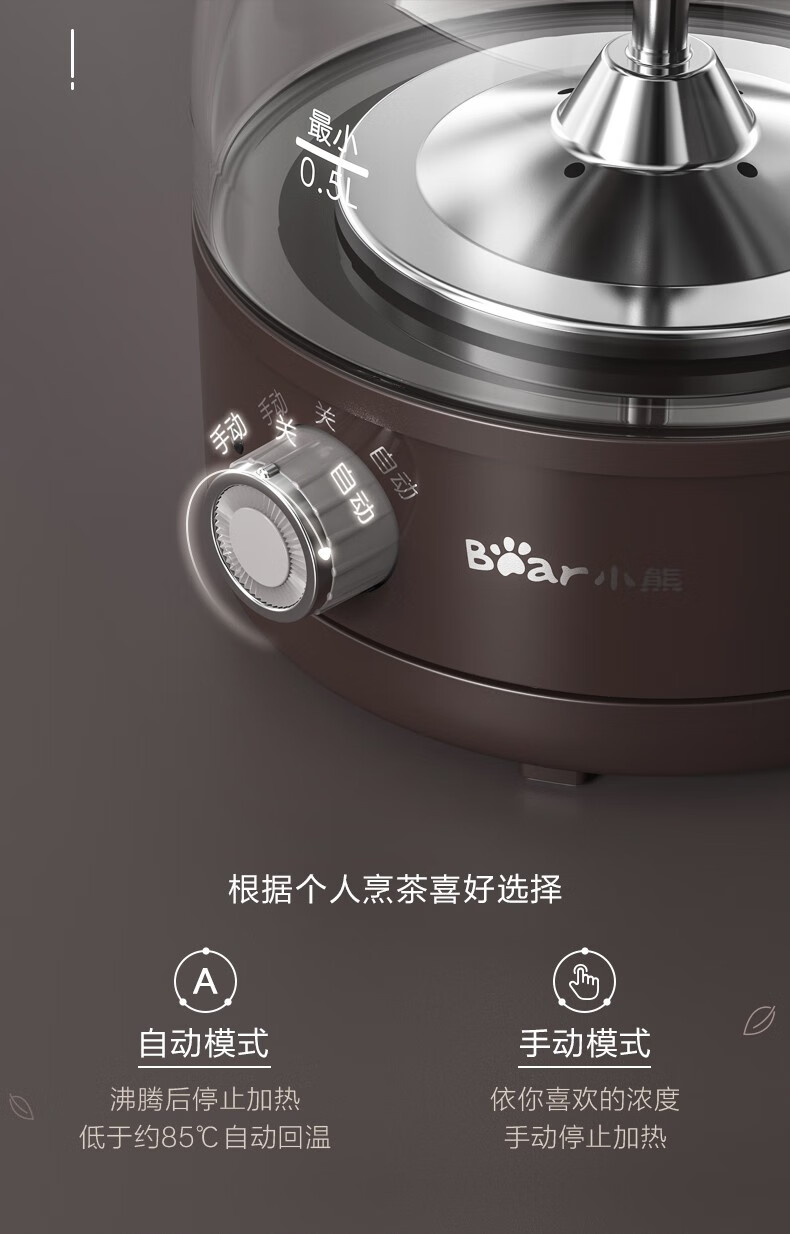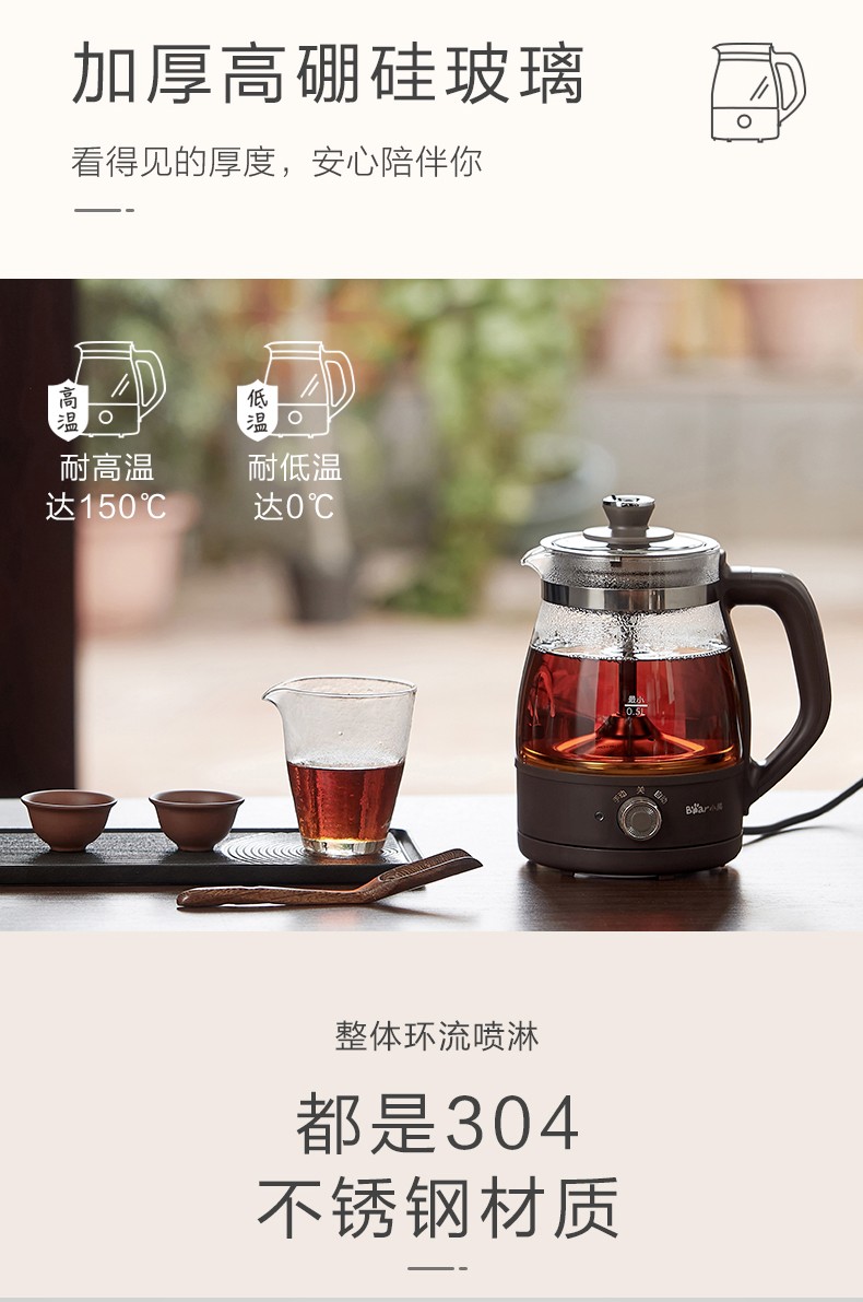 Bear Tea Maker Healthy Kettle Steam Spray Type Glass Thickened Black Tea Make Tea Kettle Small Mini Office Tea Steamer Fully Automatic Tea Stove Electric Kettle ZCQ-A10X1 Spray Type Tea Maker 1L