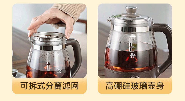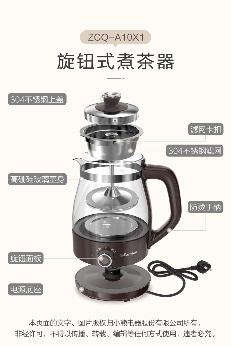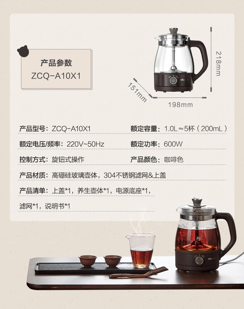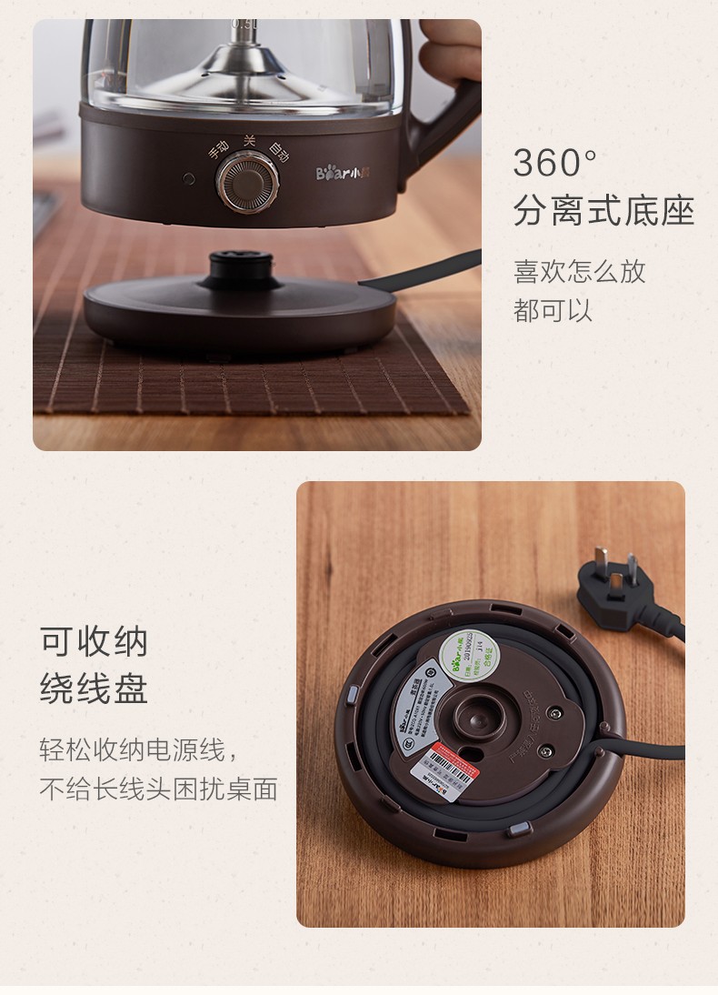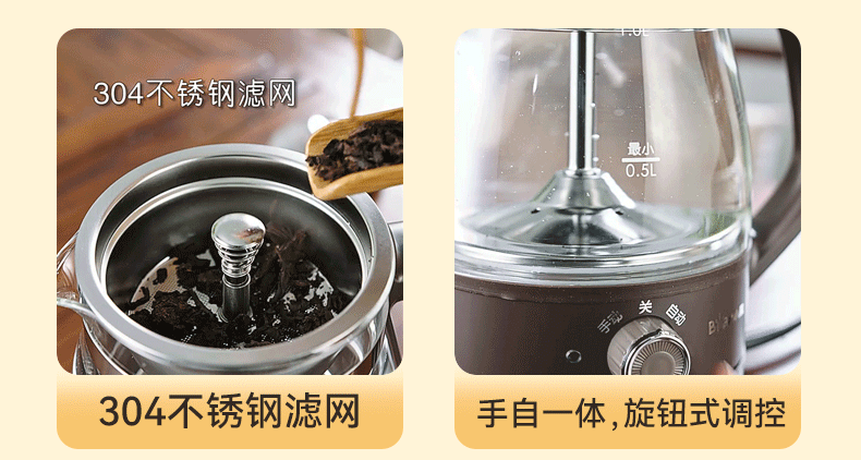 Bear Tea Maker Healthy Kettle Steam Spray Type Glass Thickened Black Tea Make Tea Kettle Small Mini Office Tea Steamer Fully Automatic Tea Stove Electric Kettle ZCQ-A10X1 Spray Type Tea Maker 1L