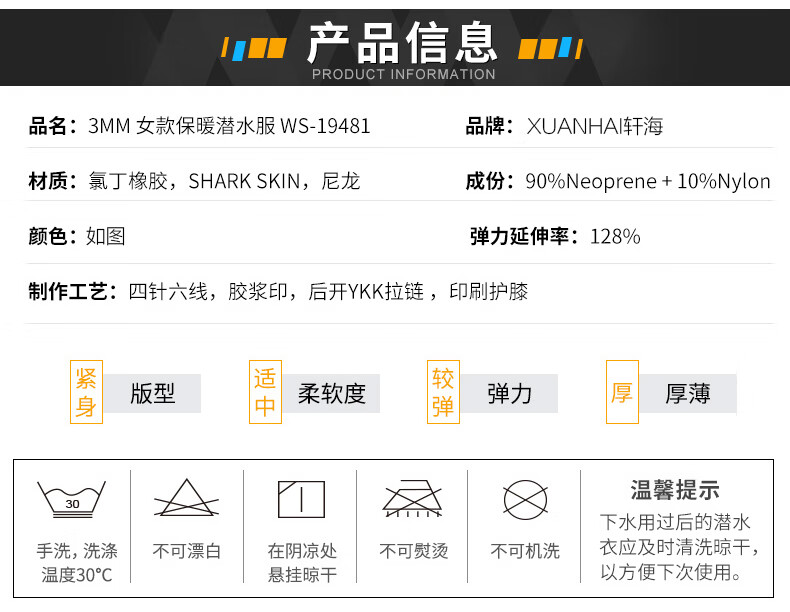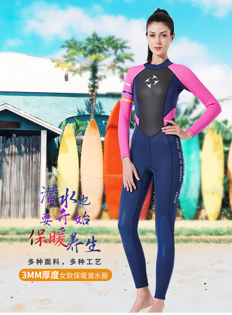 Xuanhai 3mm thickened diving suit women's one-piece swimsuit long-sleeved autumn and winter swimming warm and cold-proof clothing snorkeling suit jellyfish suit 9457-2 black thick 3mm L