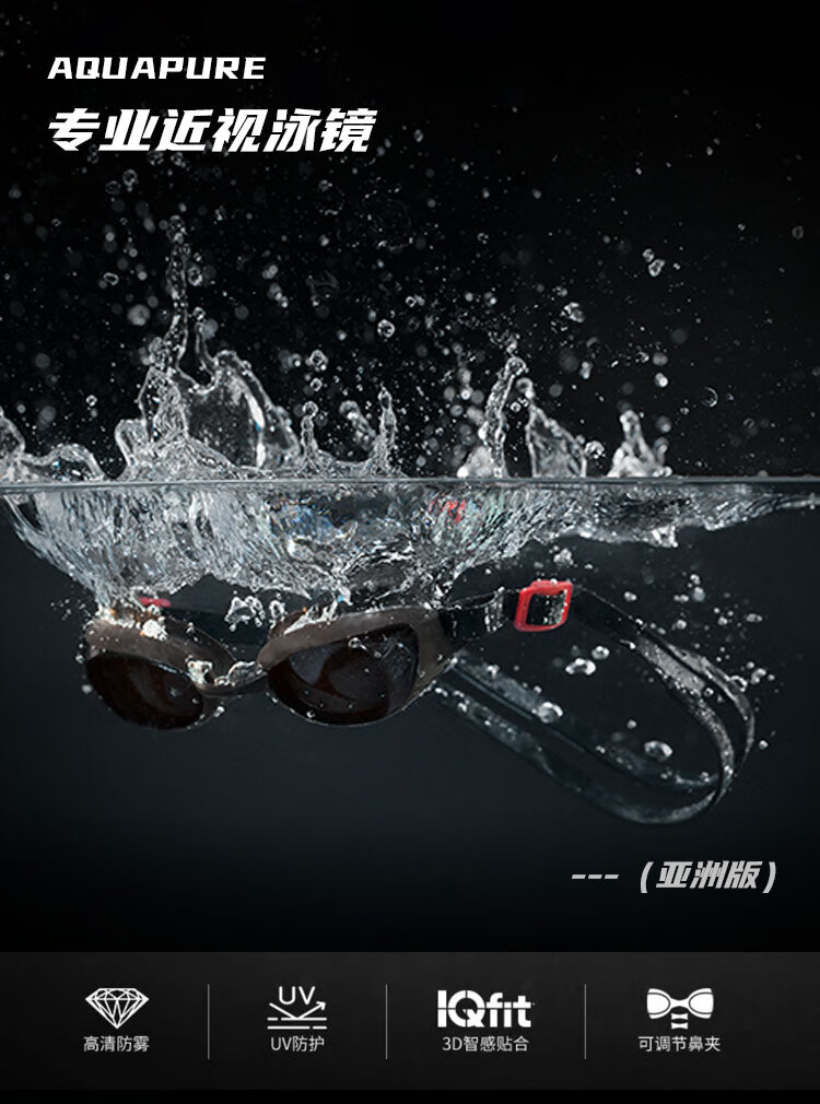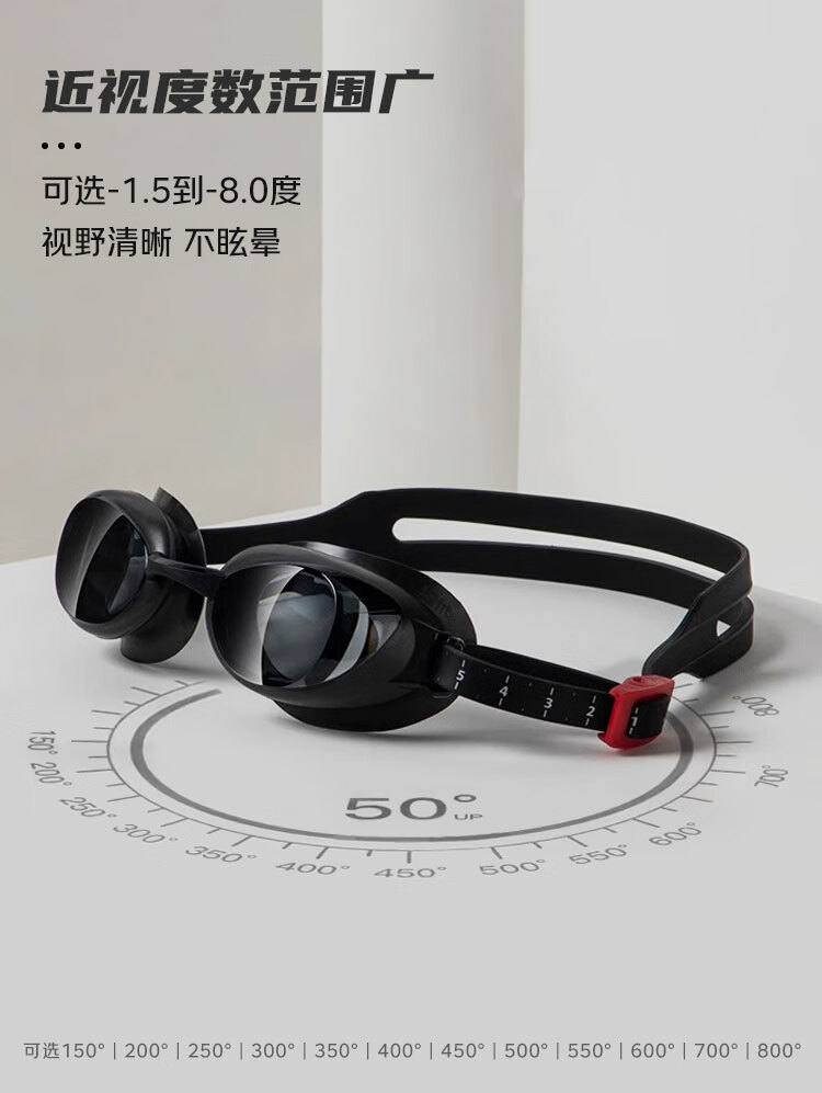 Speedo myopia swimming goggles professional 3D intelligent fit swimming goggles high definition anti-fog waterproof comfortable eye-proof for men and women with degree gray/smoke ash wide angle large field of view, texture fit 500 degrees