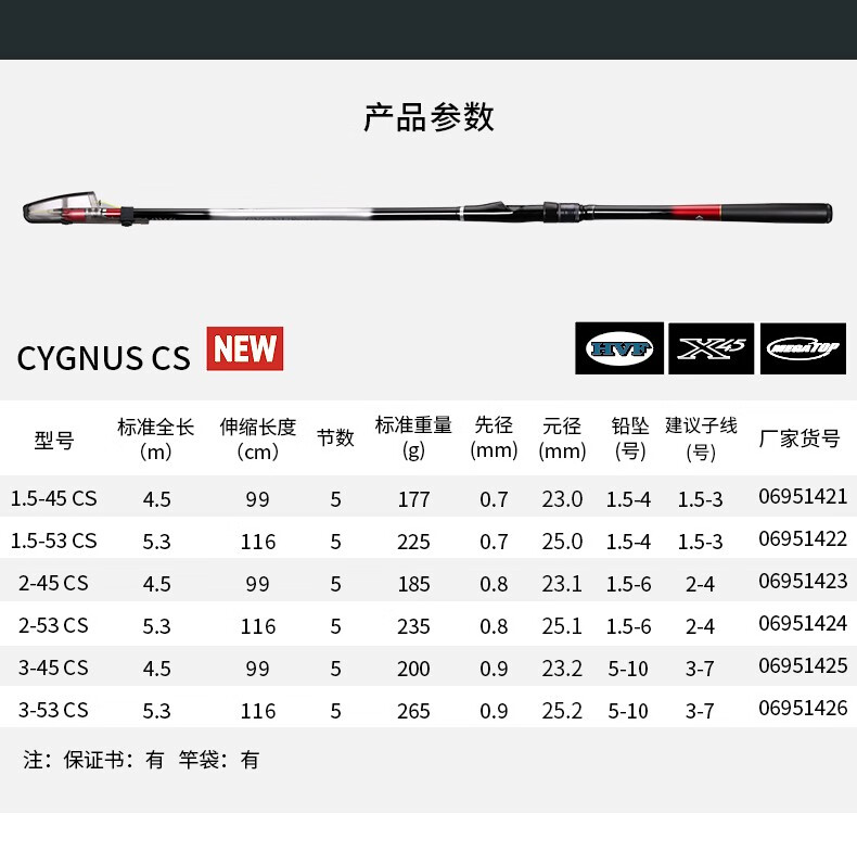 DAIWA CYGNUS CS imported inclined guide ring fishing rod lightweight rocky rod carbon hand and sea dual-purpose rod sea fishing rod fishing rod No. 2-45 (4.5 meters)