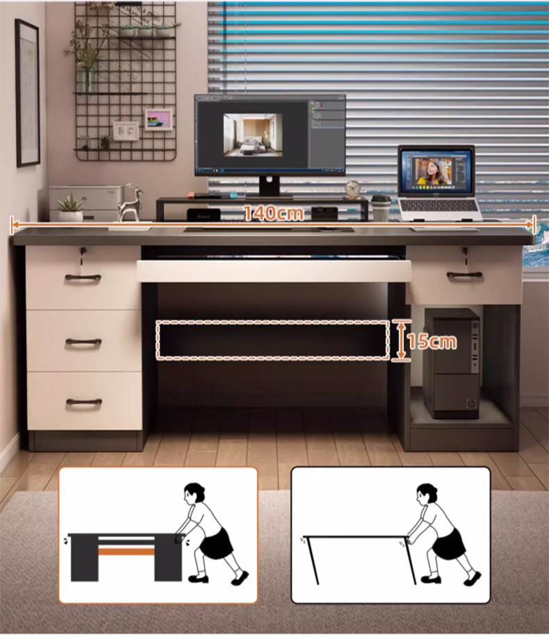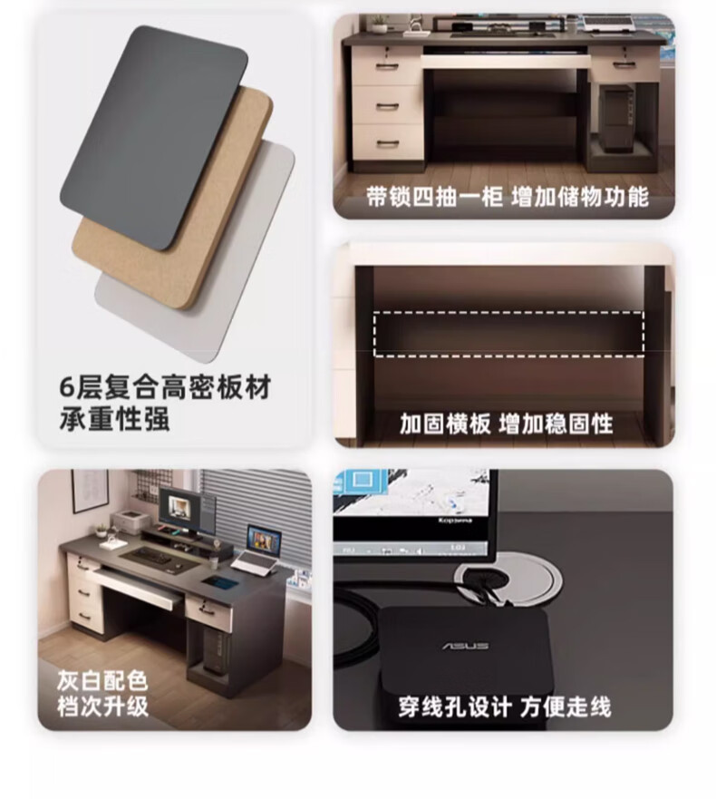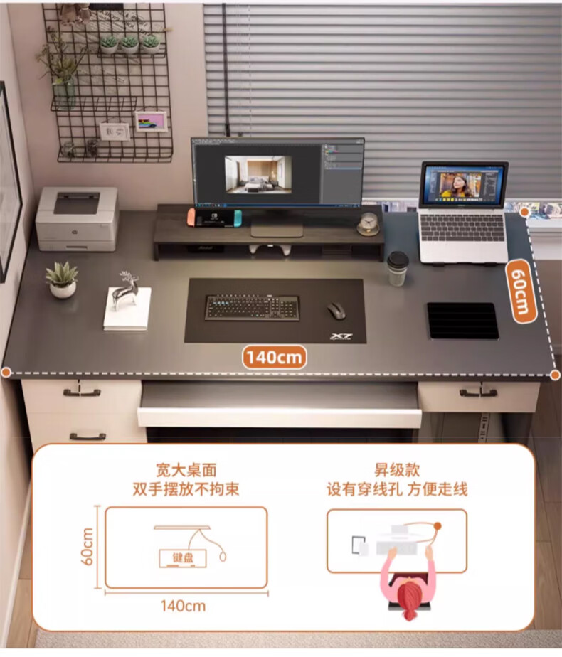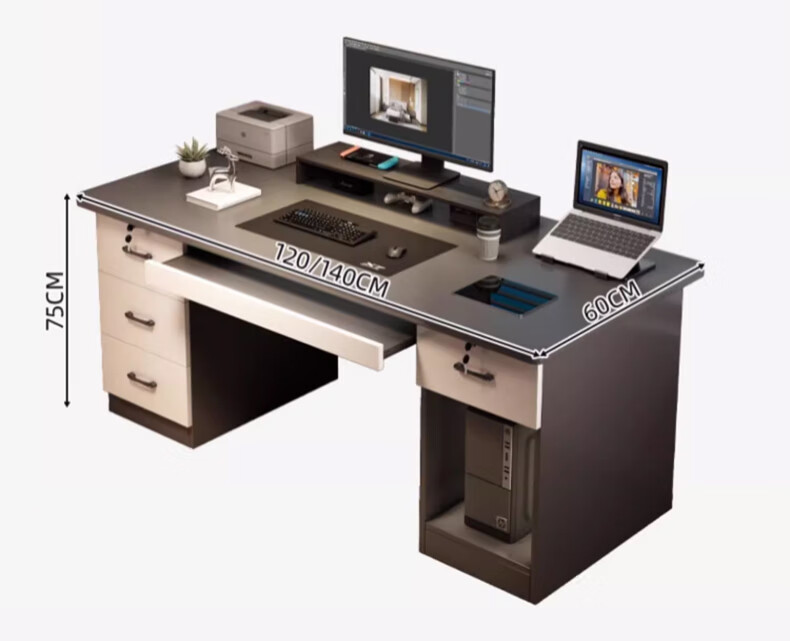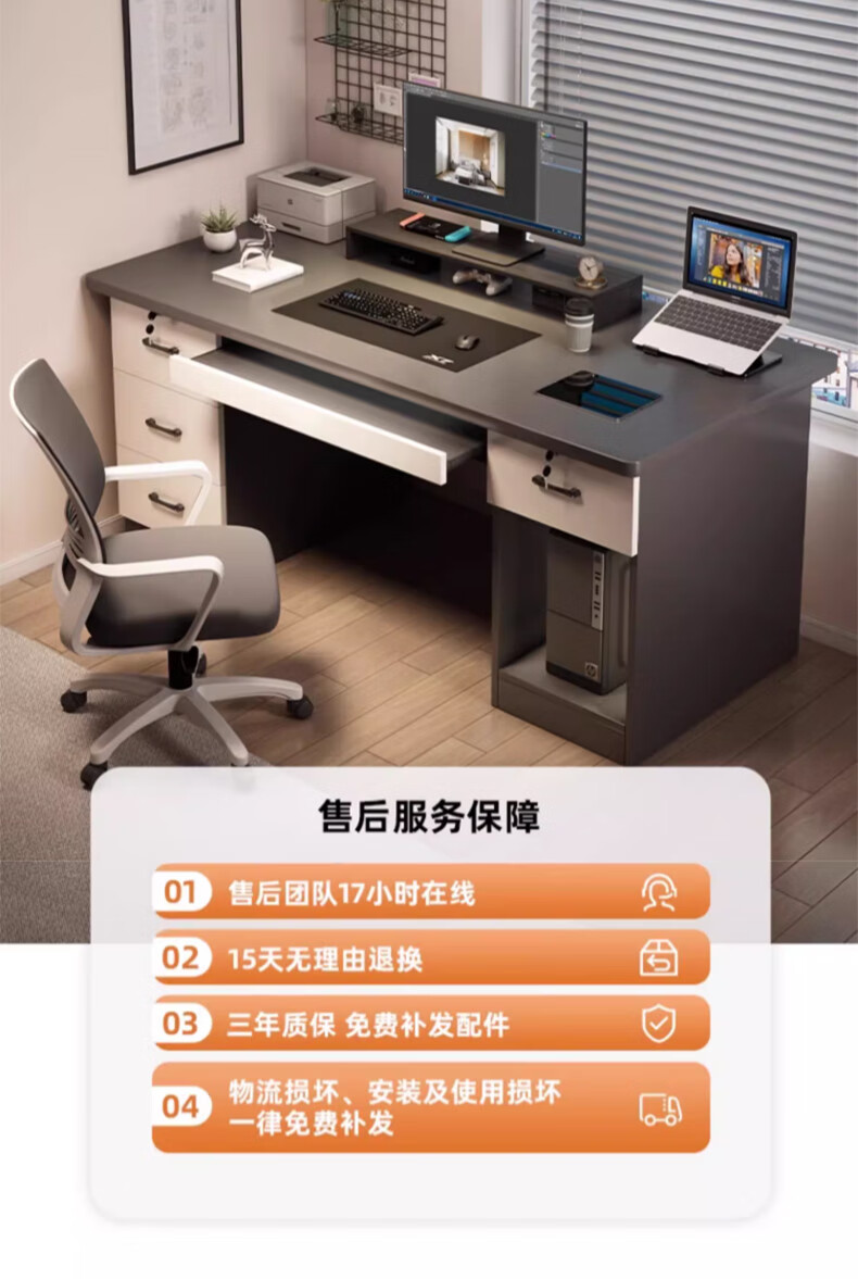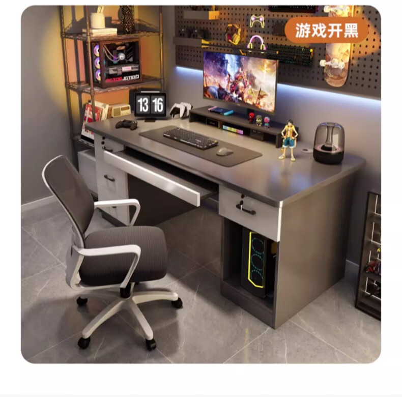 Humanities Adult Computer Desk Desktop Home Office Computer Desk and Chair Set Learning Desk with Lockable Drawer Small Apartment Writing Desk Single Drawer with Main Unit Elegant Gray 100cm