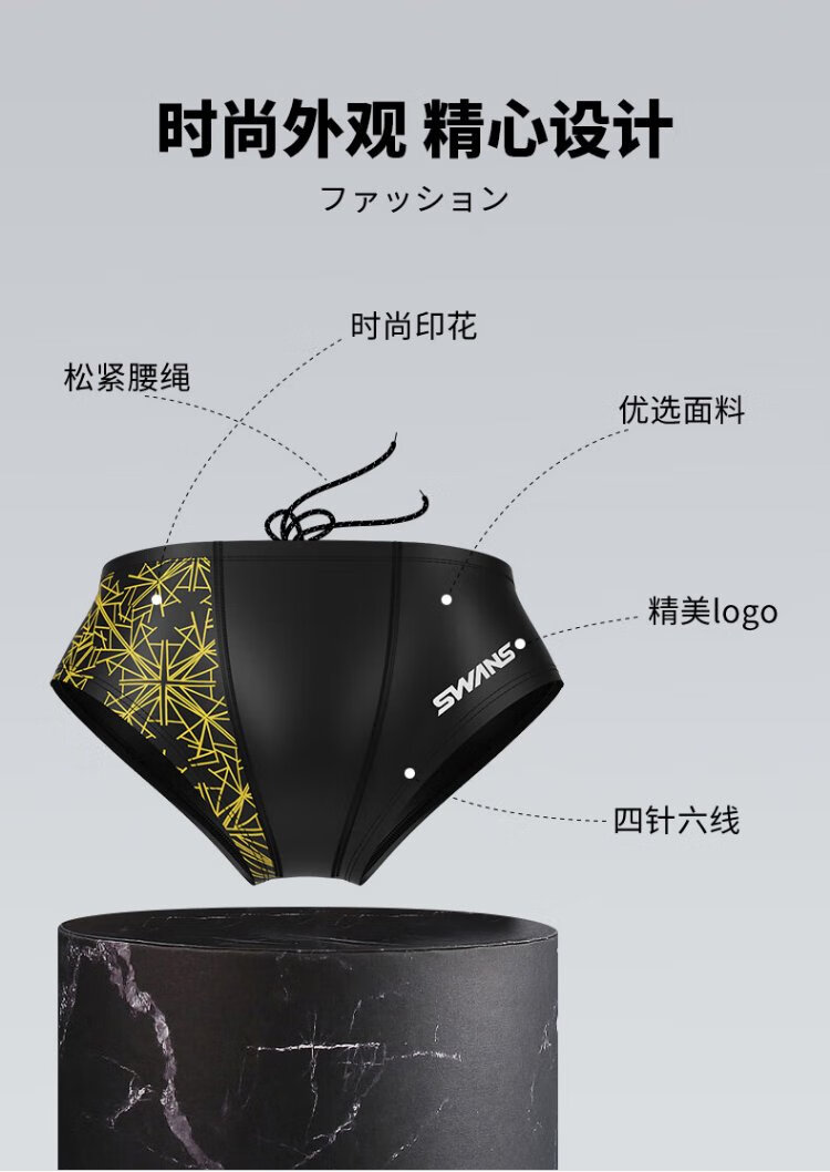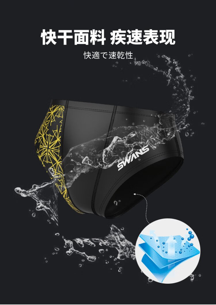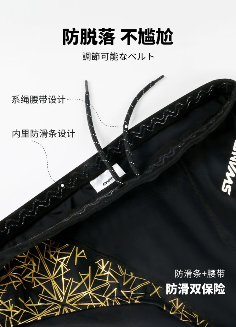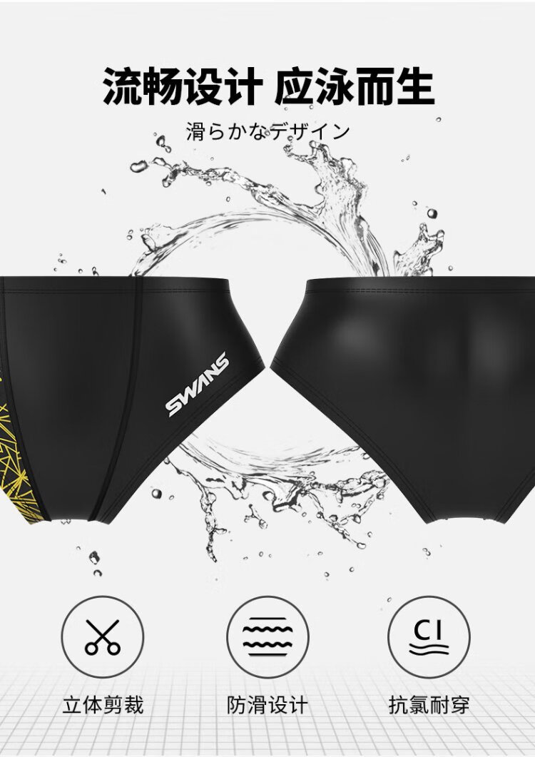 SWANS swimming trunks men's professional swimming shorts men's triangle professional training large size chlorine-resistant men's swimming trunks SY-A005 black 3XL size (83-90KG)
